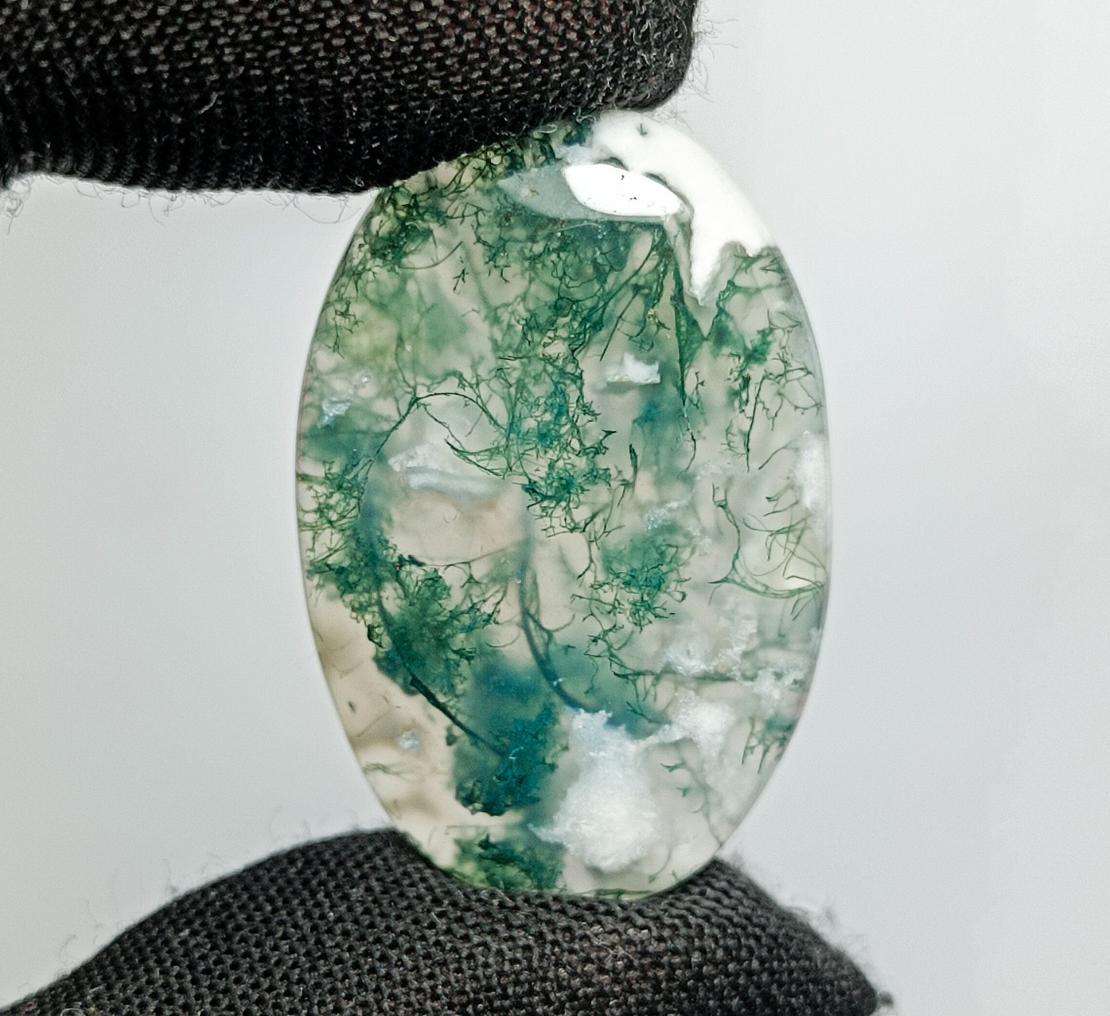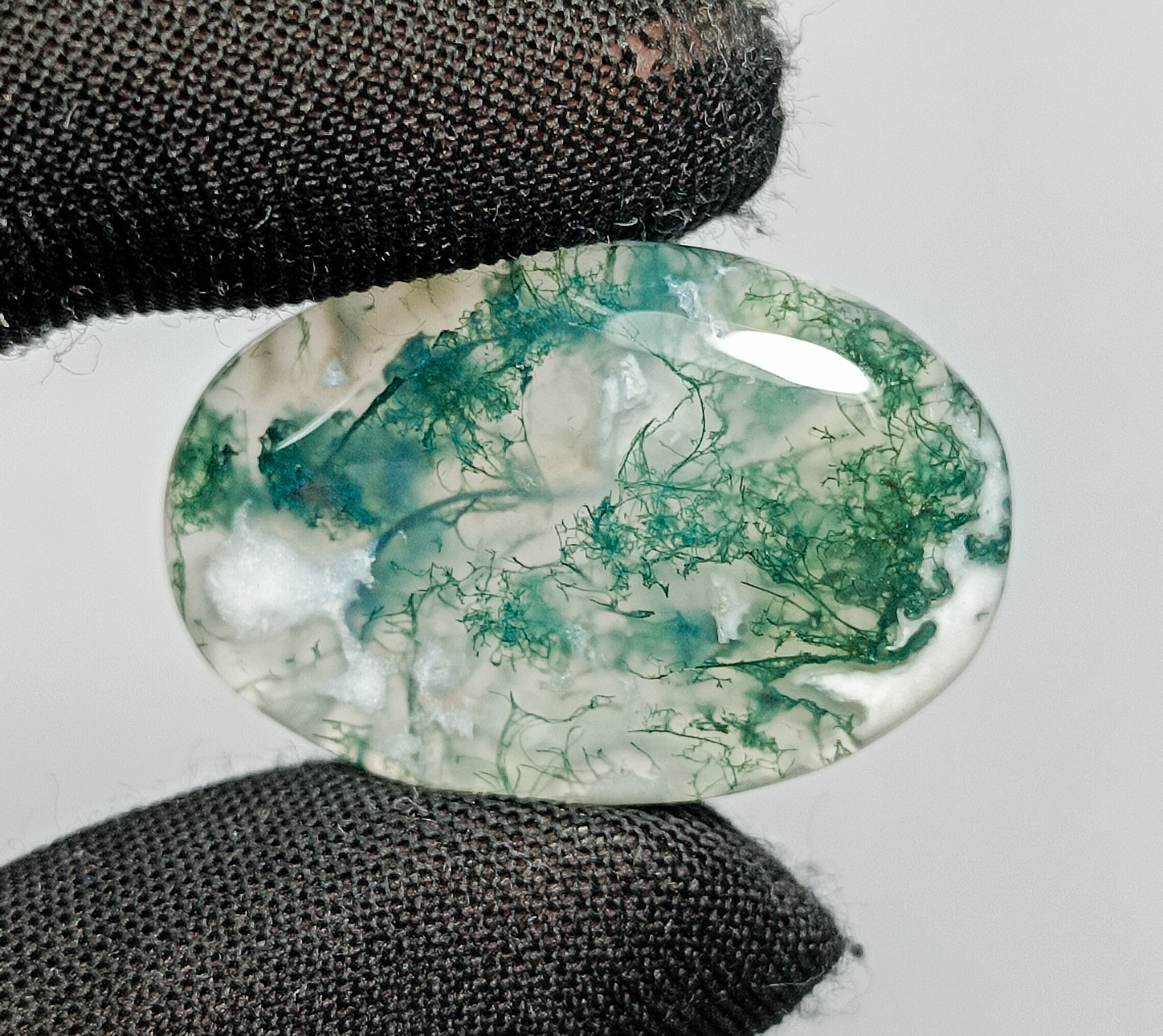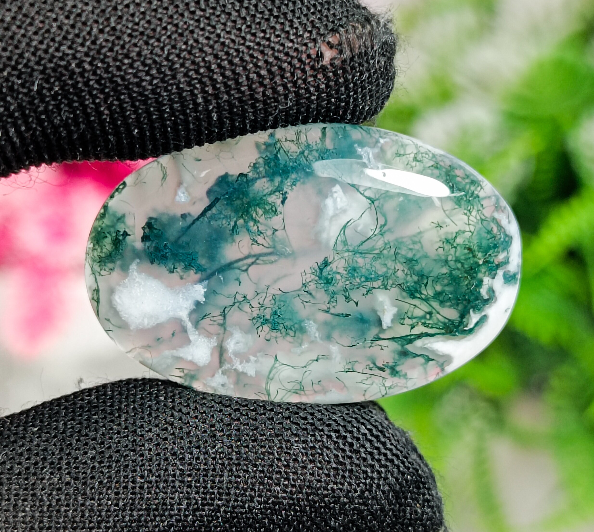 100% NATURAL GREEN AND WHITE MOOS AGATE CABOCHOAN