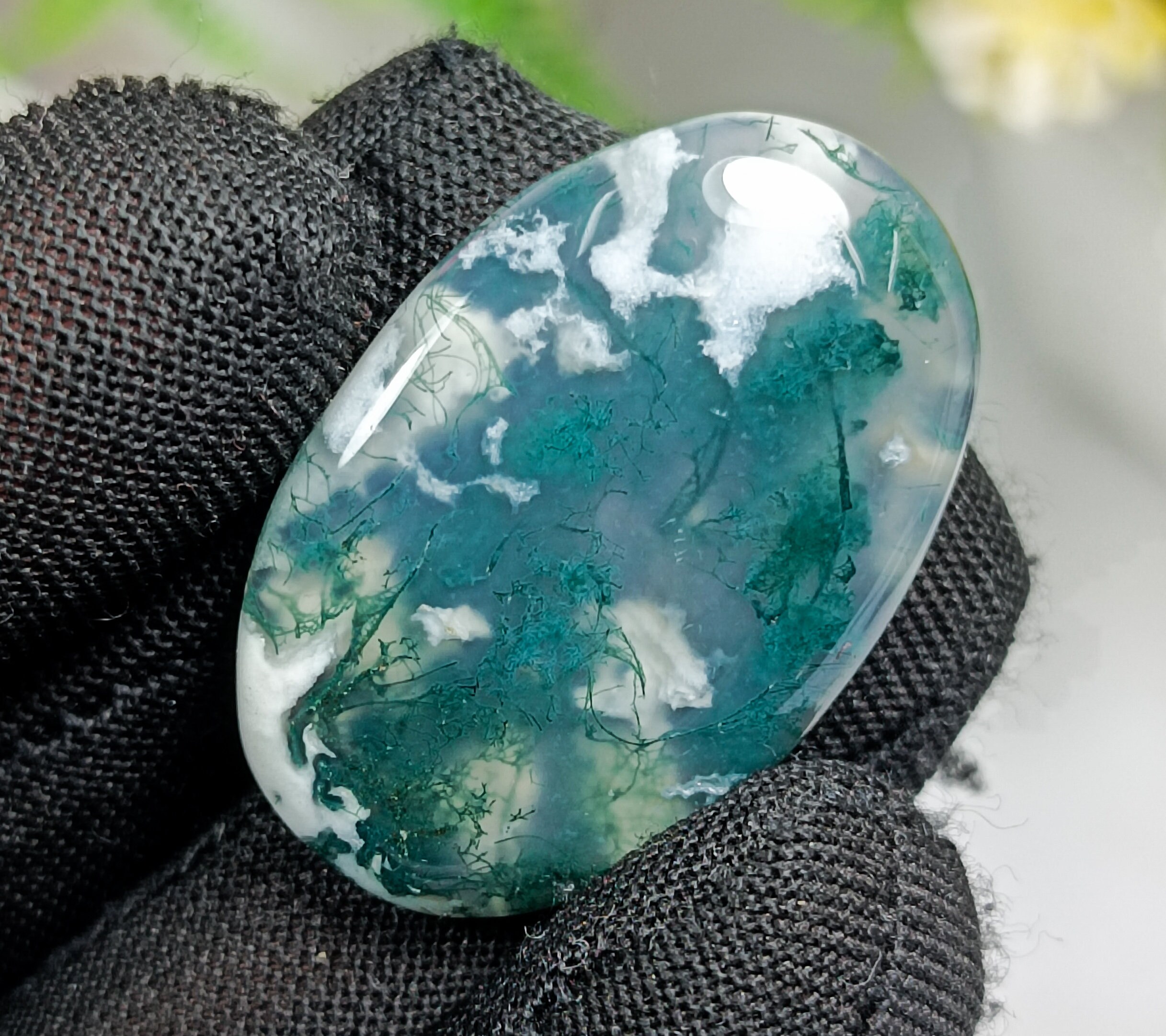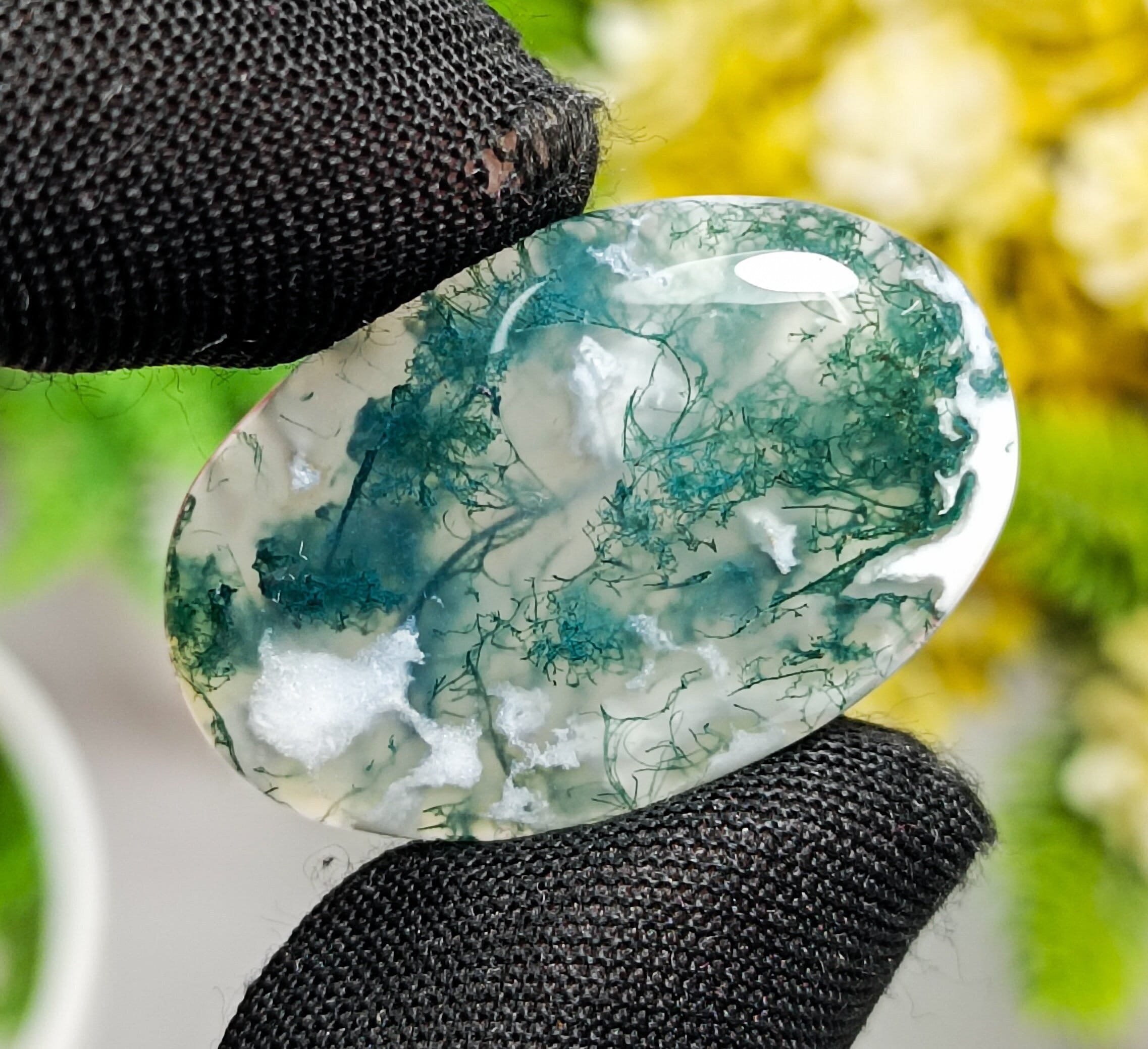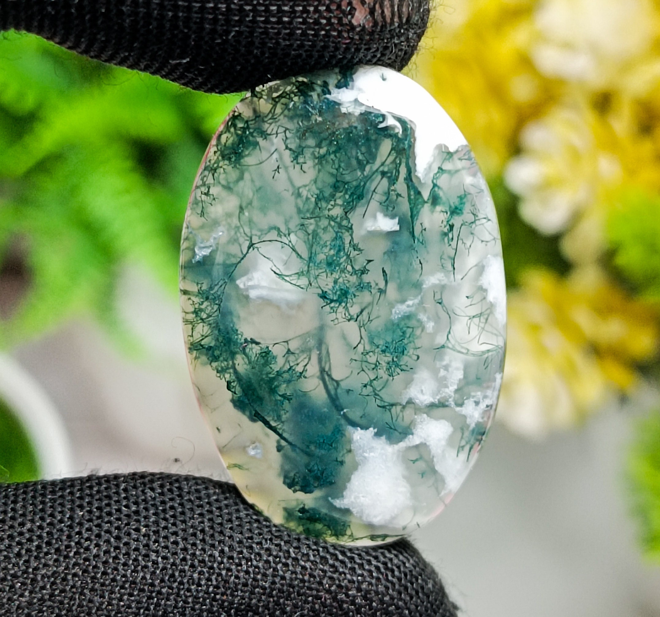 100% NATURAL GREEN AND WHITE MOOS AGATE CABOCHOAN