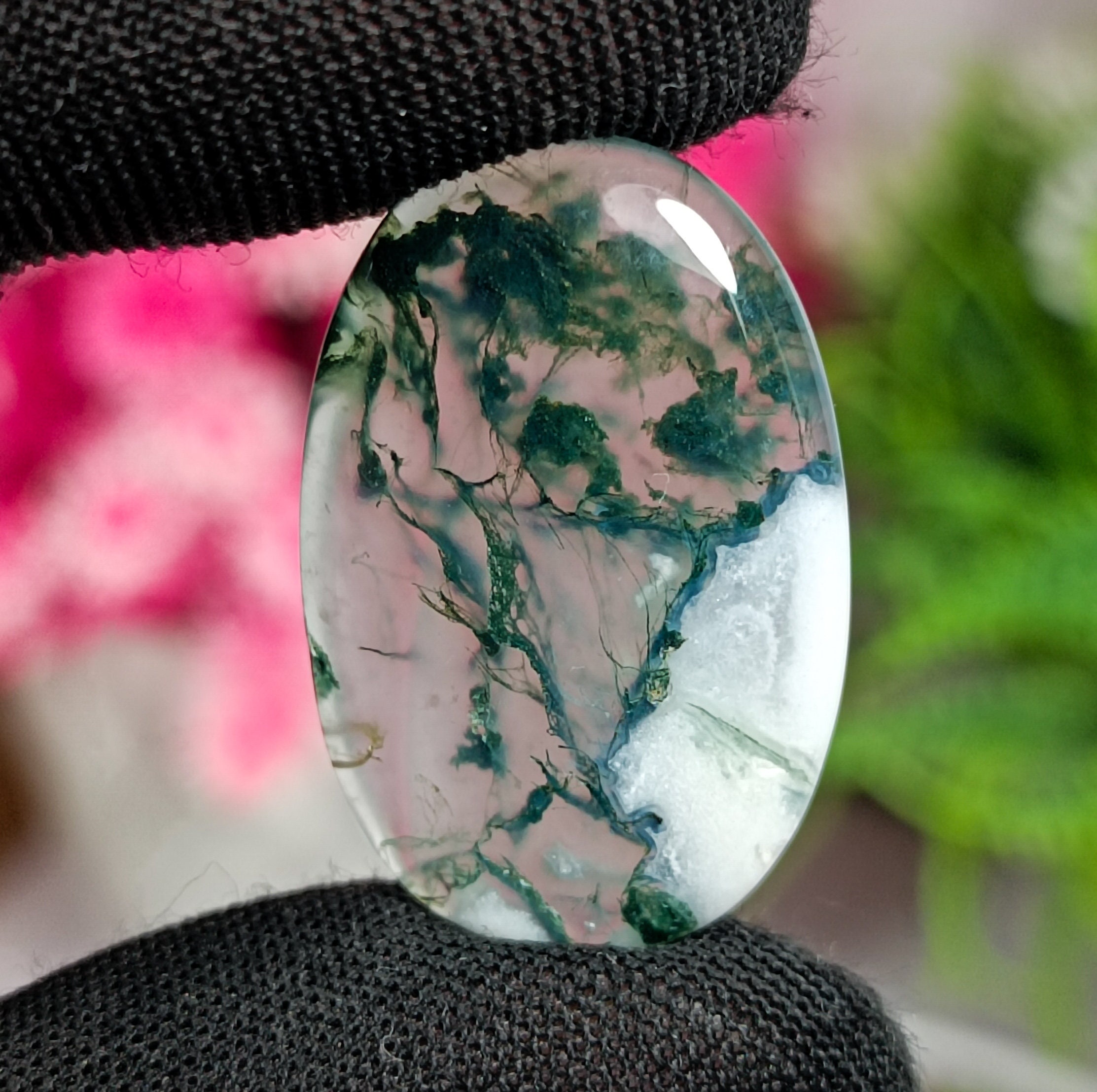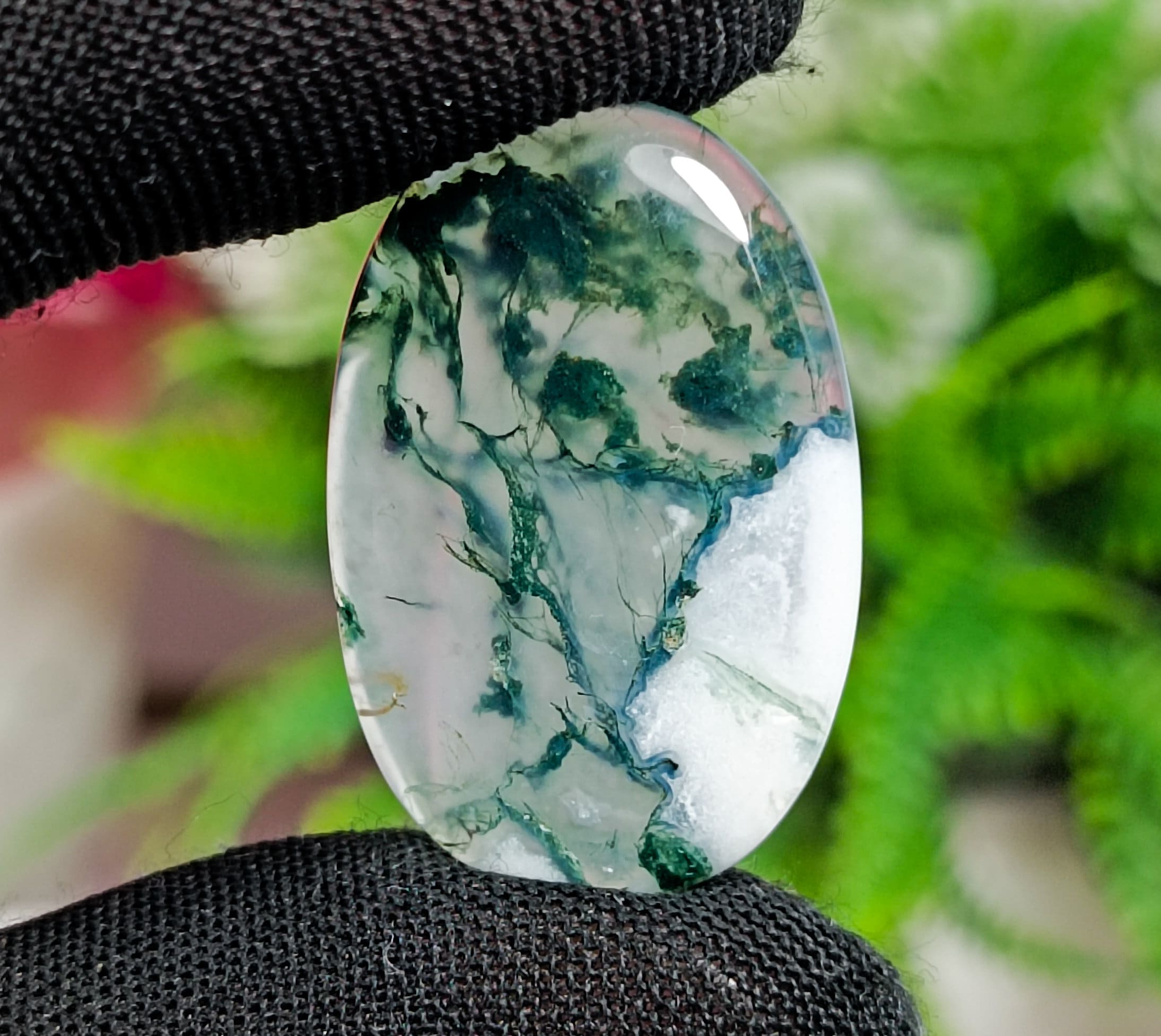 100% NATURAL GREEN AND WHITE MOOS AGATE CABOCHOAN