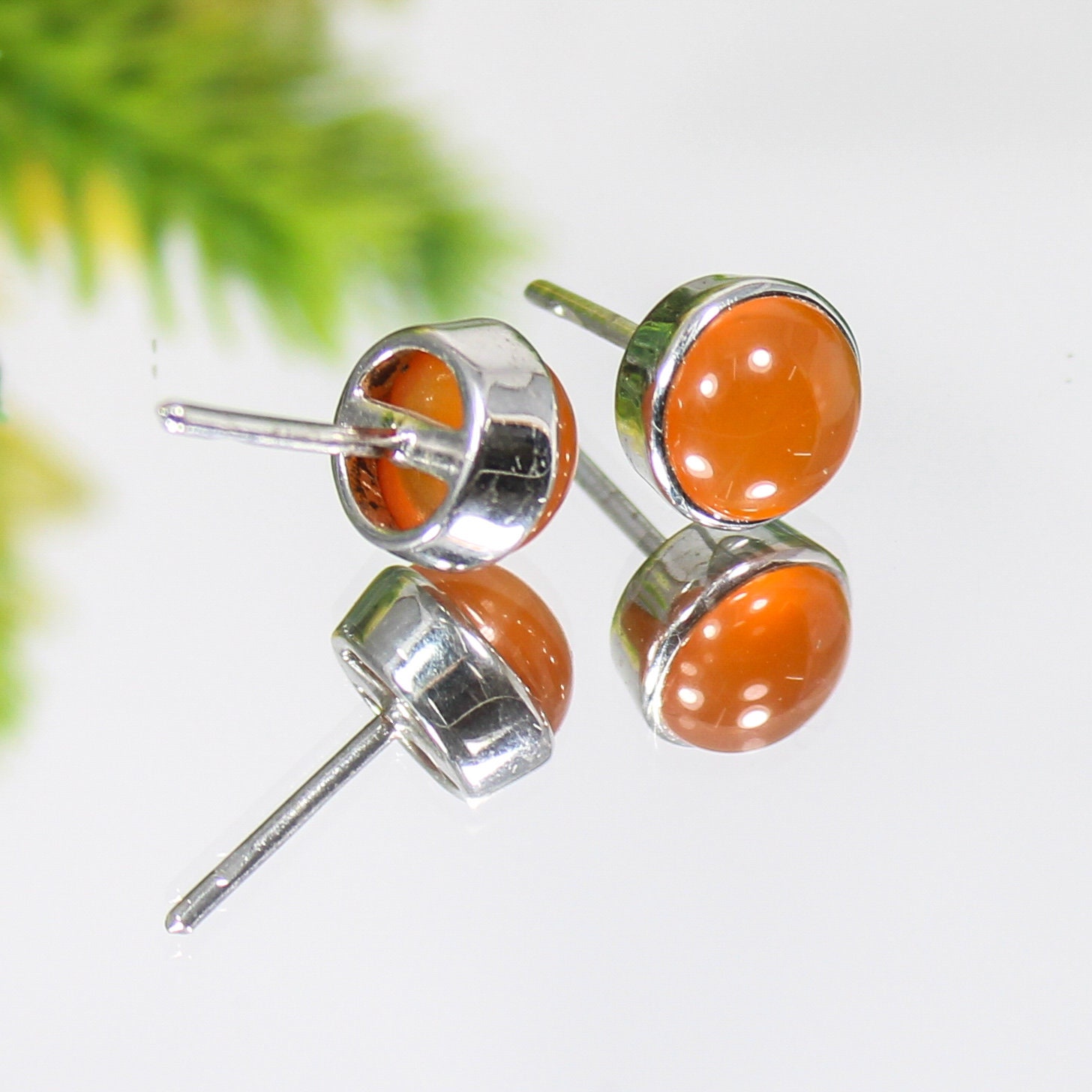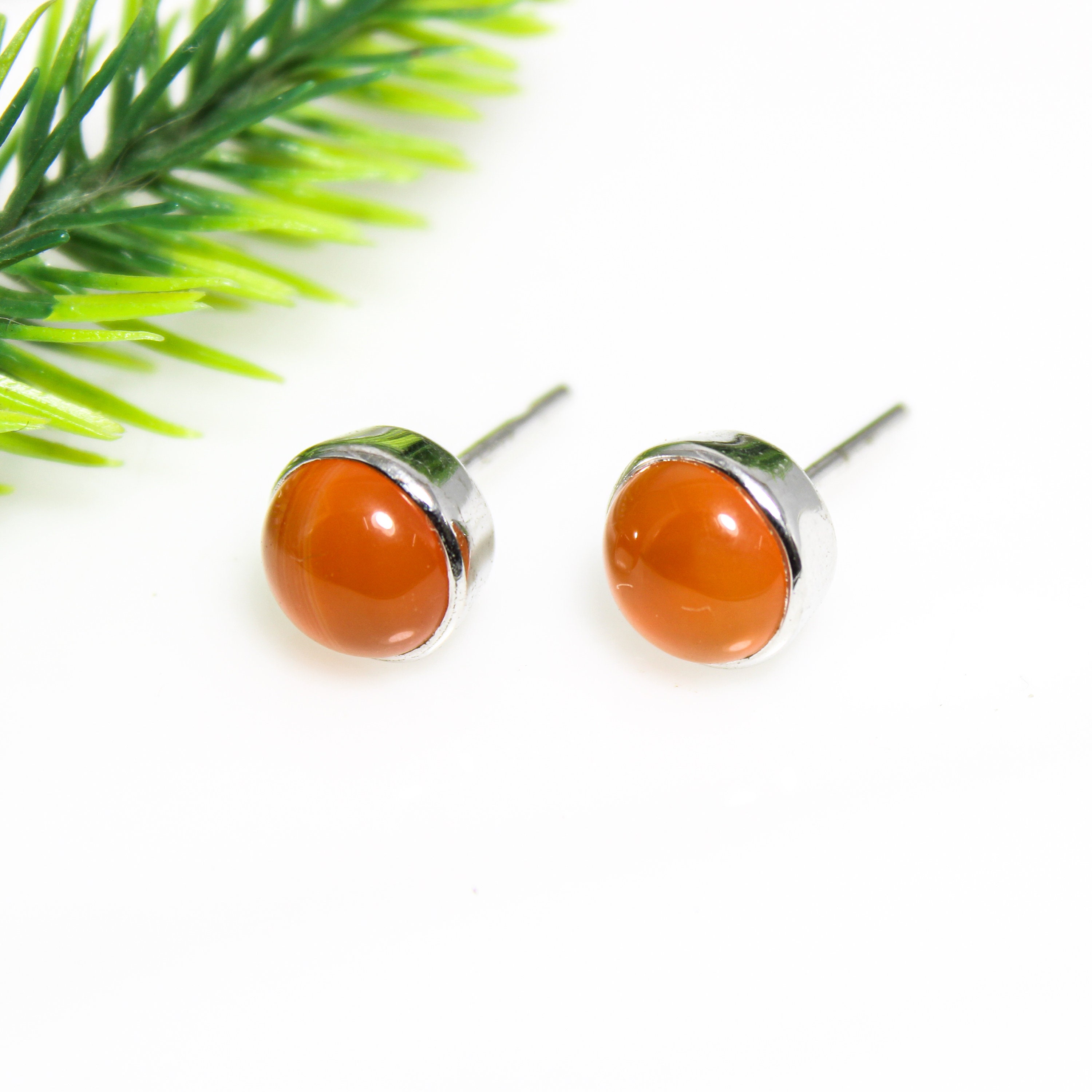 ORANGE CARNELIAN STUDS WITH STERLING SILVER