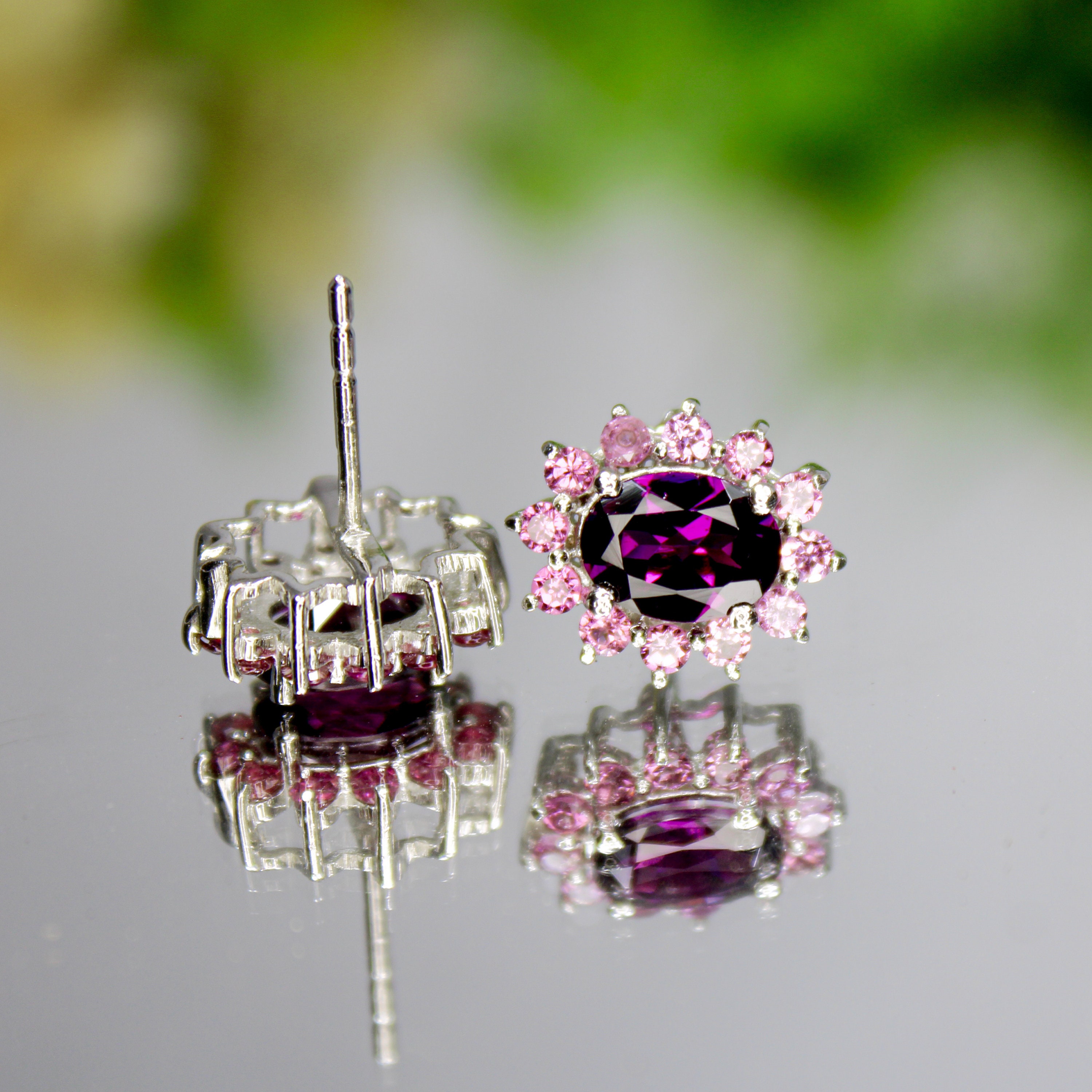 GEMSTONES ON STUDS - RHODOLITE GARNET