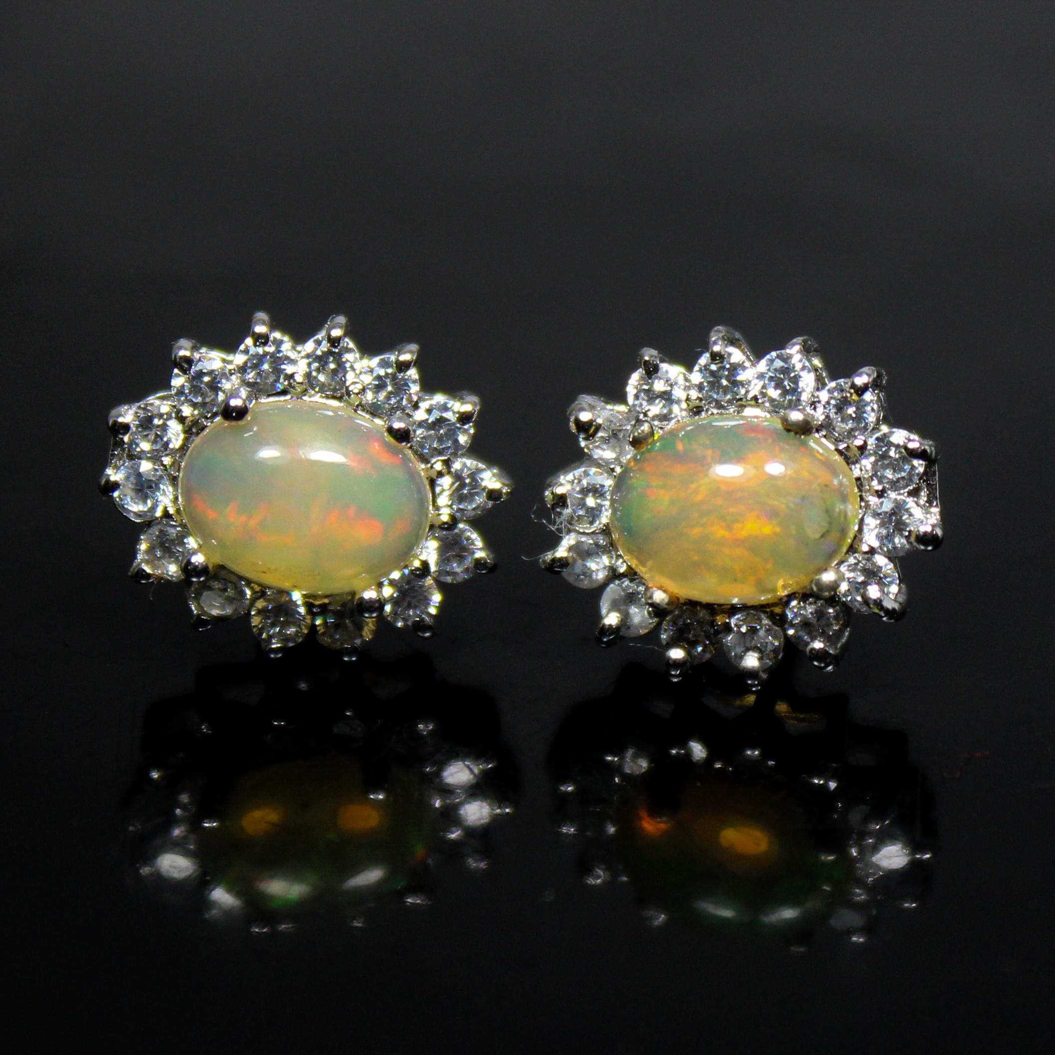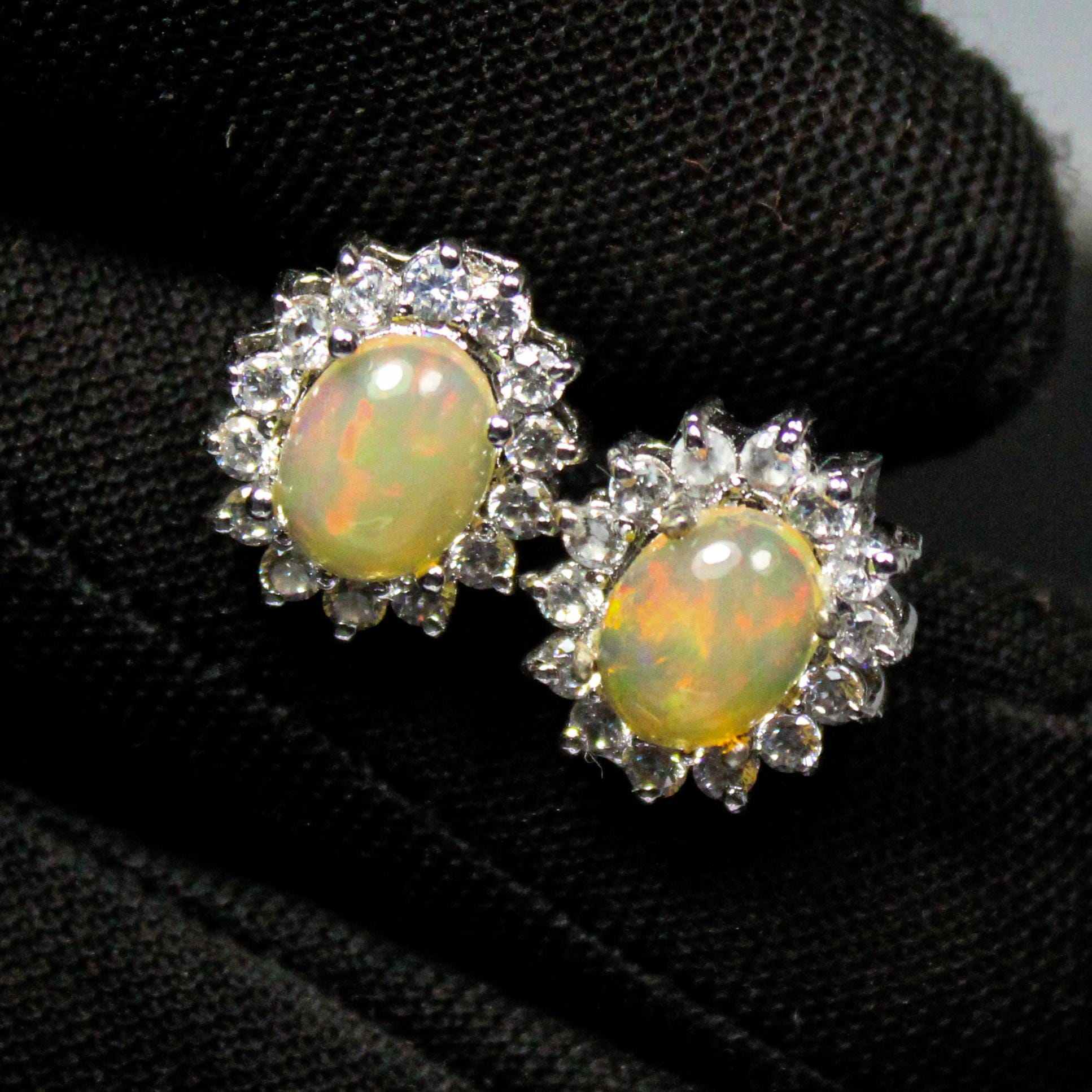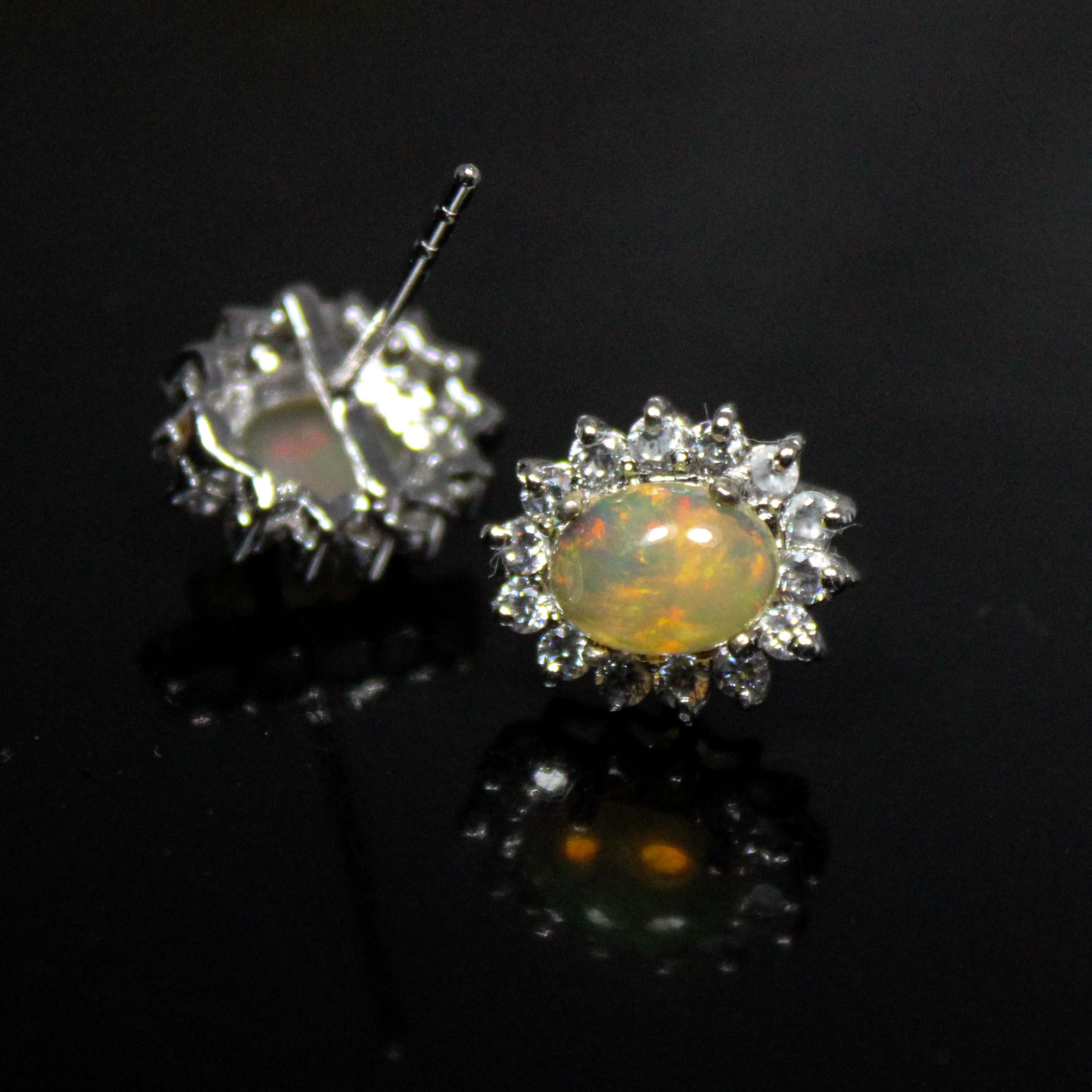 BEAUTIFUL WHITE ETHOPIAN OPAL STUDS WITH STERLING SILVER