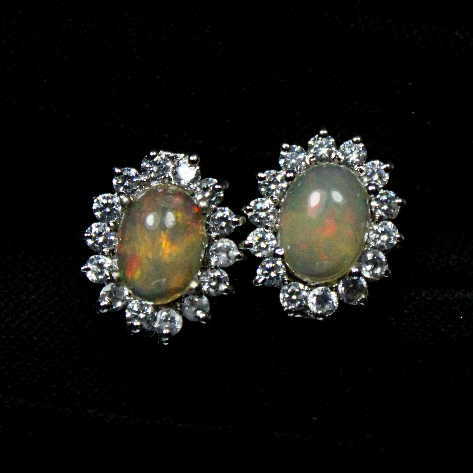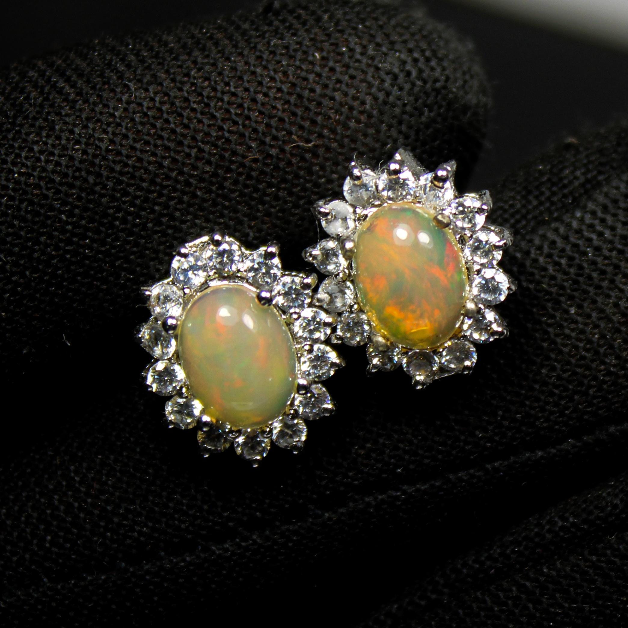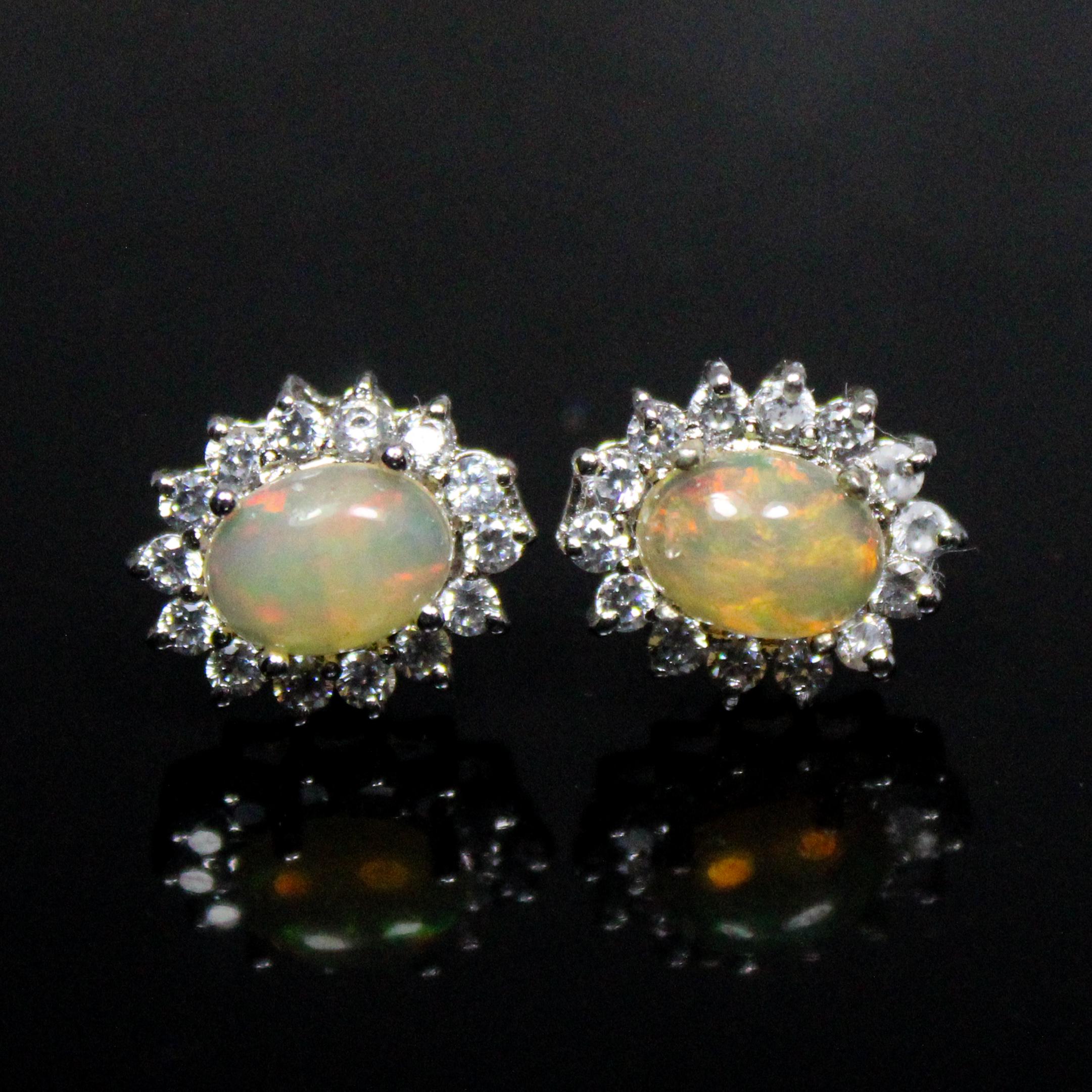 BEAUTIFUL WHITE ETHOPIAN OPAL STUDS WITH STERLING SILVER