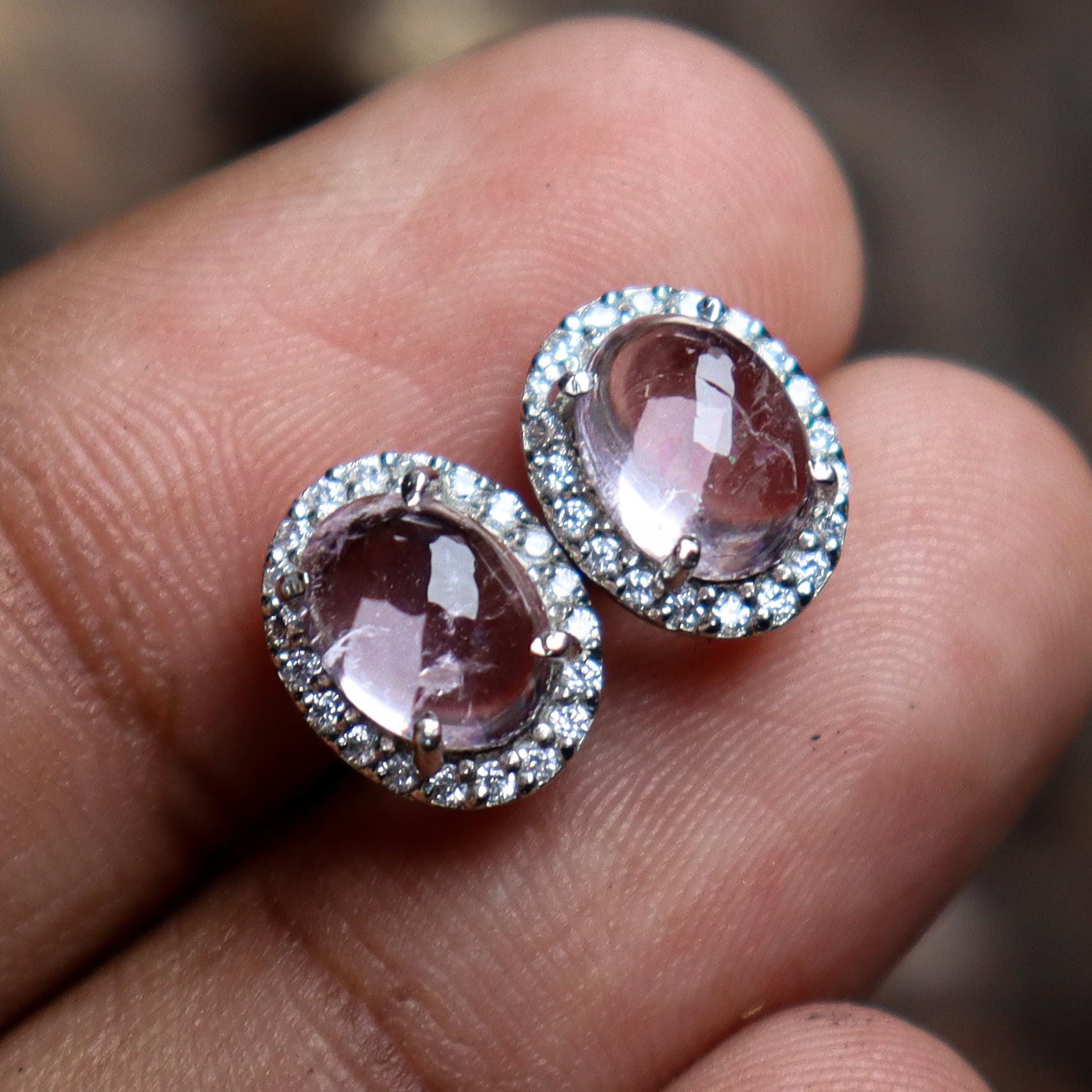 BEAUTIFUL NATURAL MORGONITE STUDS WITH STERLING SILVER
