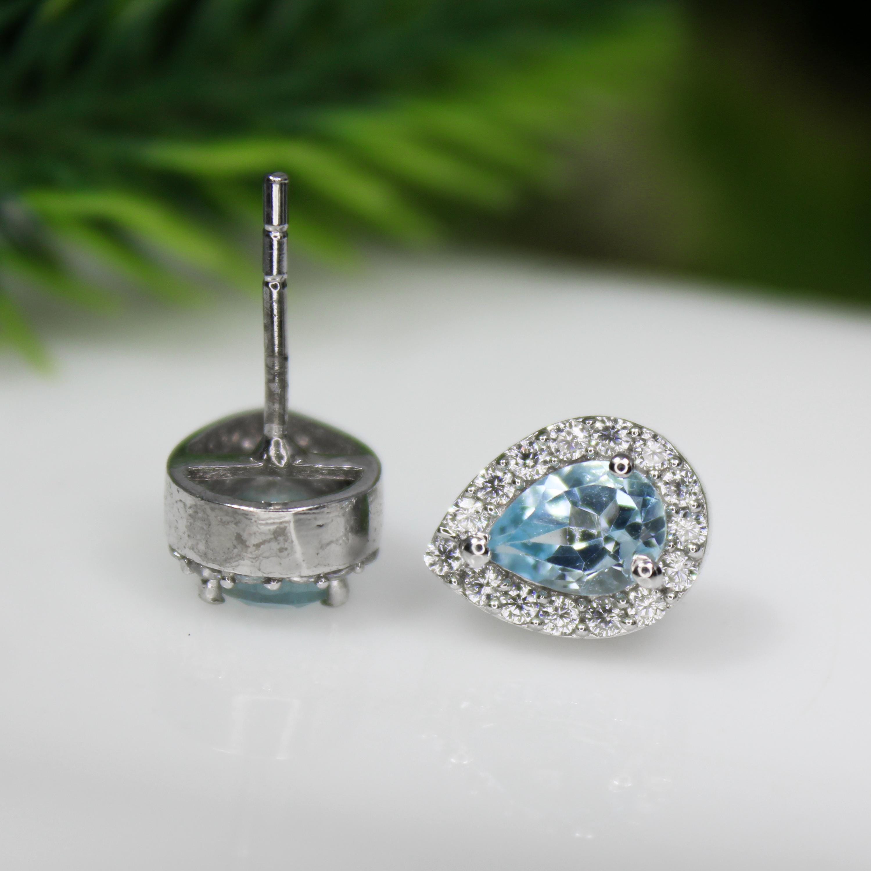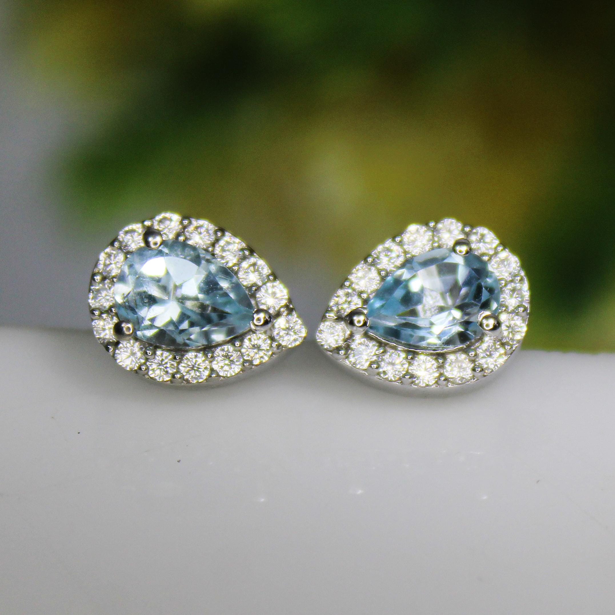BEAUTIFUL NATURAL BLUE AQUAMARINE STUDS WITH STERLING SILVER