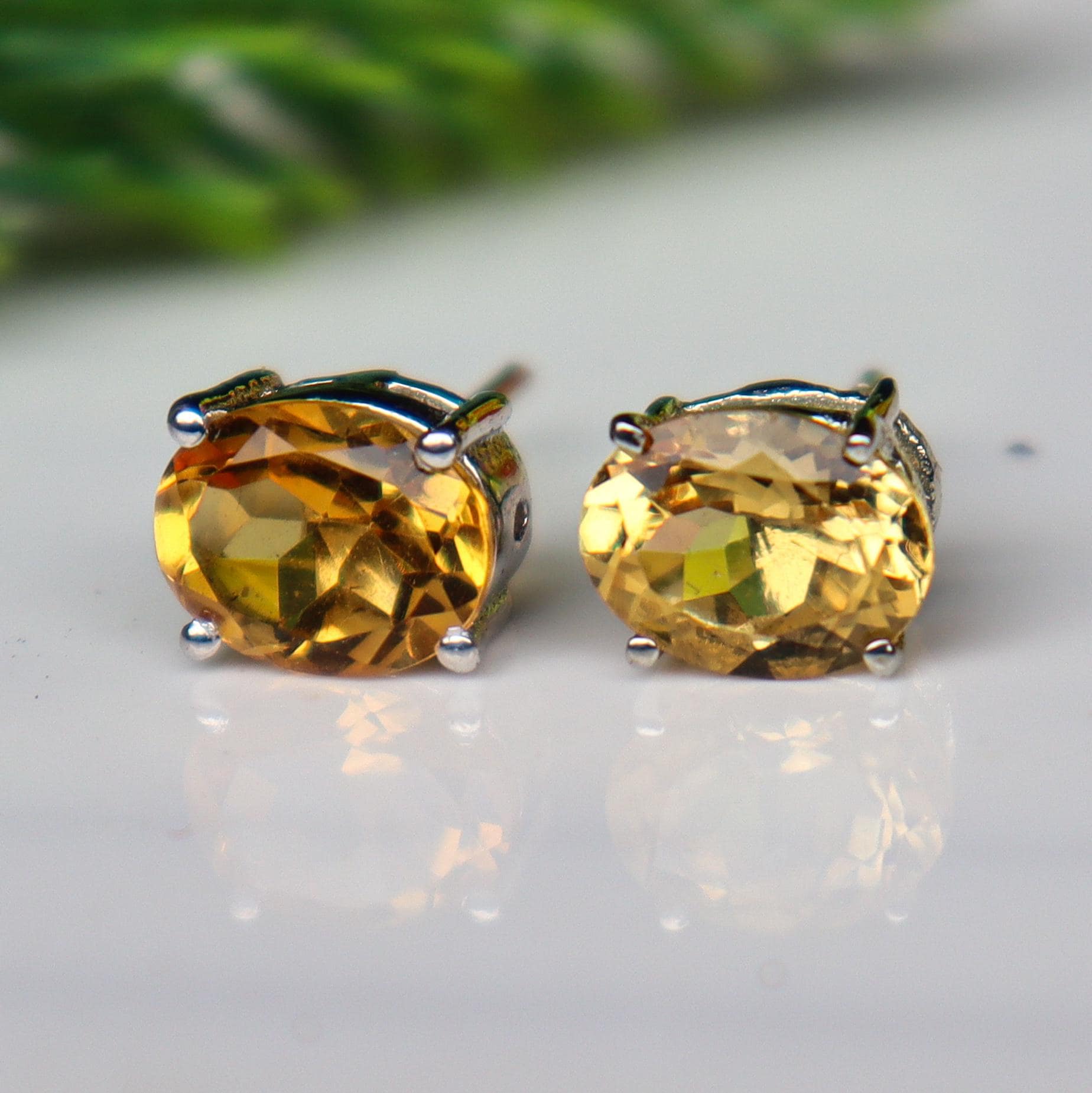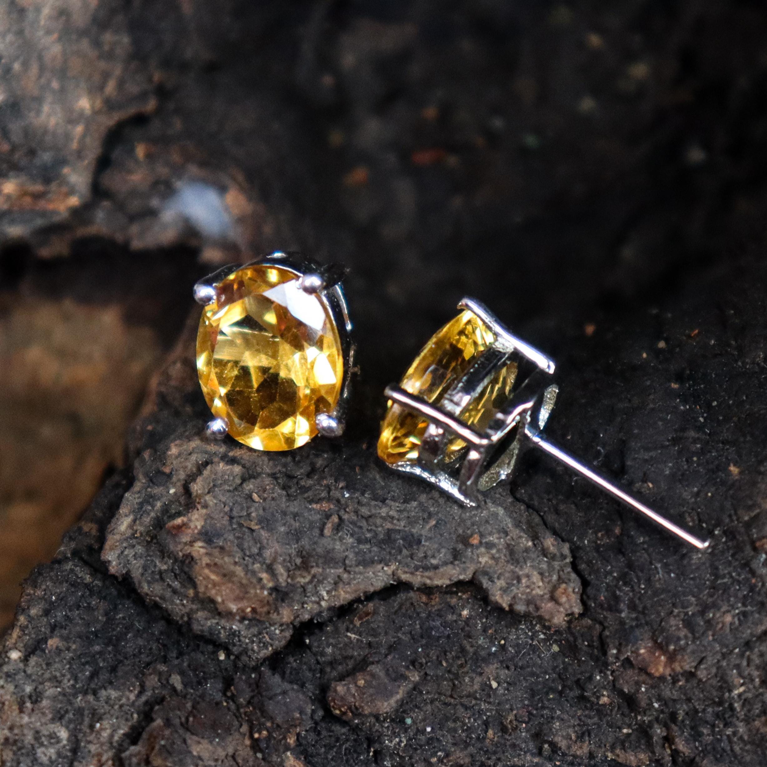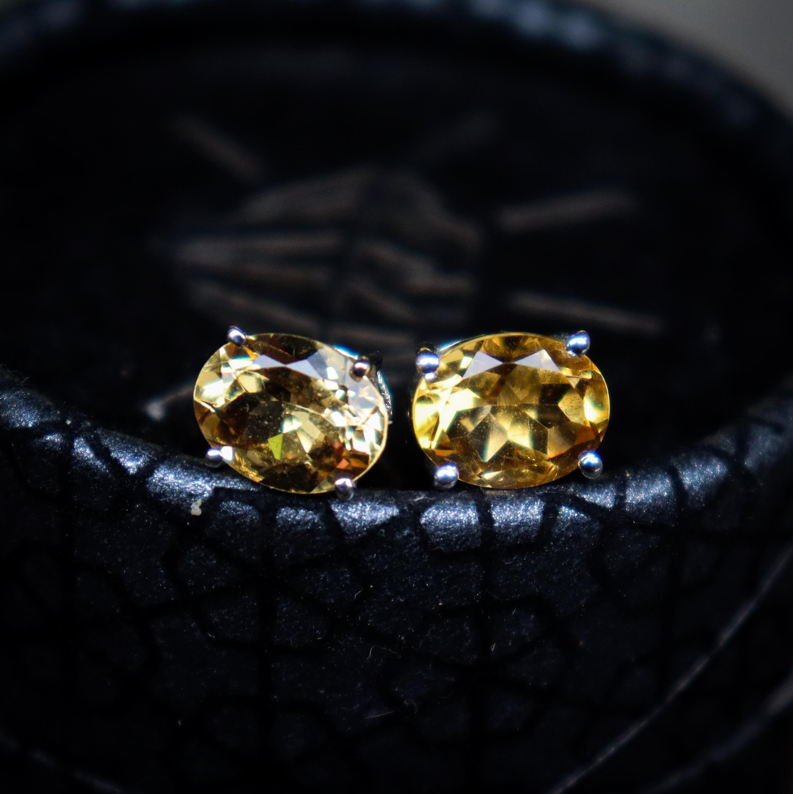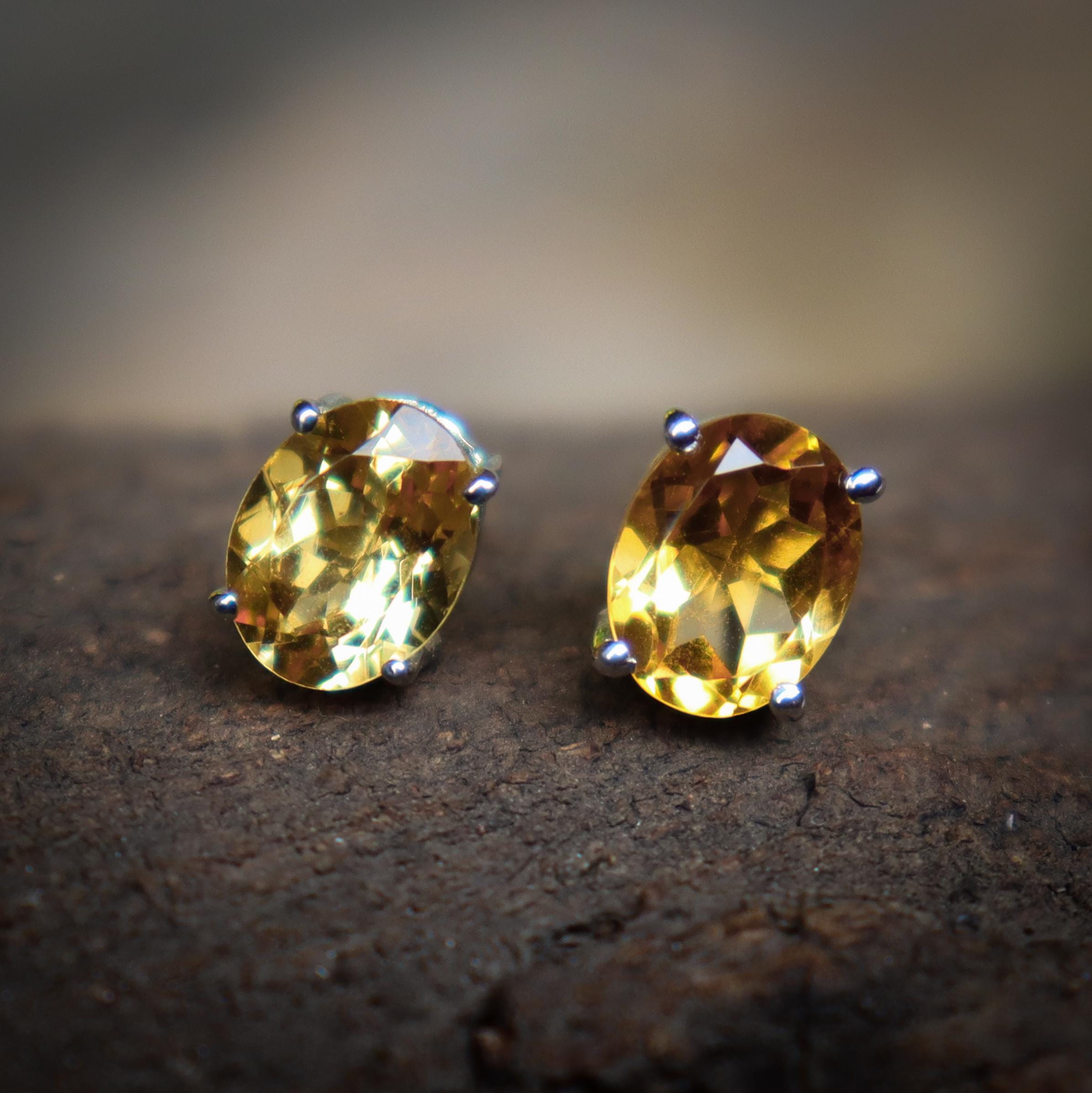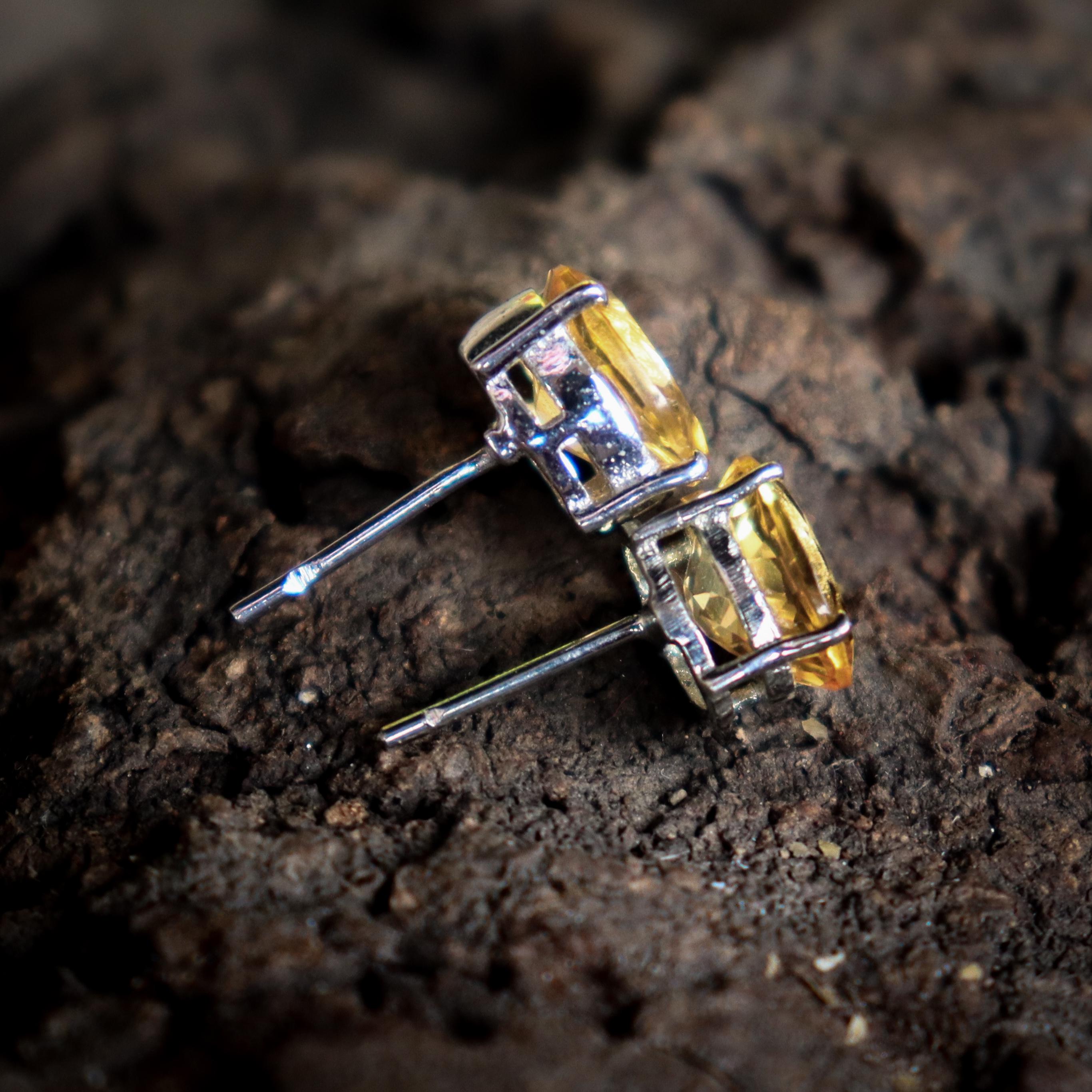 BEAUTIFUL NATURAL YELLOW CITRINE STUDS WITH STERLING SILVER