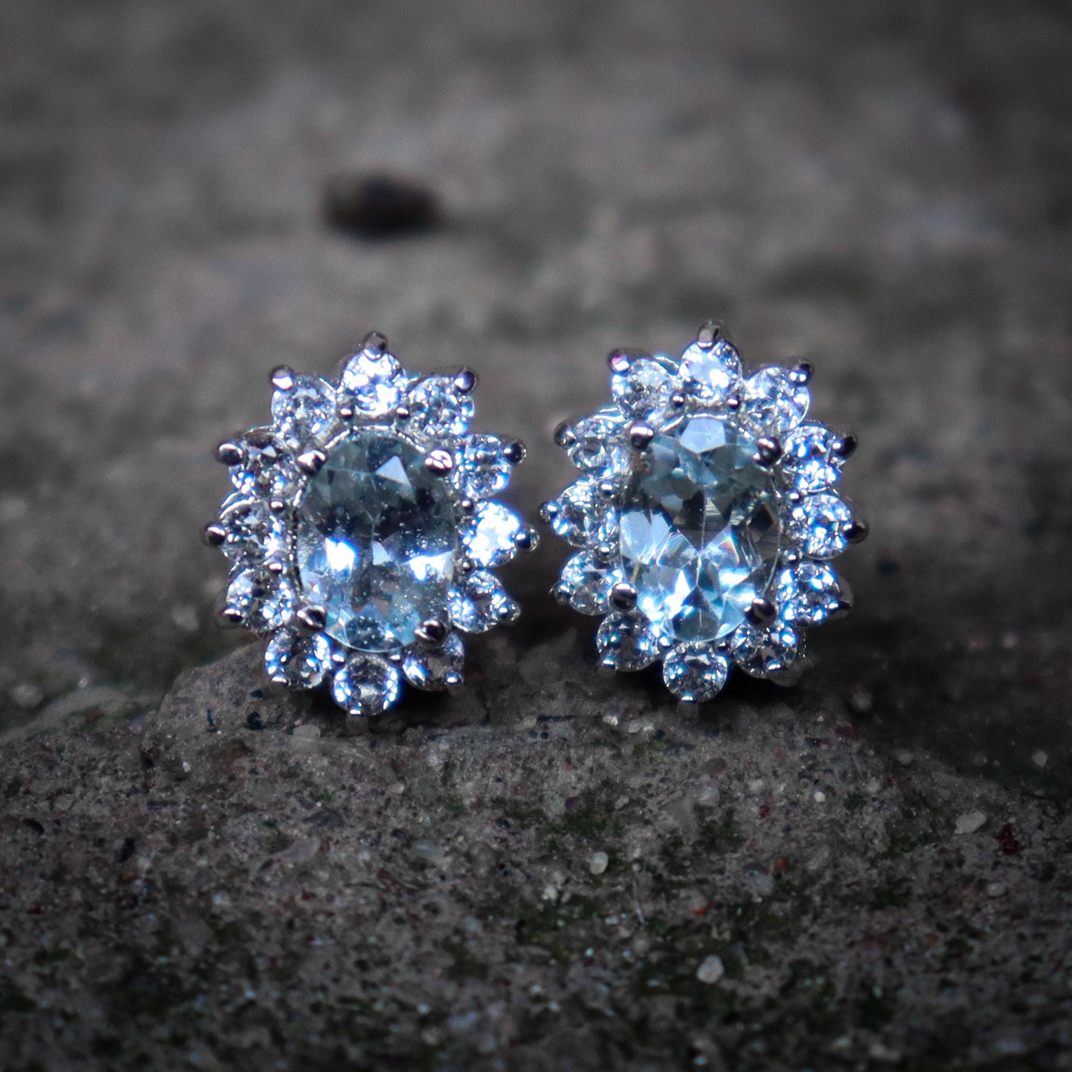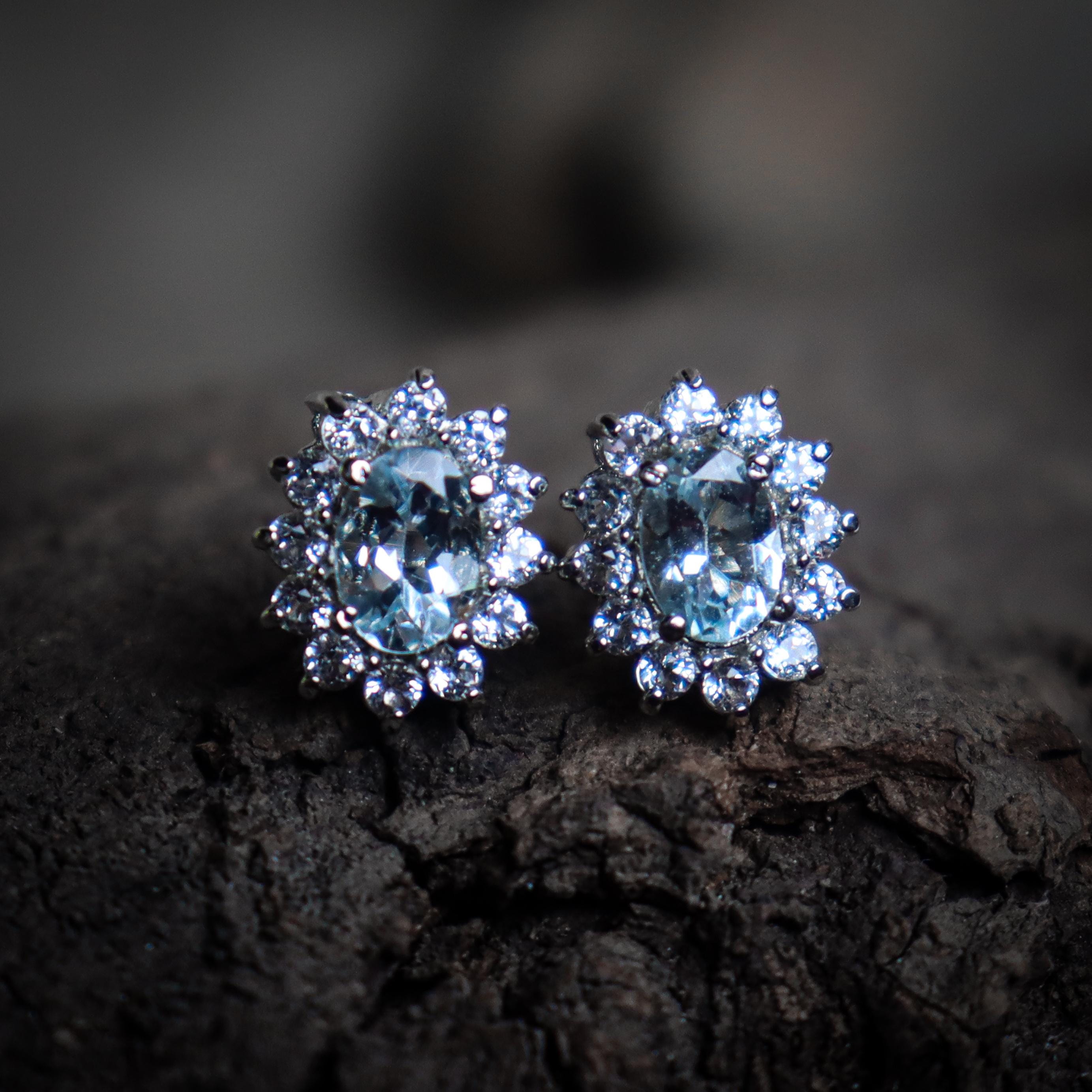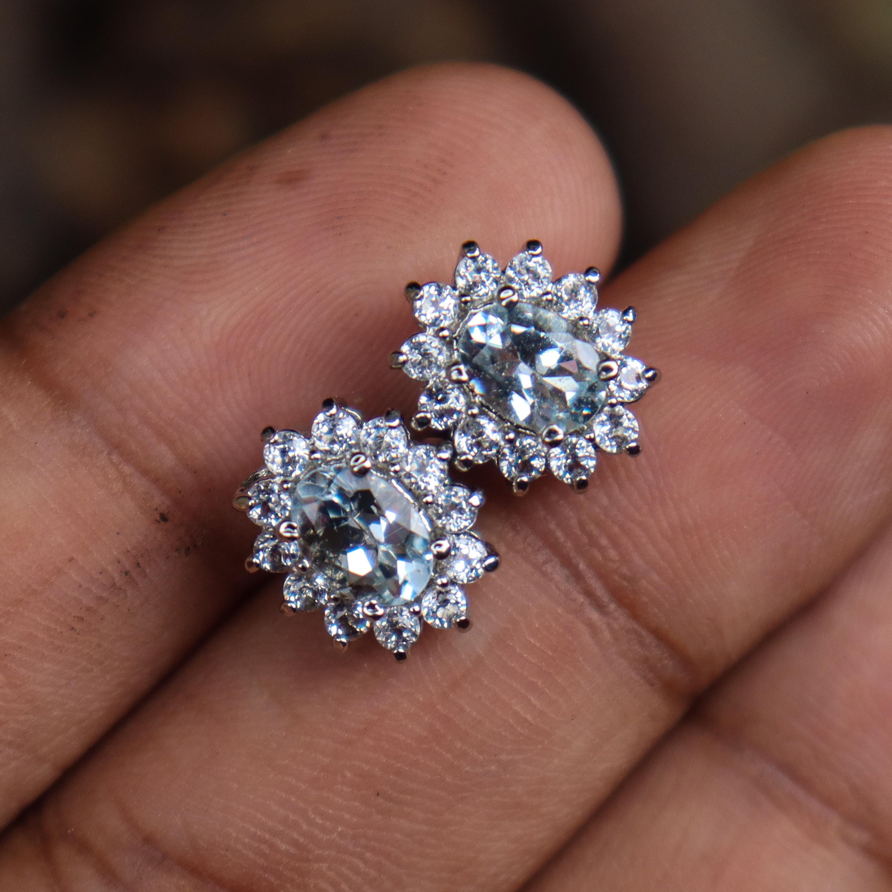 BEAUTIFUL NATURAL BLUE AQUAMARINE STUDS WITH STERLING SILVER