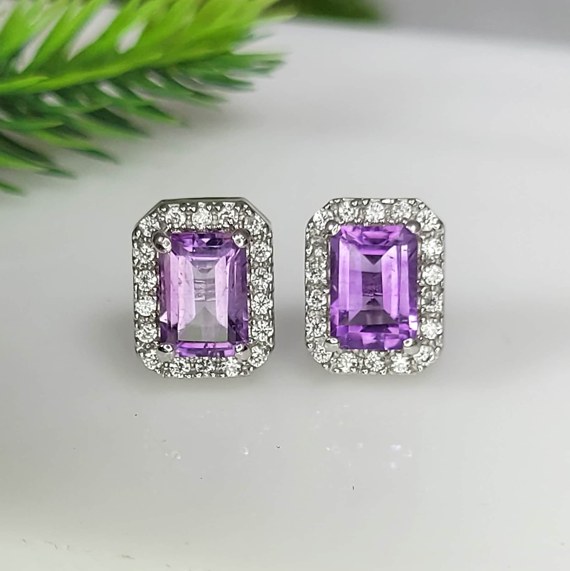 PURPLE AMETHYST STUDS WITH STERLING SILVER