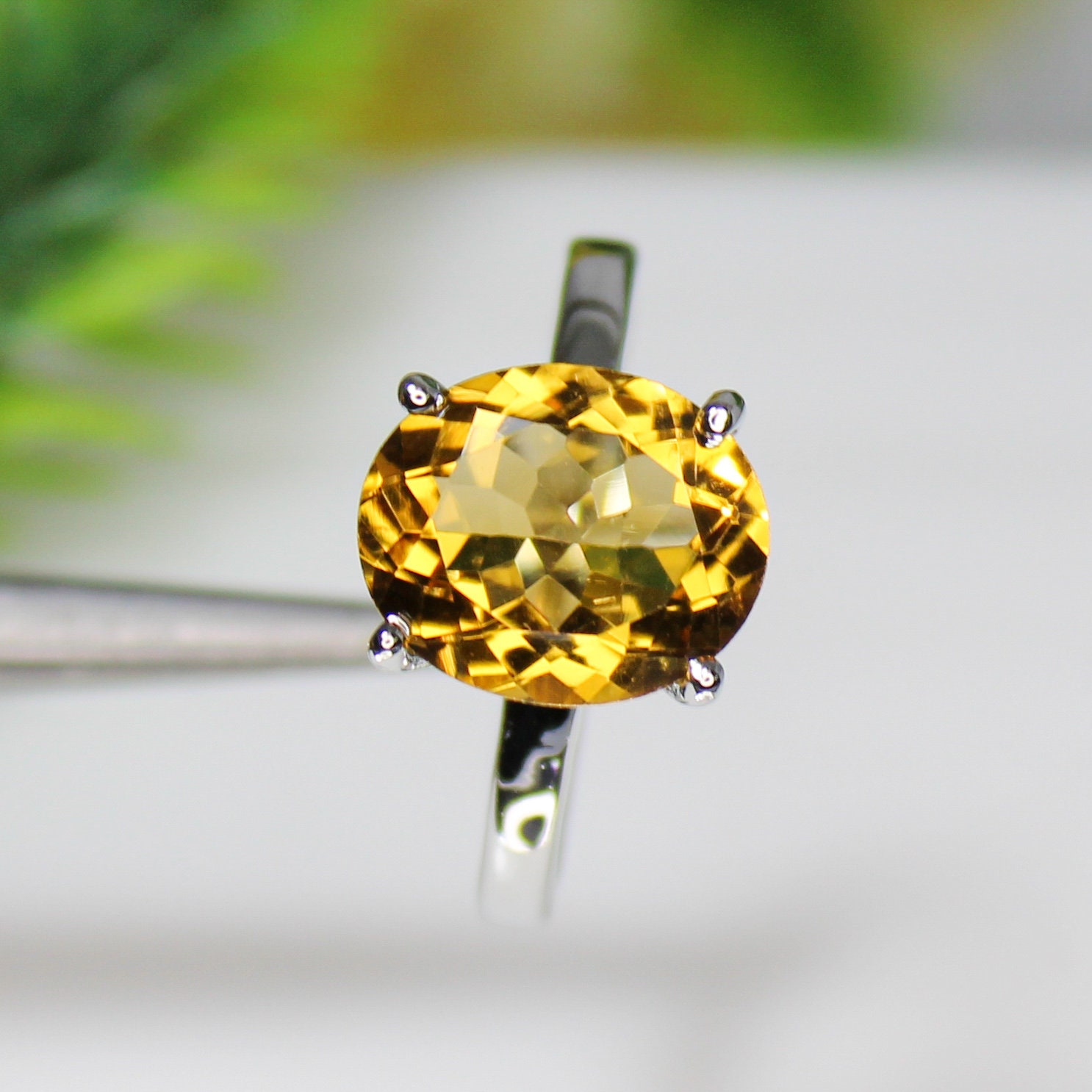 GEMSTONES ON RING - YELLOW CITRINE