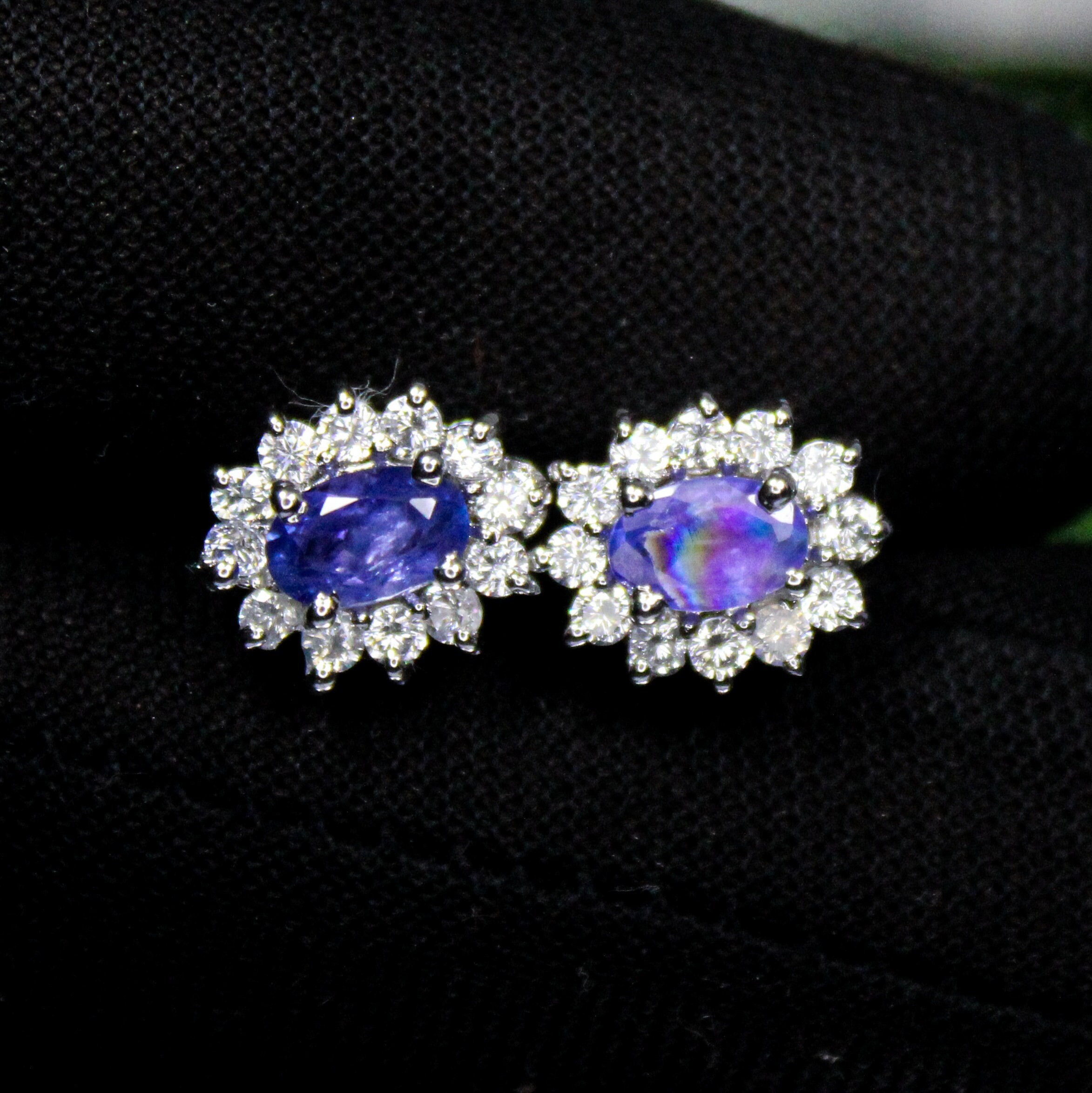 BLUE TANZANITE STUDS WITH STERLING SILVER