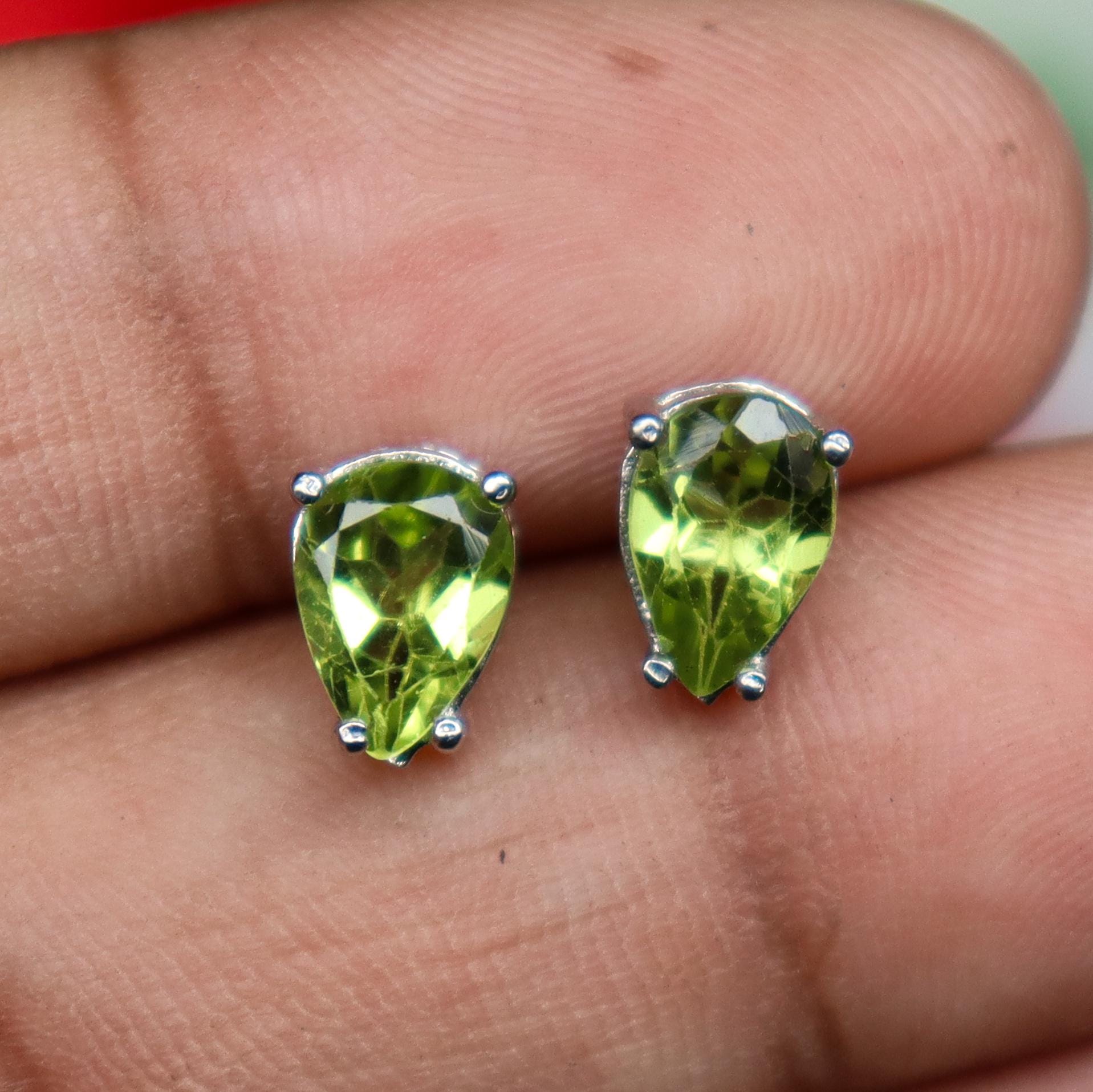 BEAUTIFUL NATURAL GREEN PERIDOT STUDS WITH STERLING SILVER