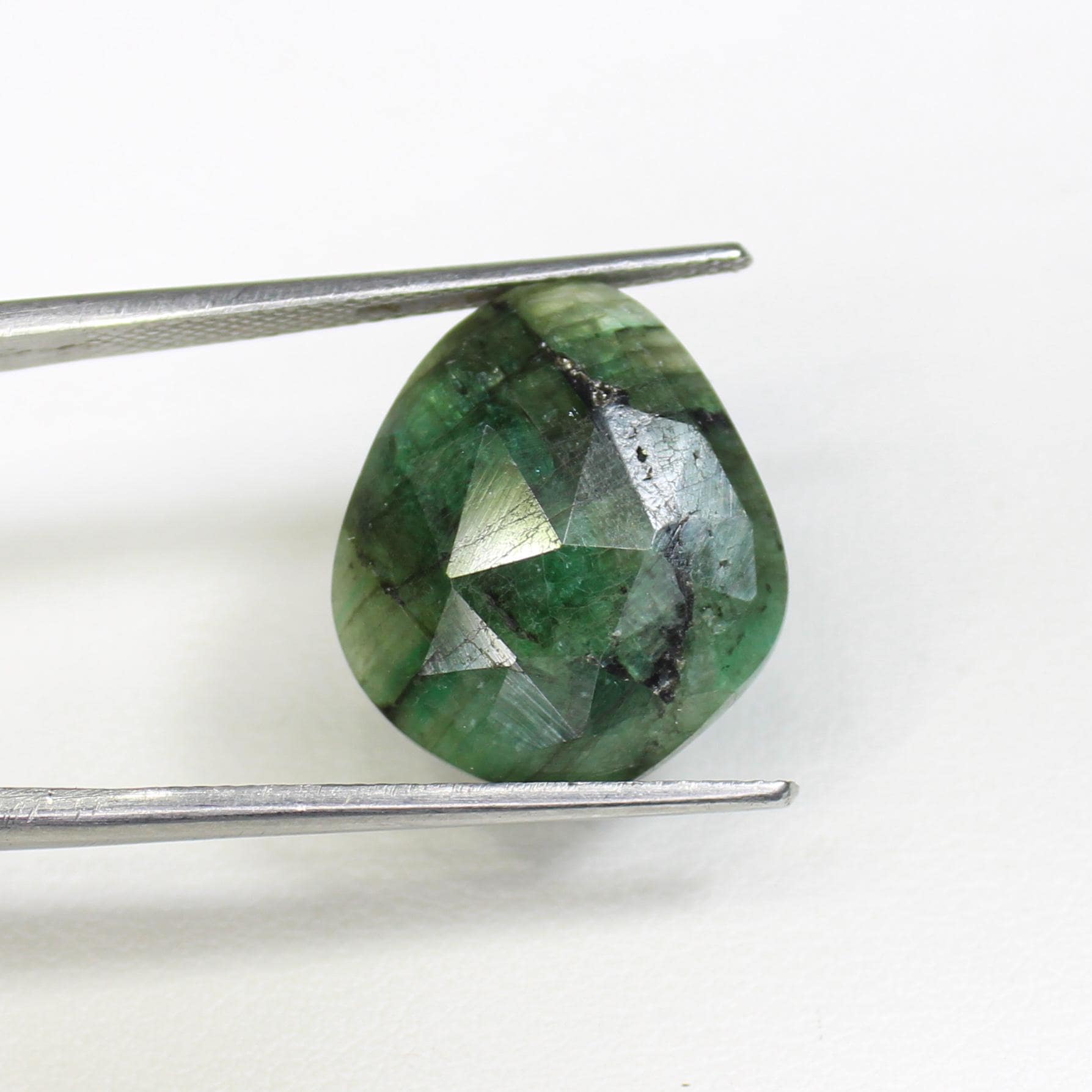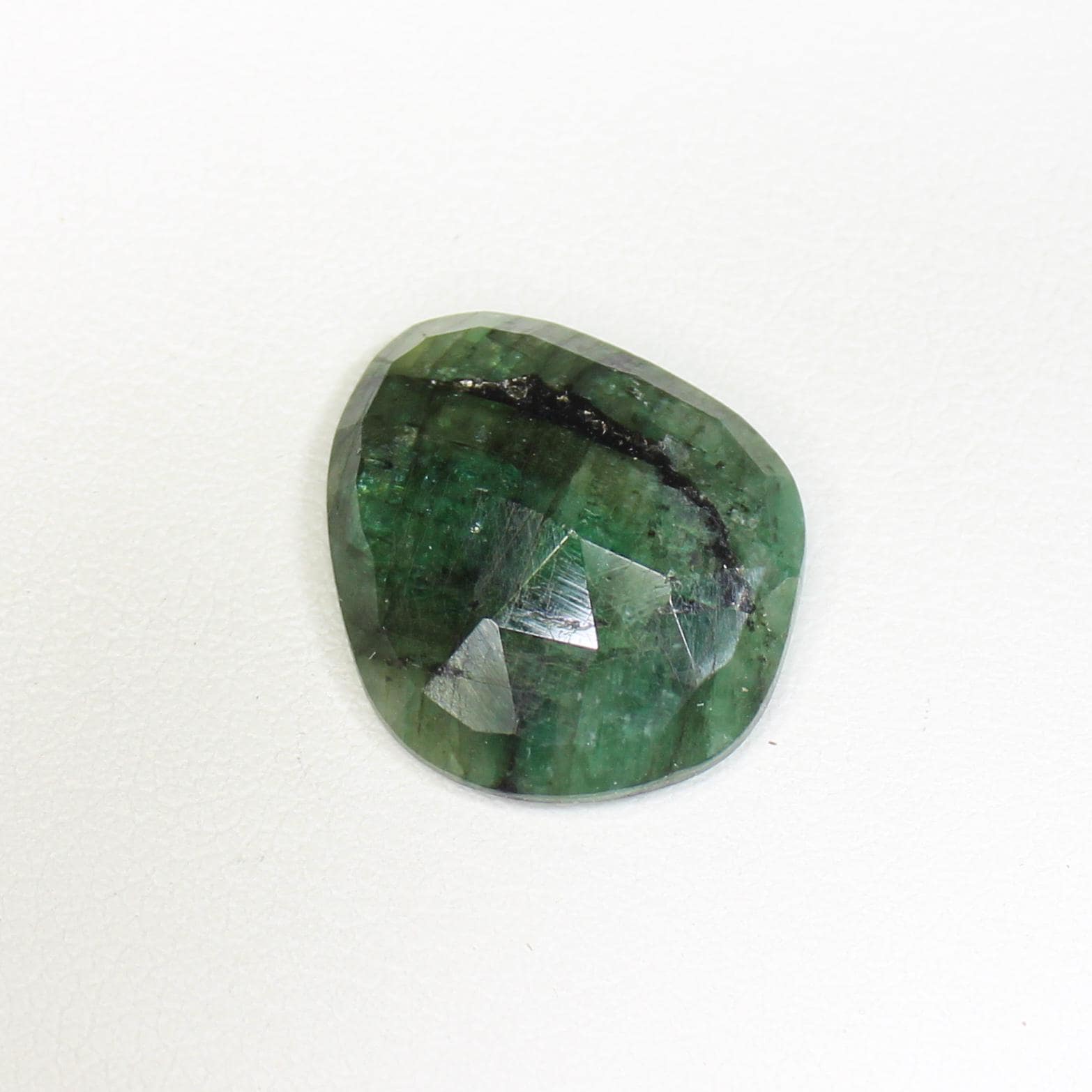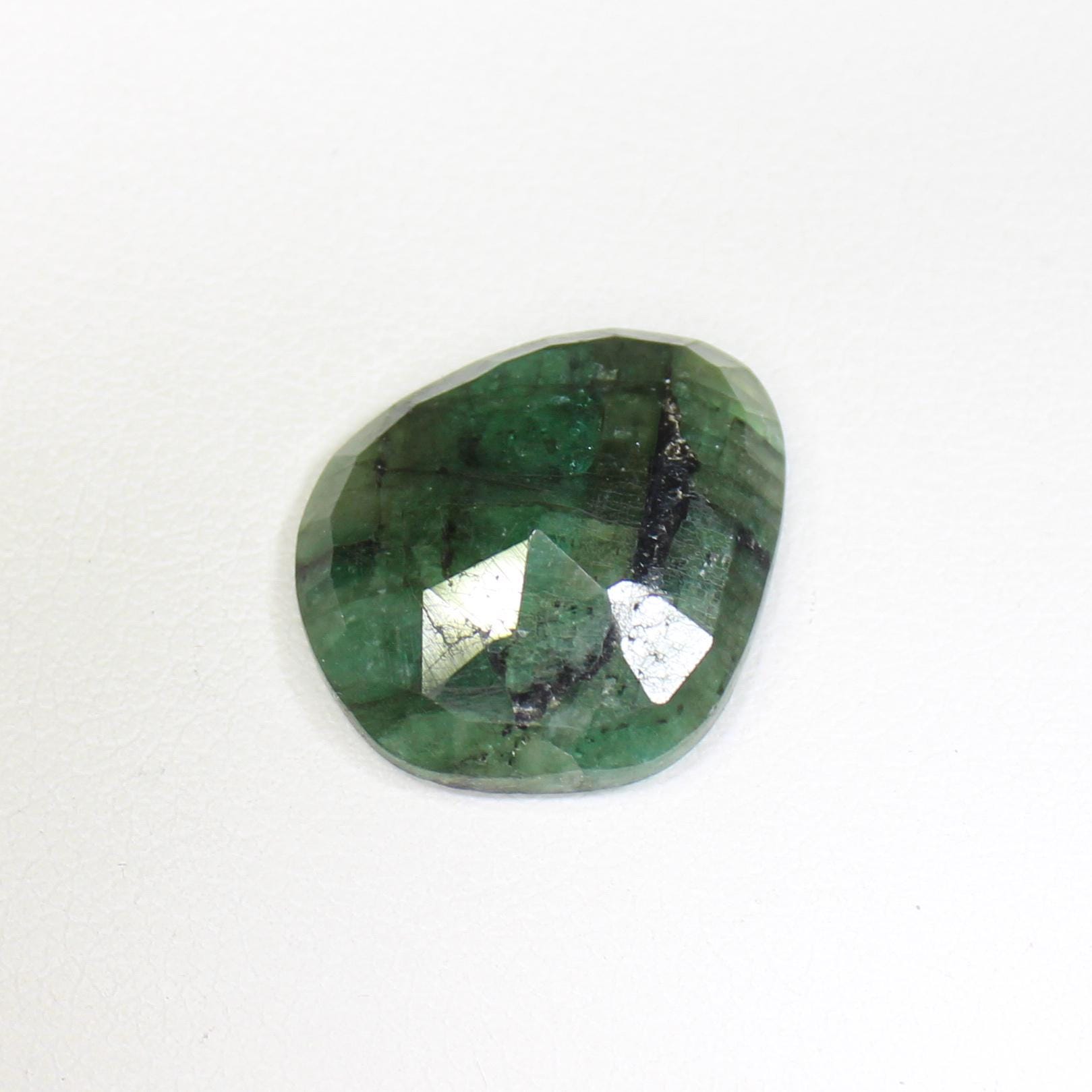 100% NATURAL FACETED GREEN EMERALD PIECE IN ROSE CUT