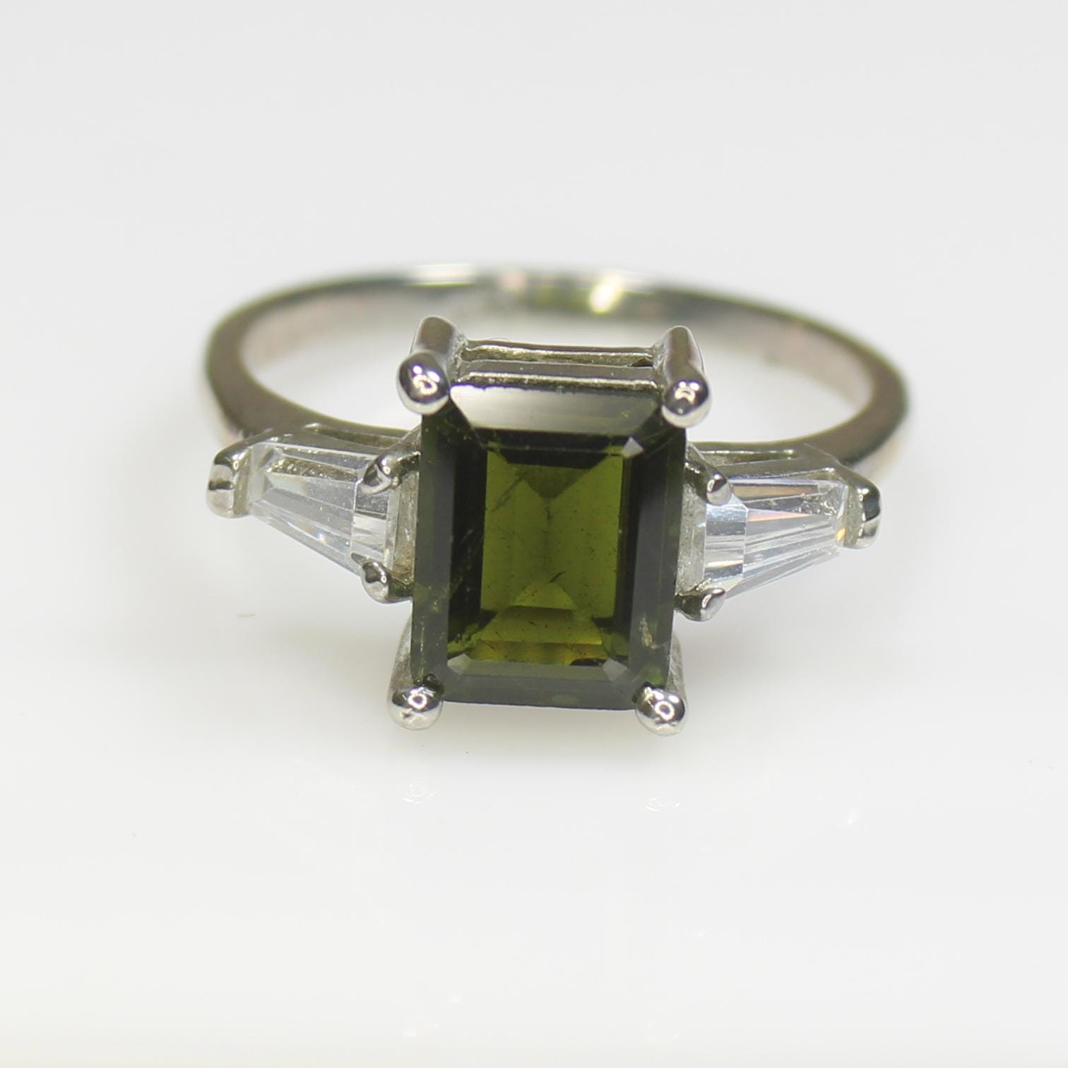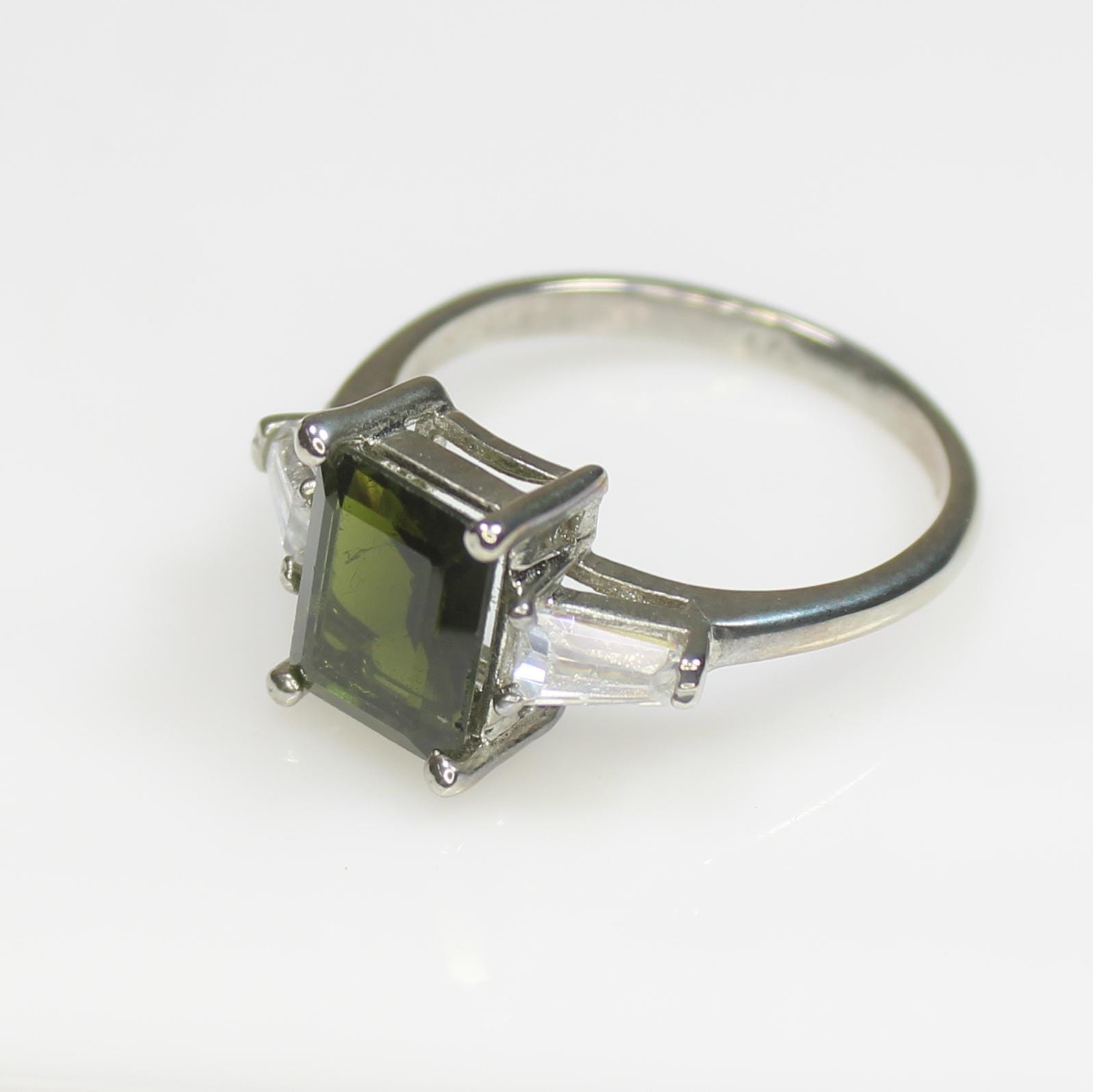 NATURAL GREEN TOURMALINE RING WITH STERLING SILVER