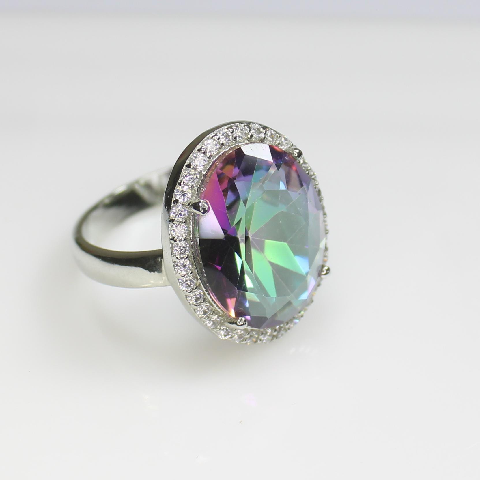 GEMSTONES ON RING - LABECRATED MYSTIC TOPAZ RING