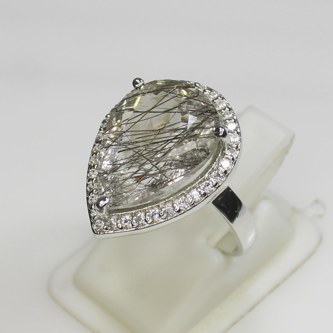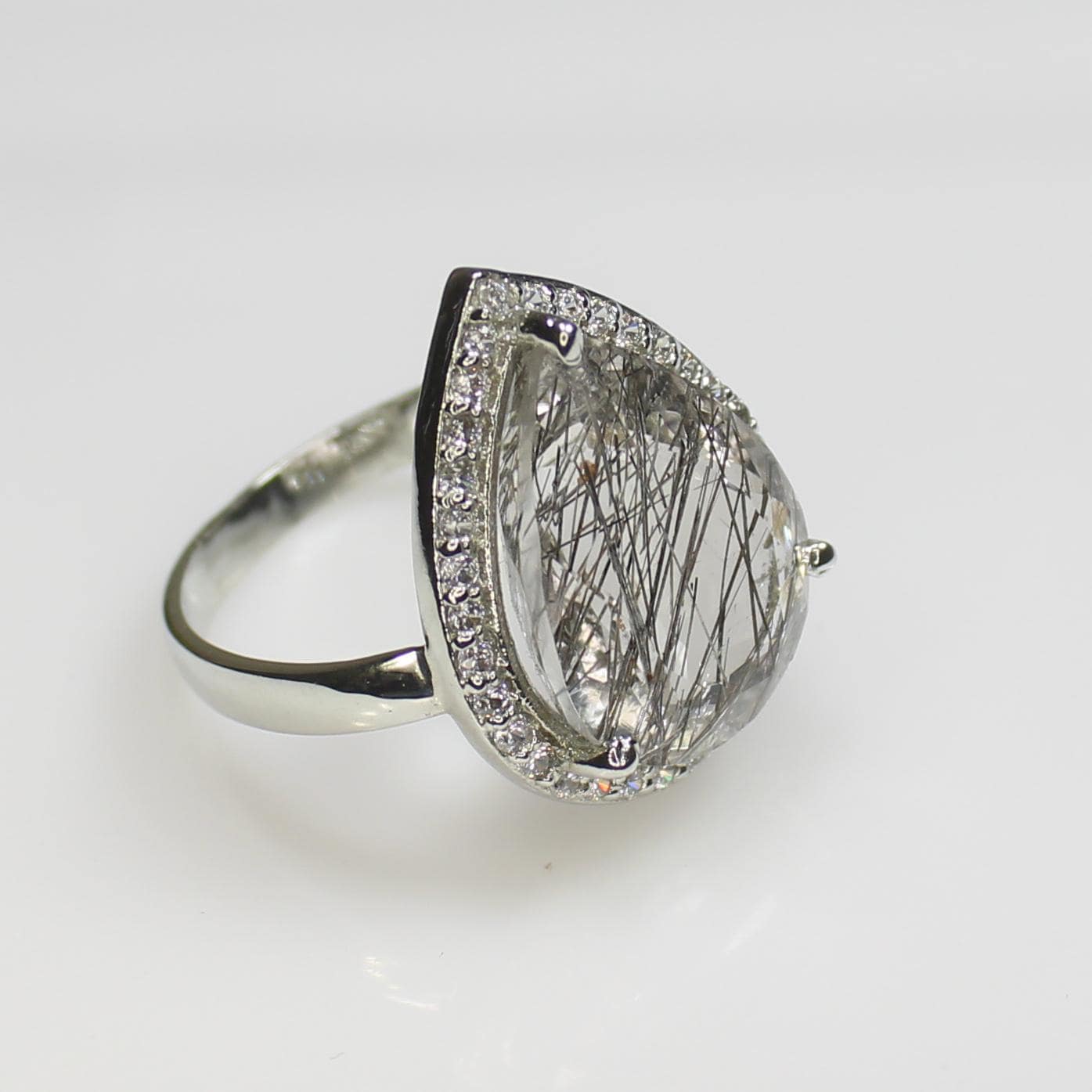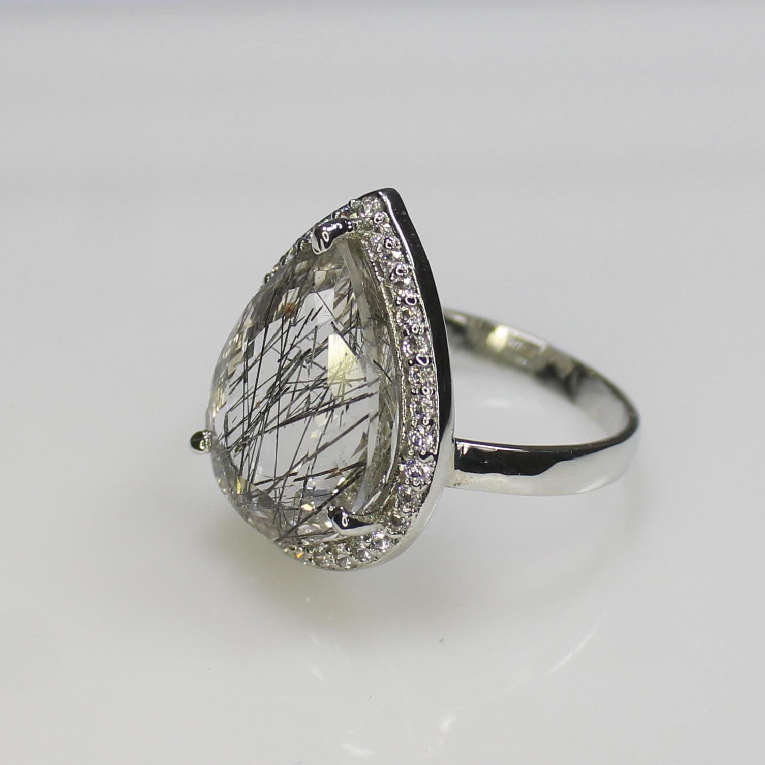 NATURAL RUTILE QUARTZ RING WITH STERLING SILVER