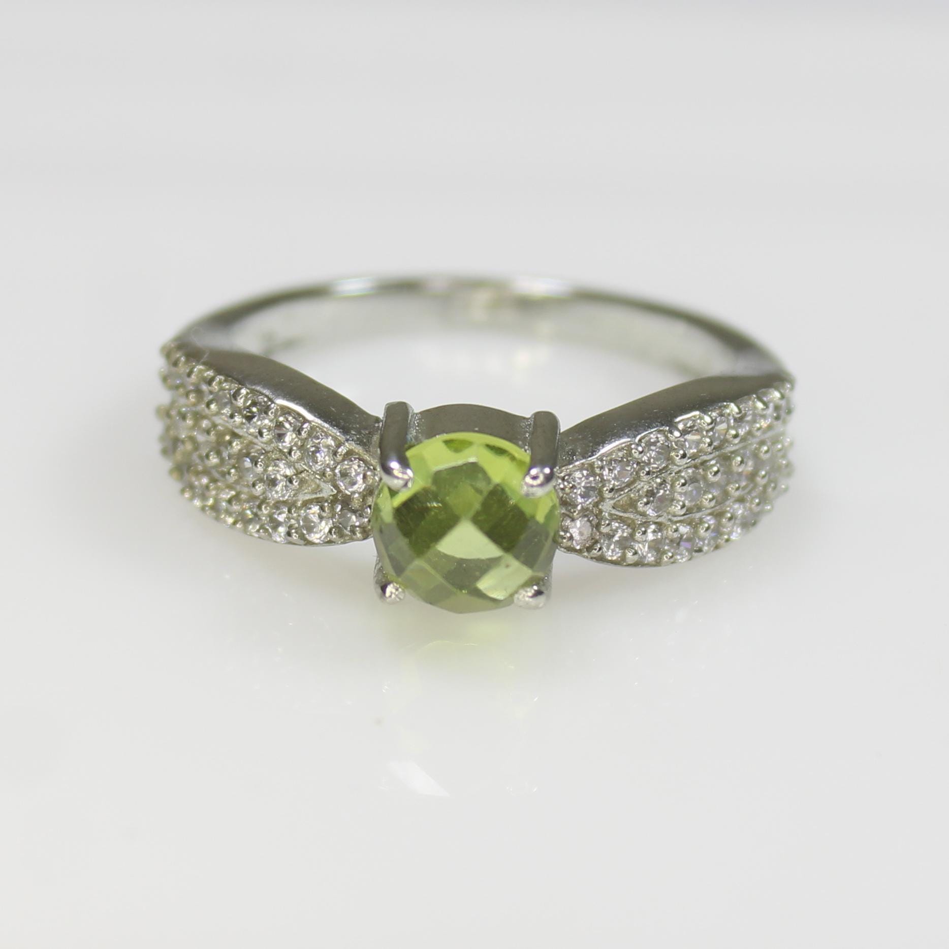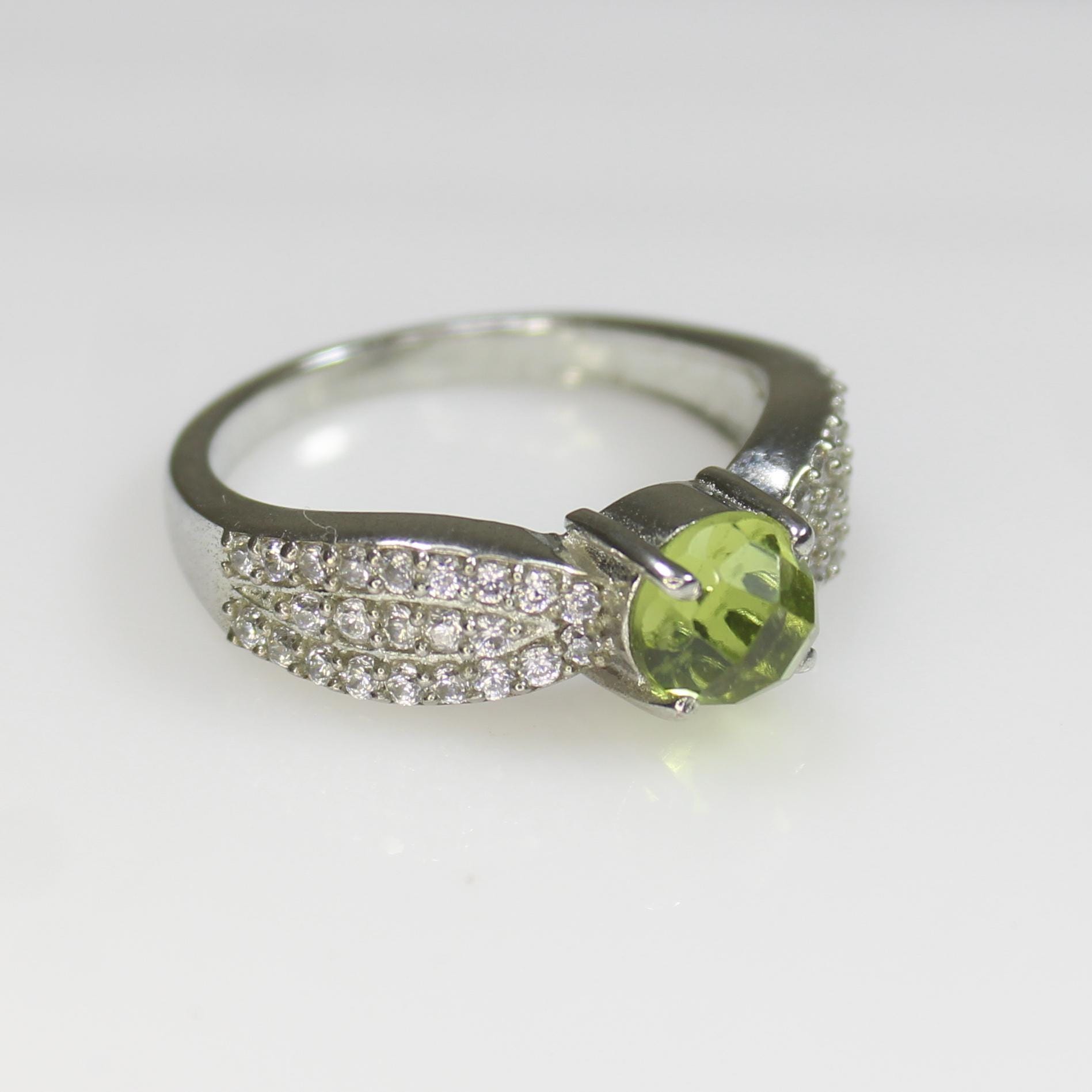NATURAL GREEN PERIDOT RING WITH STERLING SILVER
