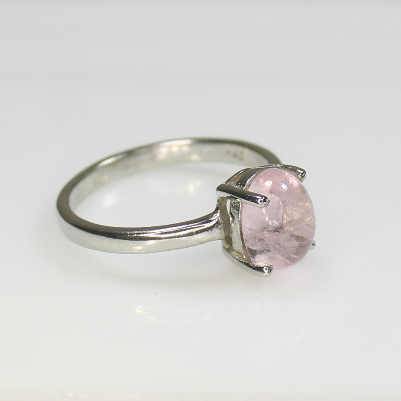NATURAL PINK MORGANITE RING WITH STERLING SILVER