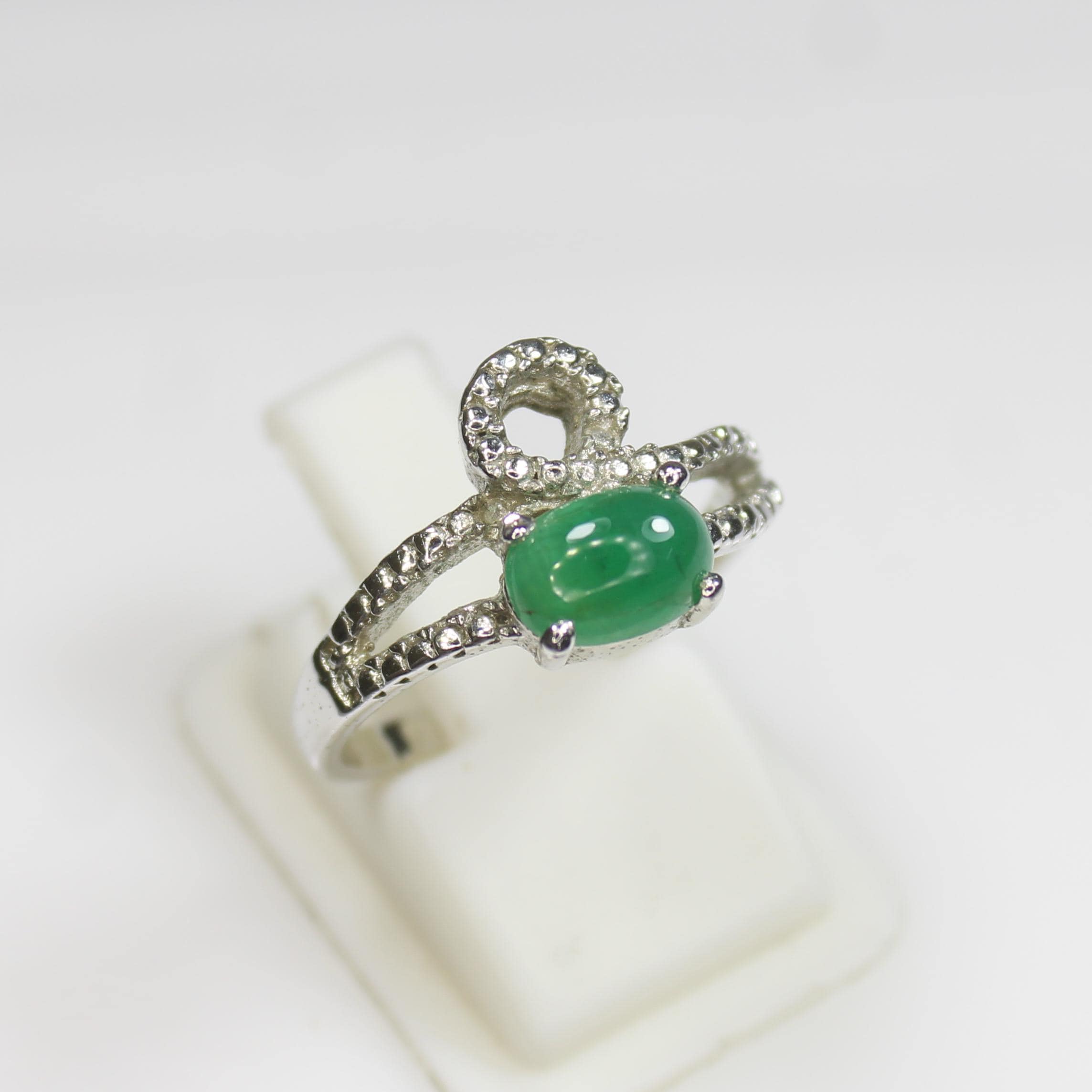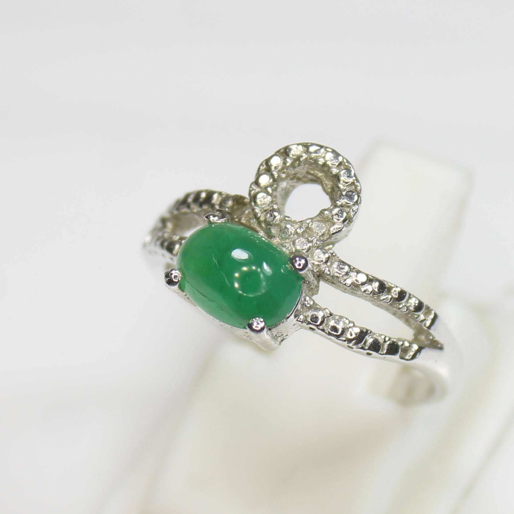 NATURAL GREEN EMERALD RING WITH STERLING SILVER