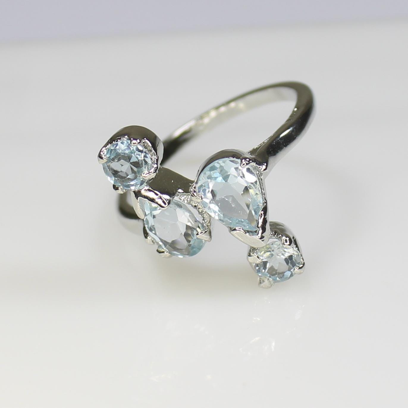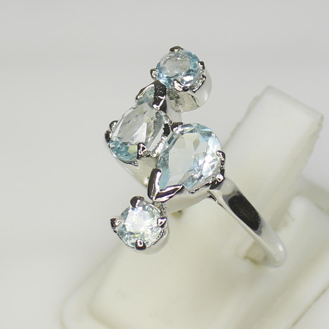 GEMSTONES ON RING - NATURAL BLUE AQUAMARINE