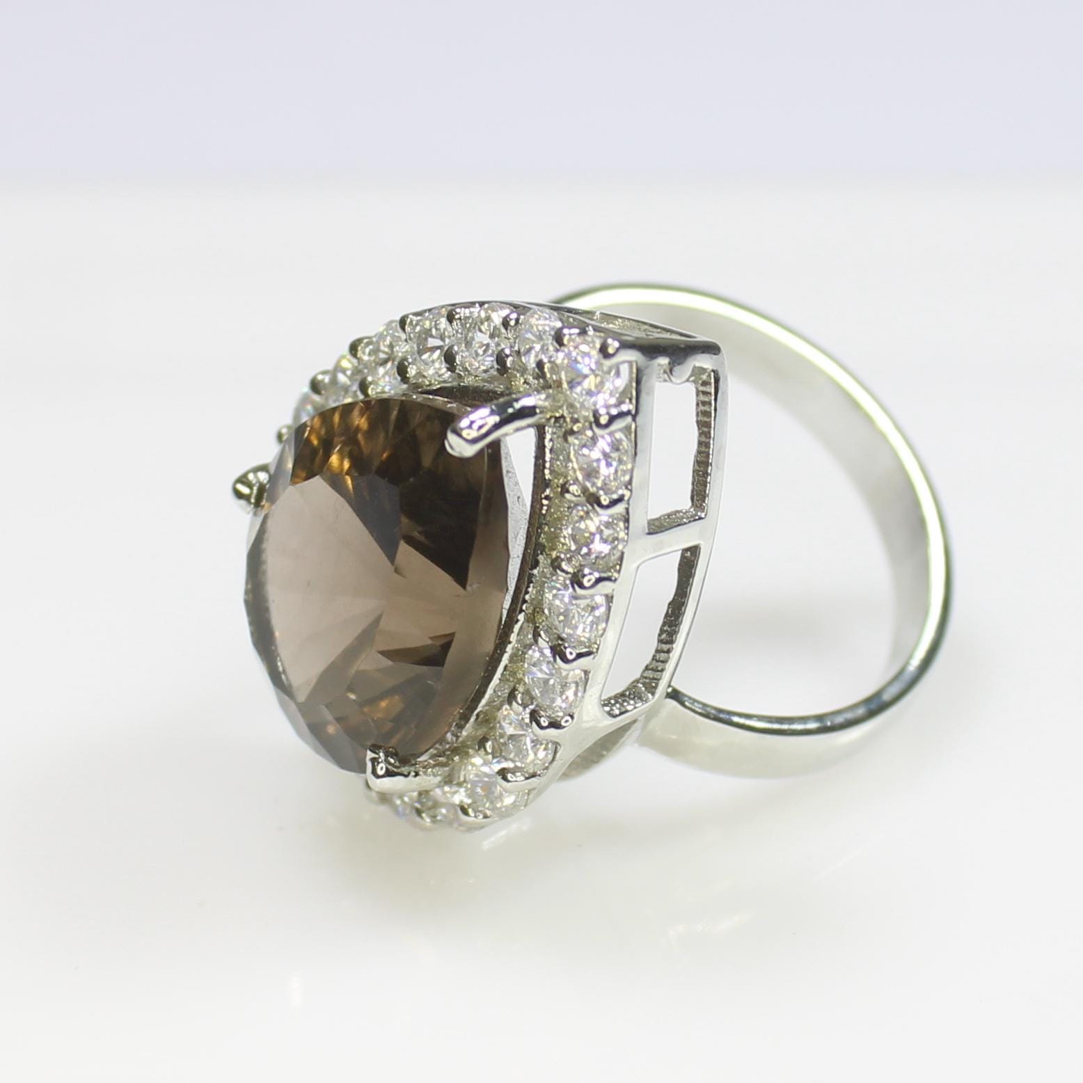 NATURAL SMOKEY QUARTZ RING WITH STERLING SILVER