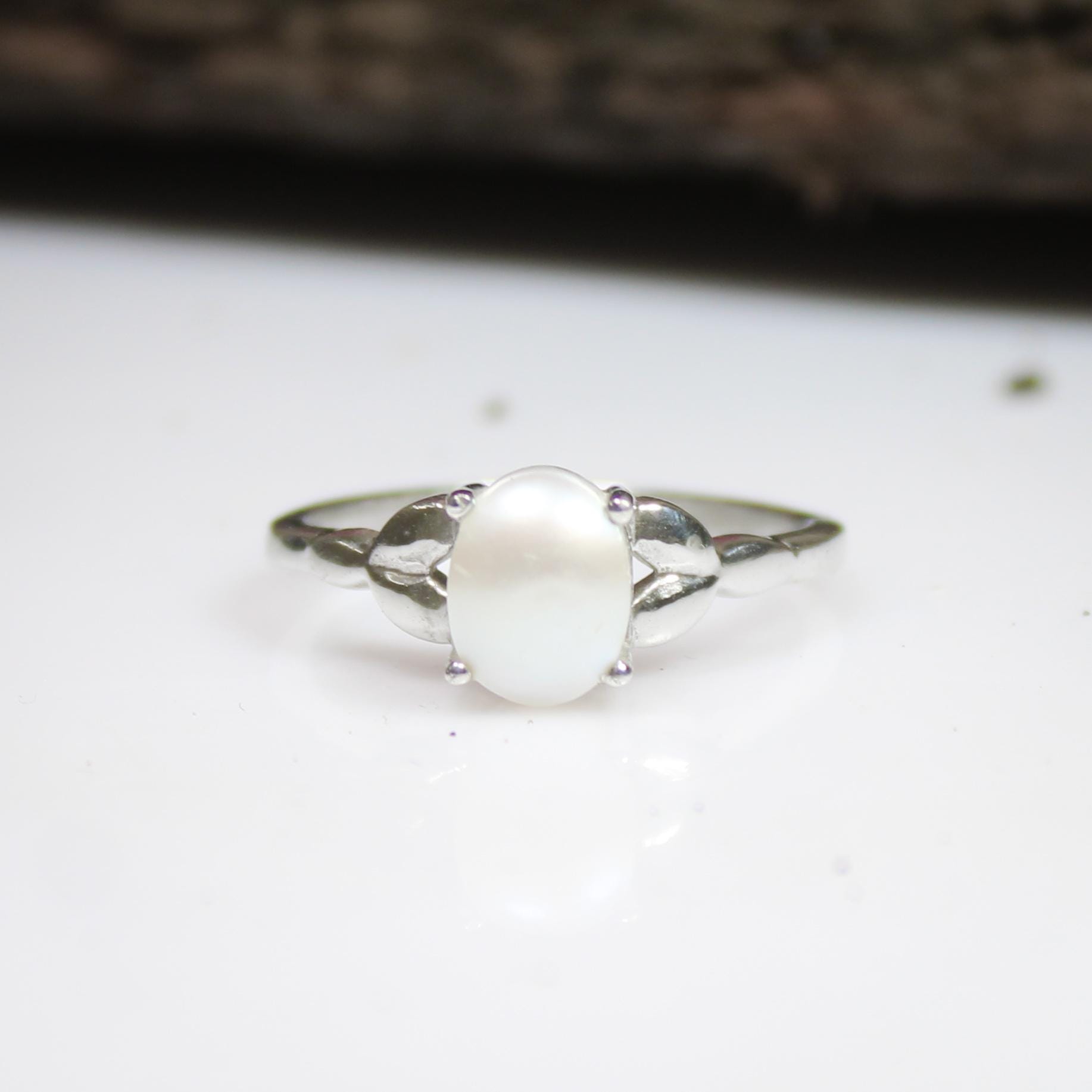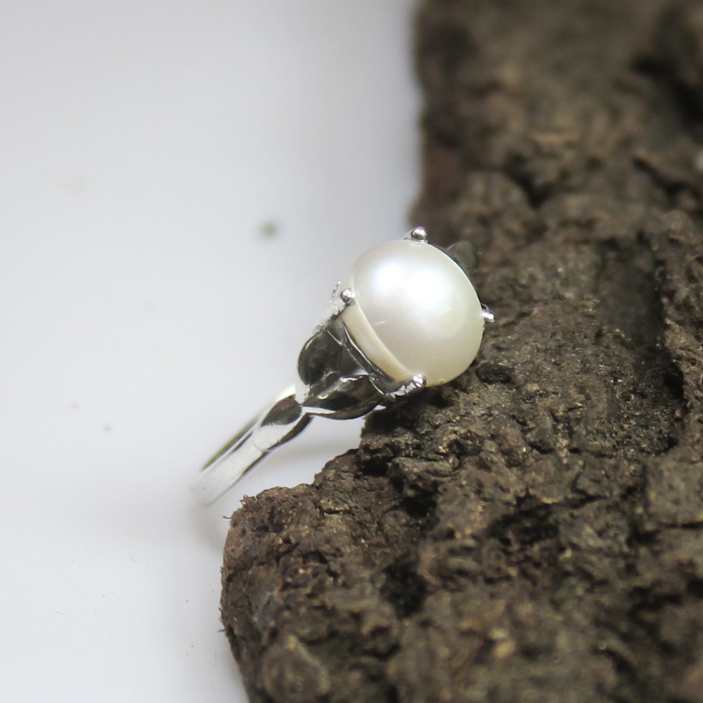 GEMSTONES ON RING - NATURAL WHITE PEARL RING