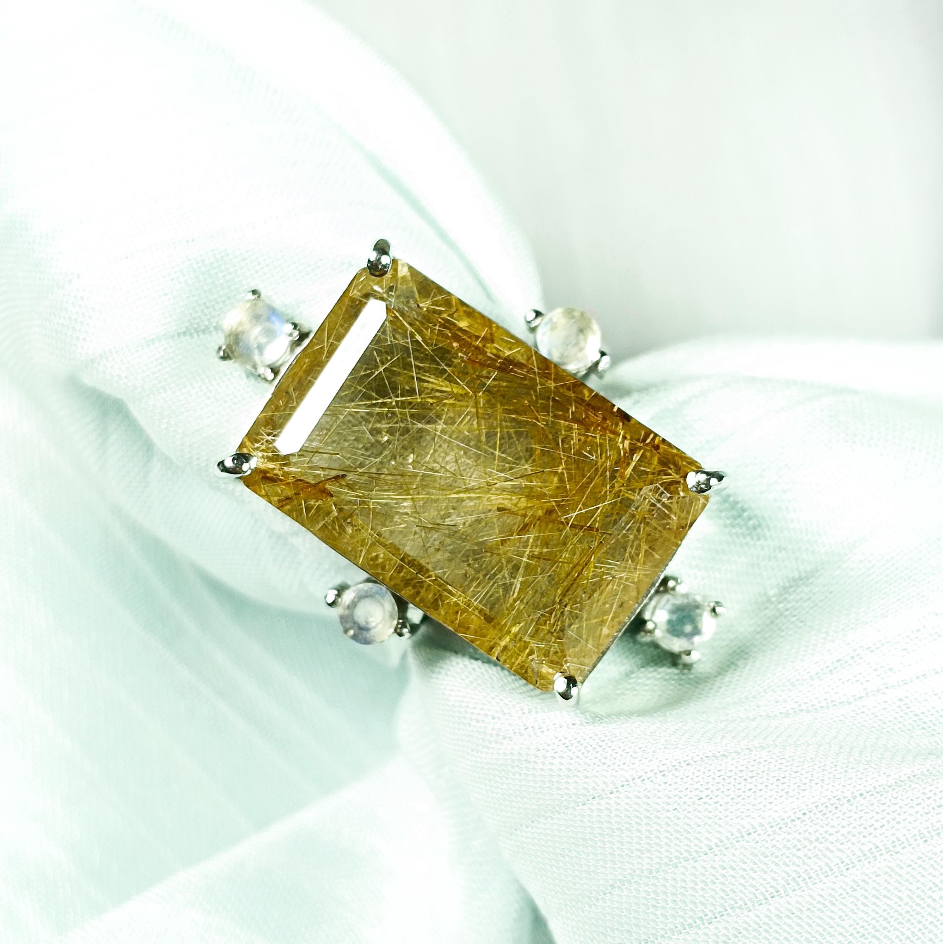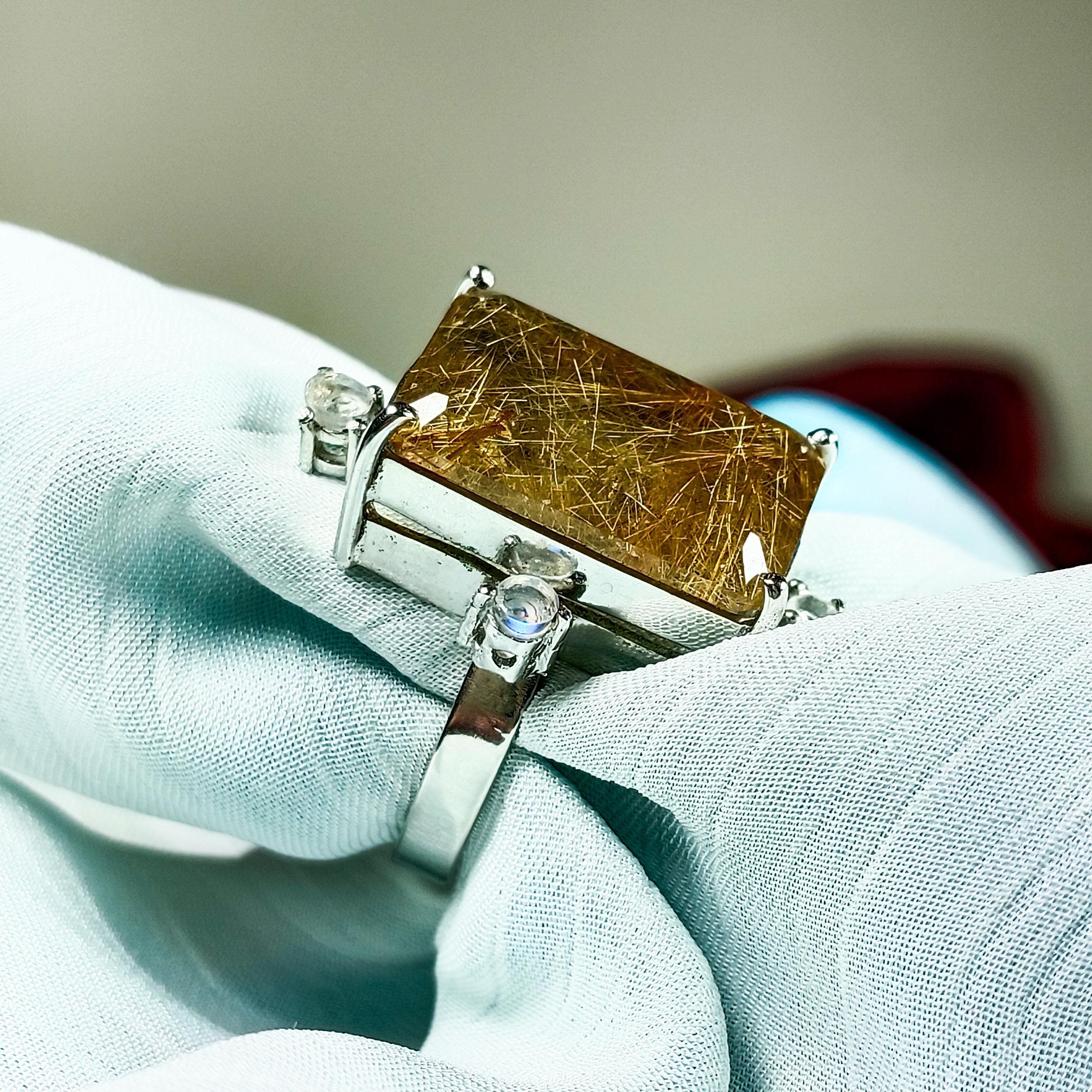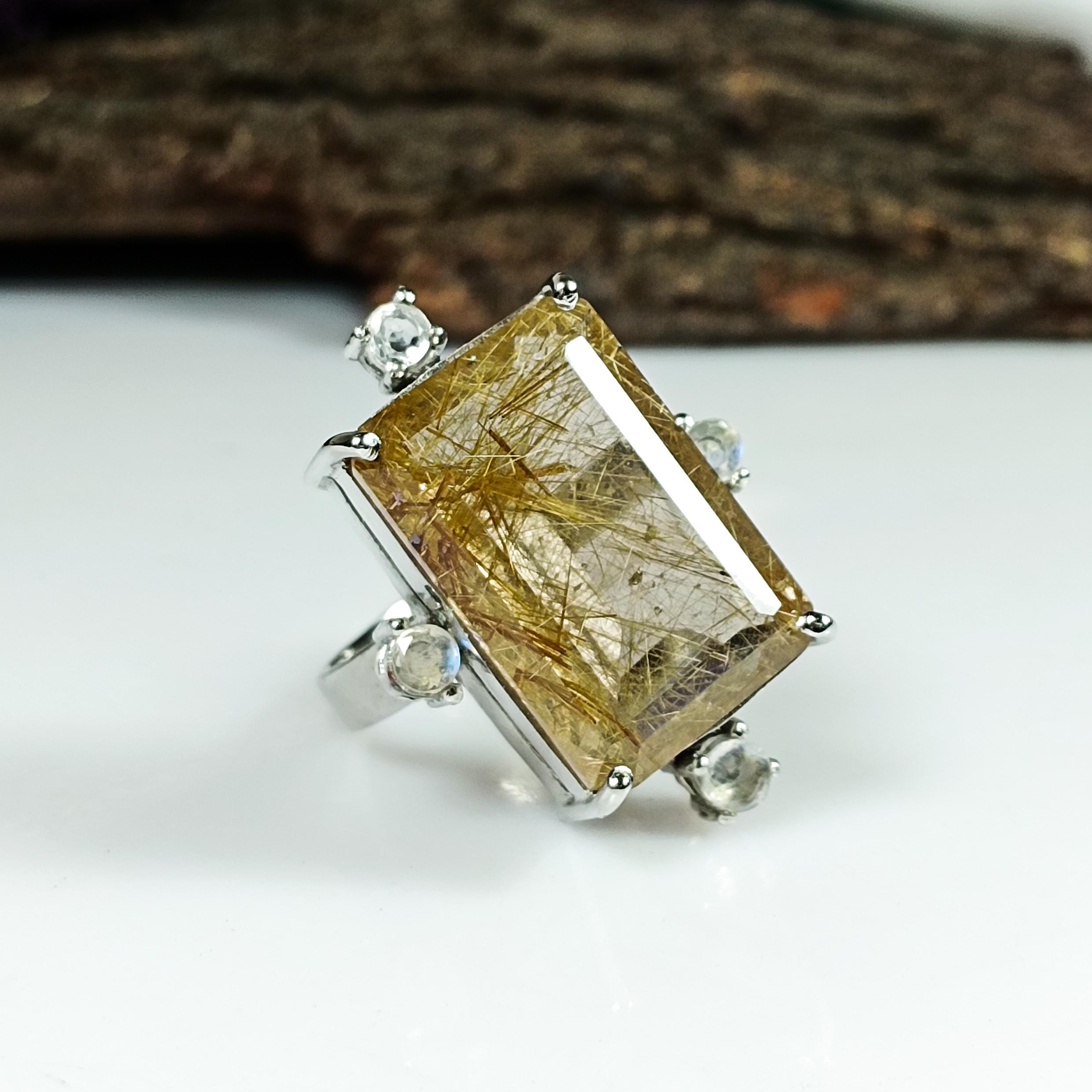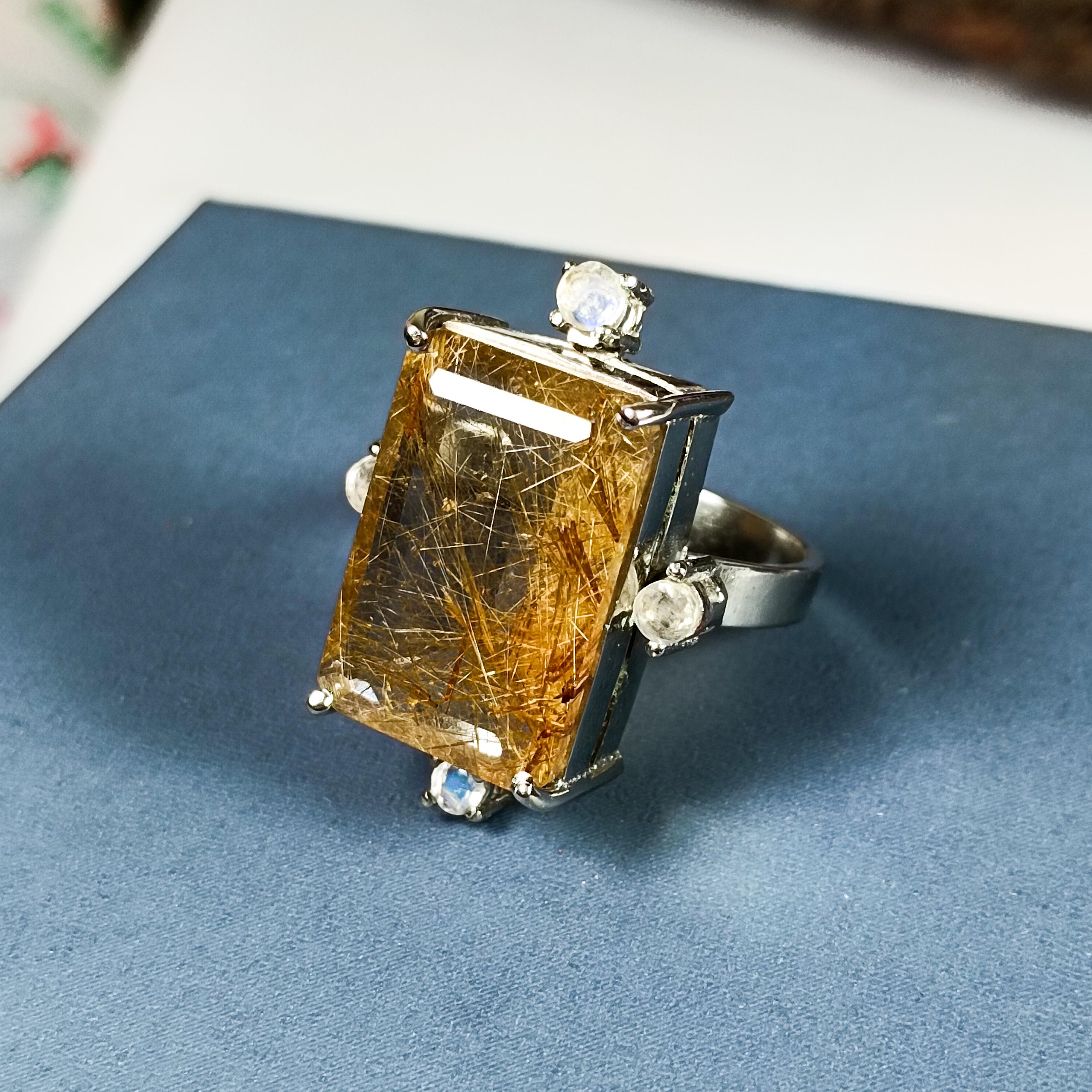 NATURAL GOLDEN RUTILE QUARTZ RING WITH STERLING SILVER