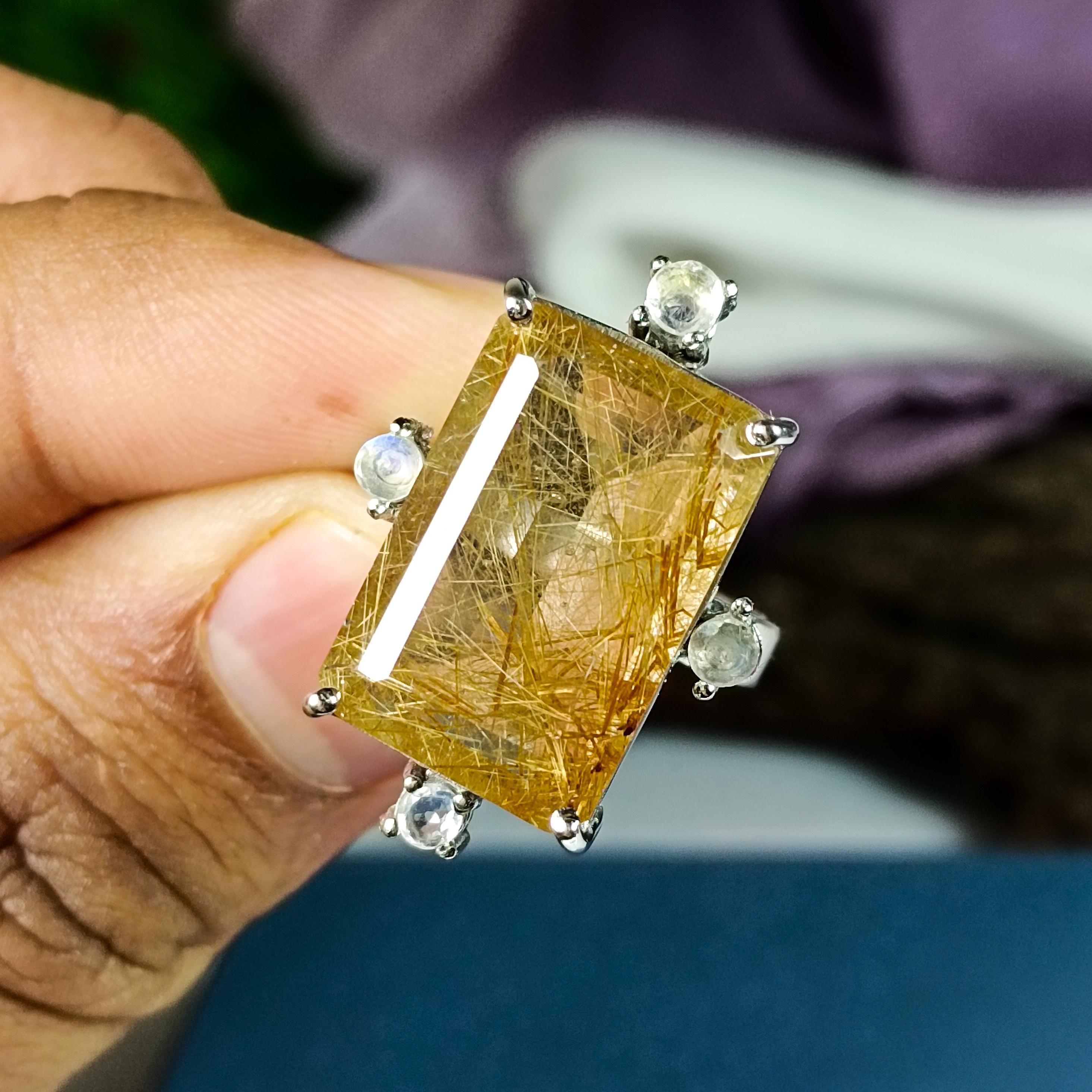GEMSTONES ON RING - NATURAL GOLDEN RUTILE QUARTZ