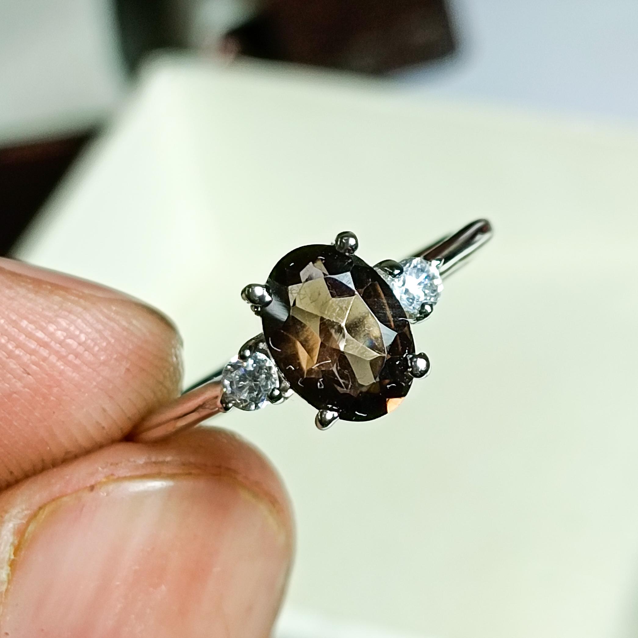 GEMSTONES ON RING - NATURAL SMOKY QUARTZ