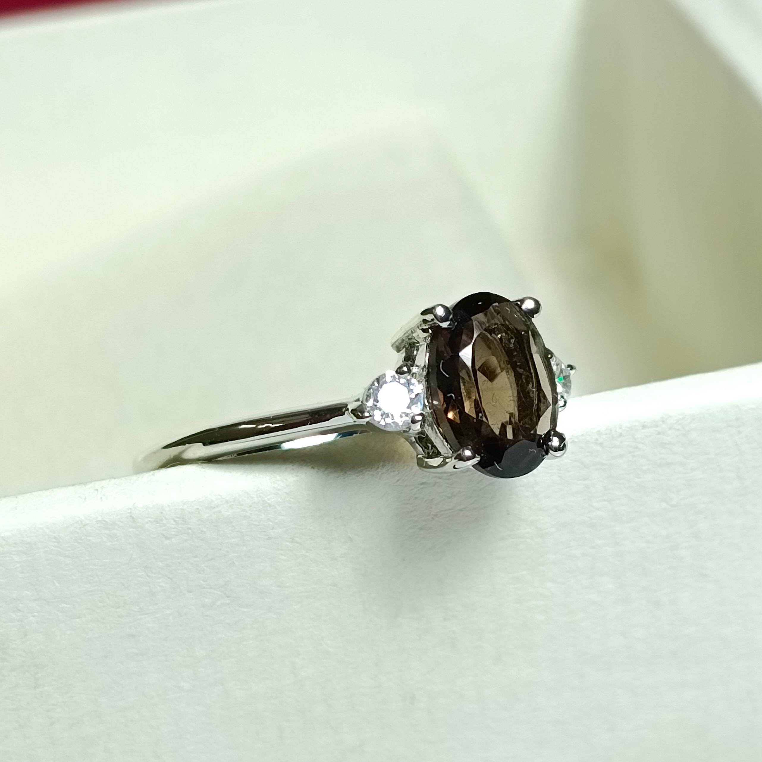 NATURAL SMOKY QUARTZ RING WITH STERLING SILVER