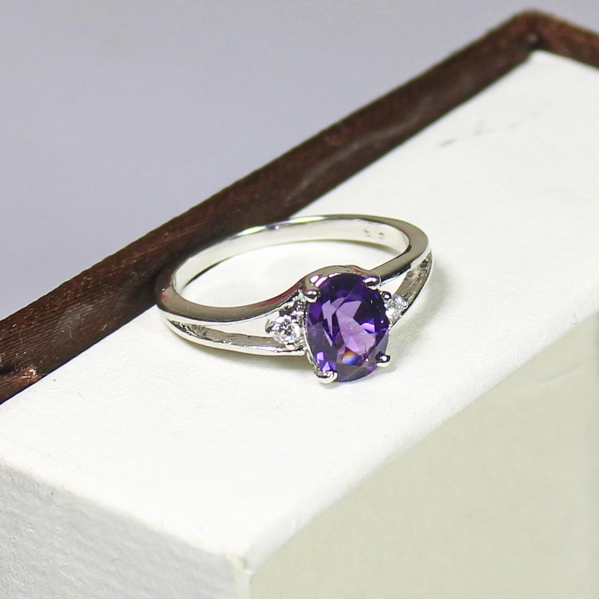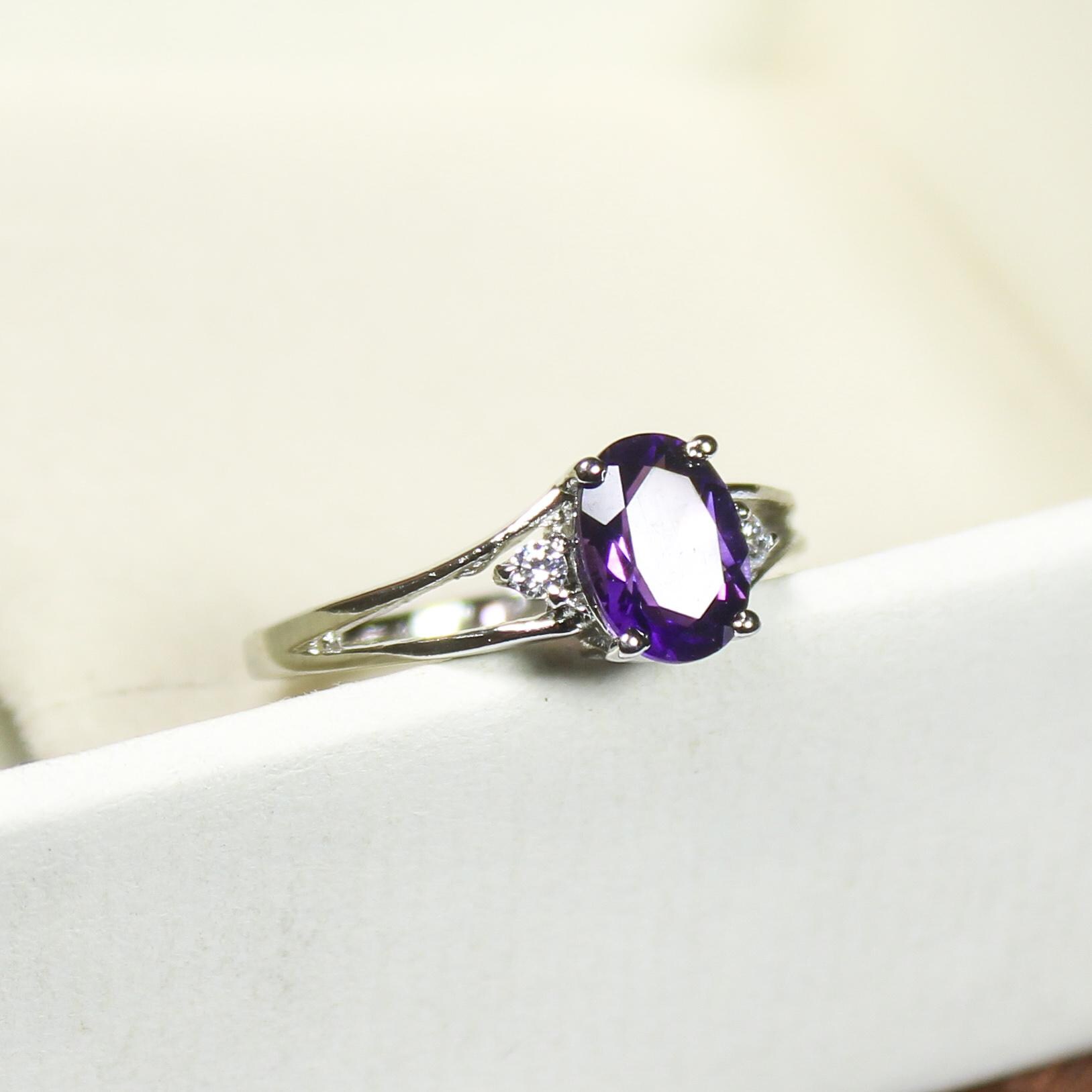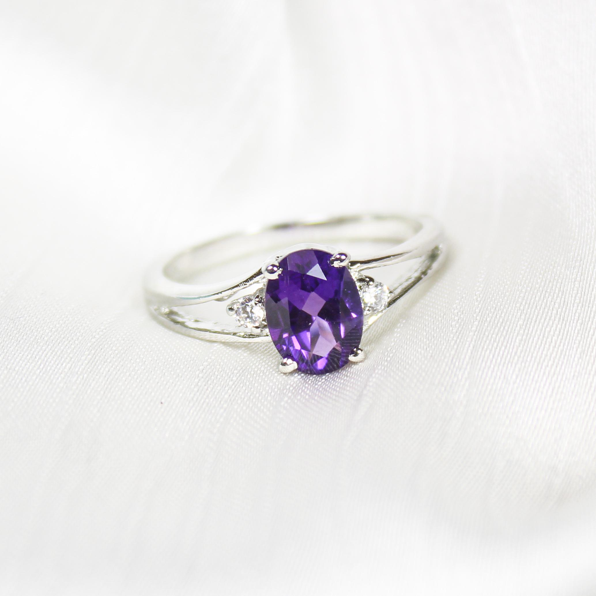 NATURAL PURPLE AMETHYST RING WITH STERLING SILVER