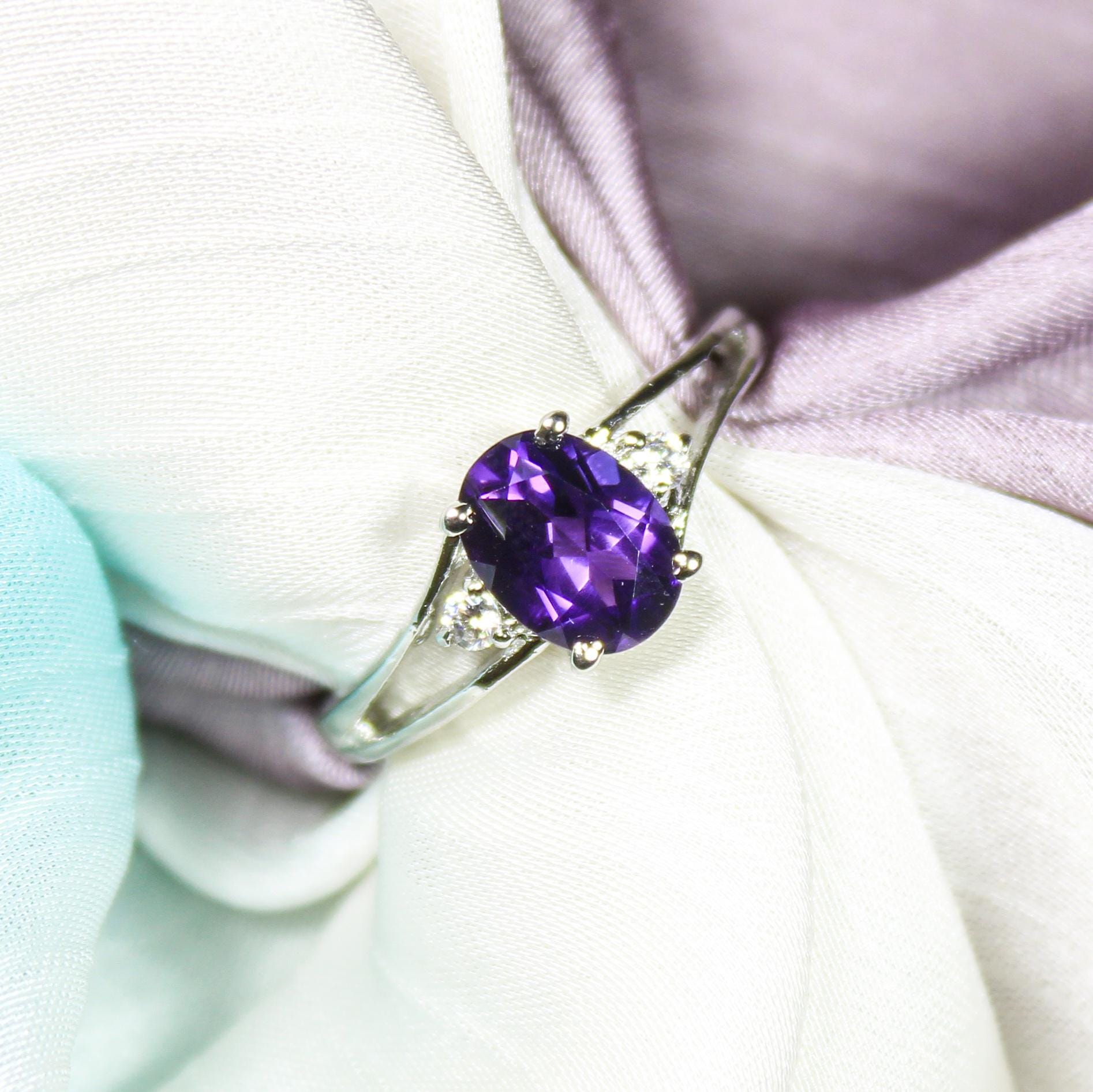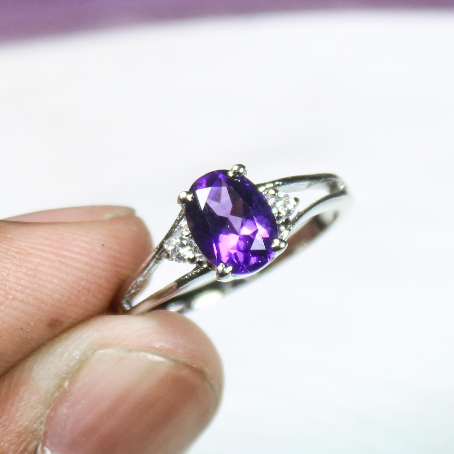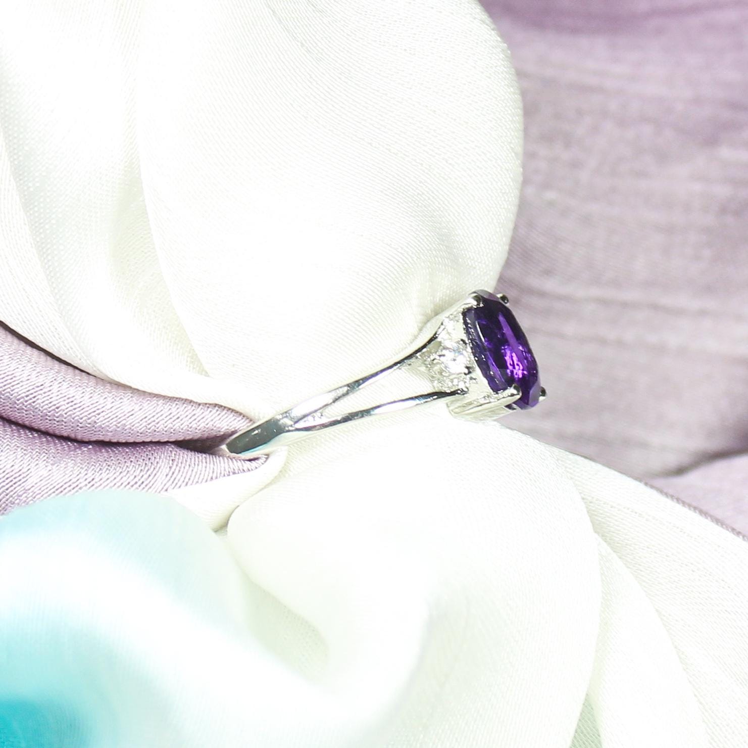 NATURAL PURPLE AMETHYST RING WITH STERLING SILVER