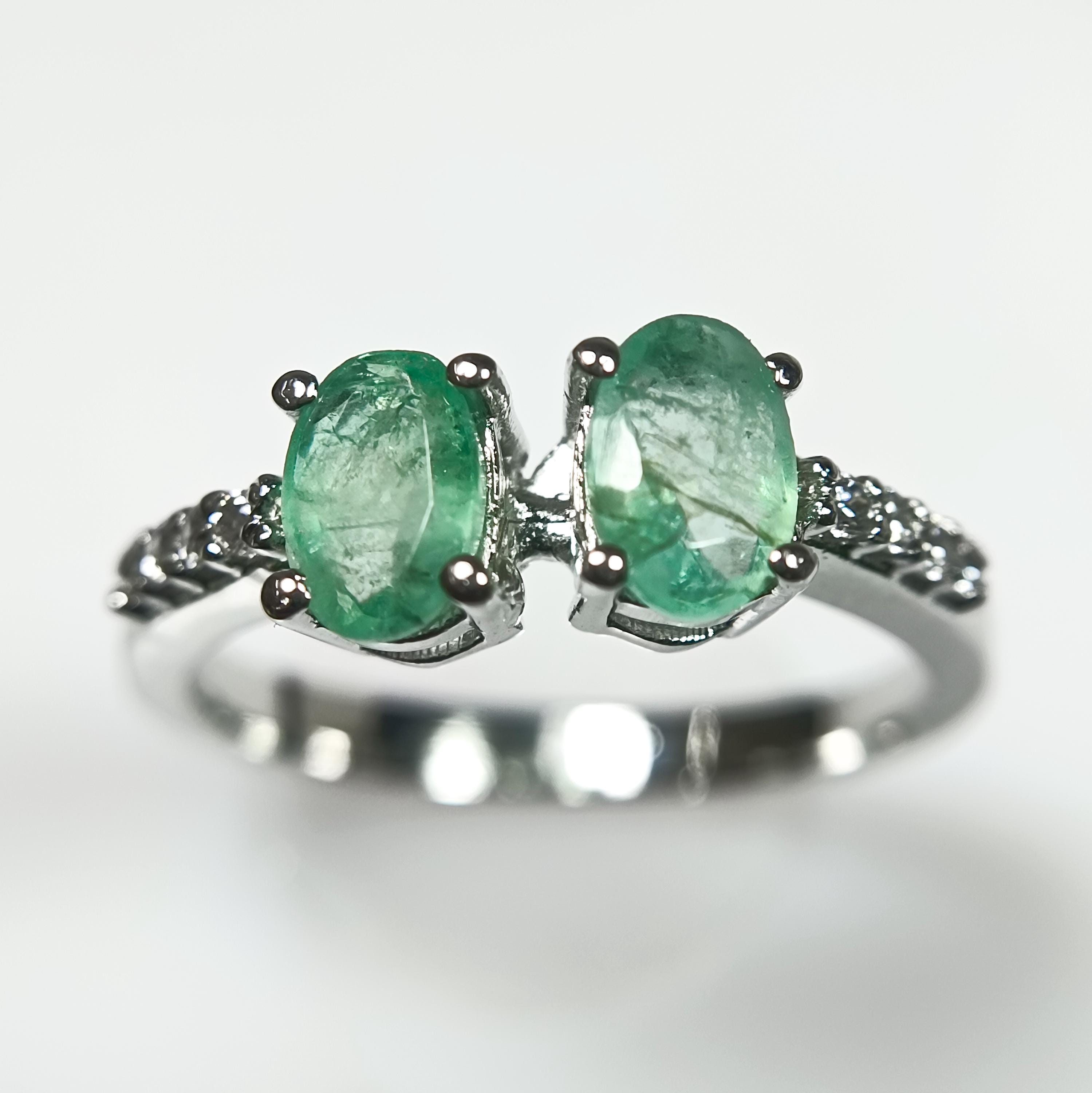 NATURAL GREEN ZAMBIAN EMERALD RING WITH STERLING SILVER