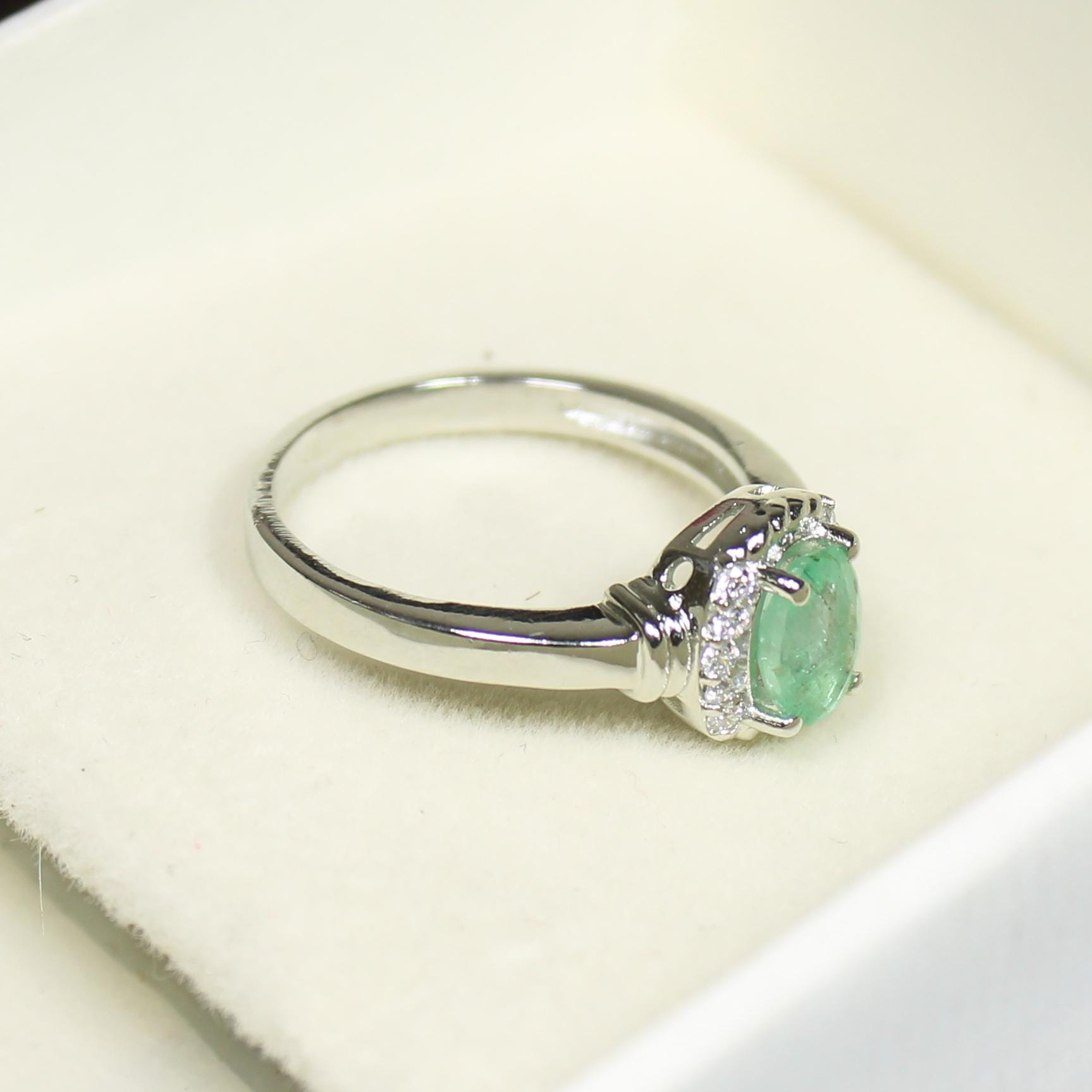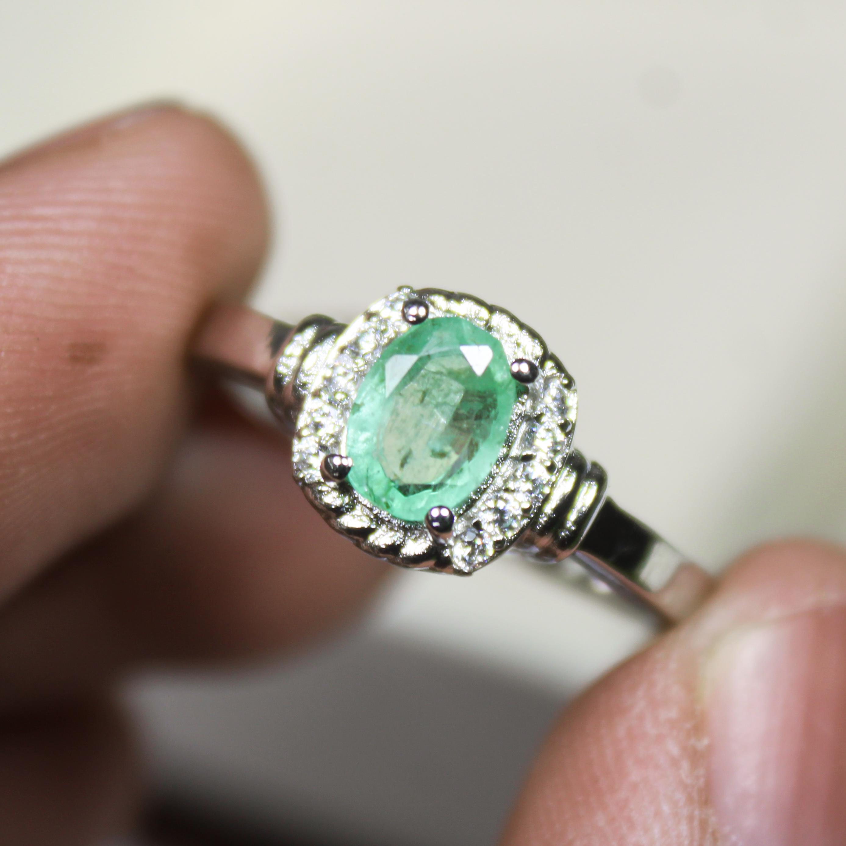 Natural Zambian Emerald Ring: Oval Cut, Sterling Silver, CZ Accents