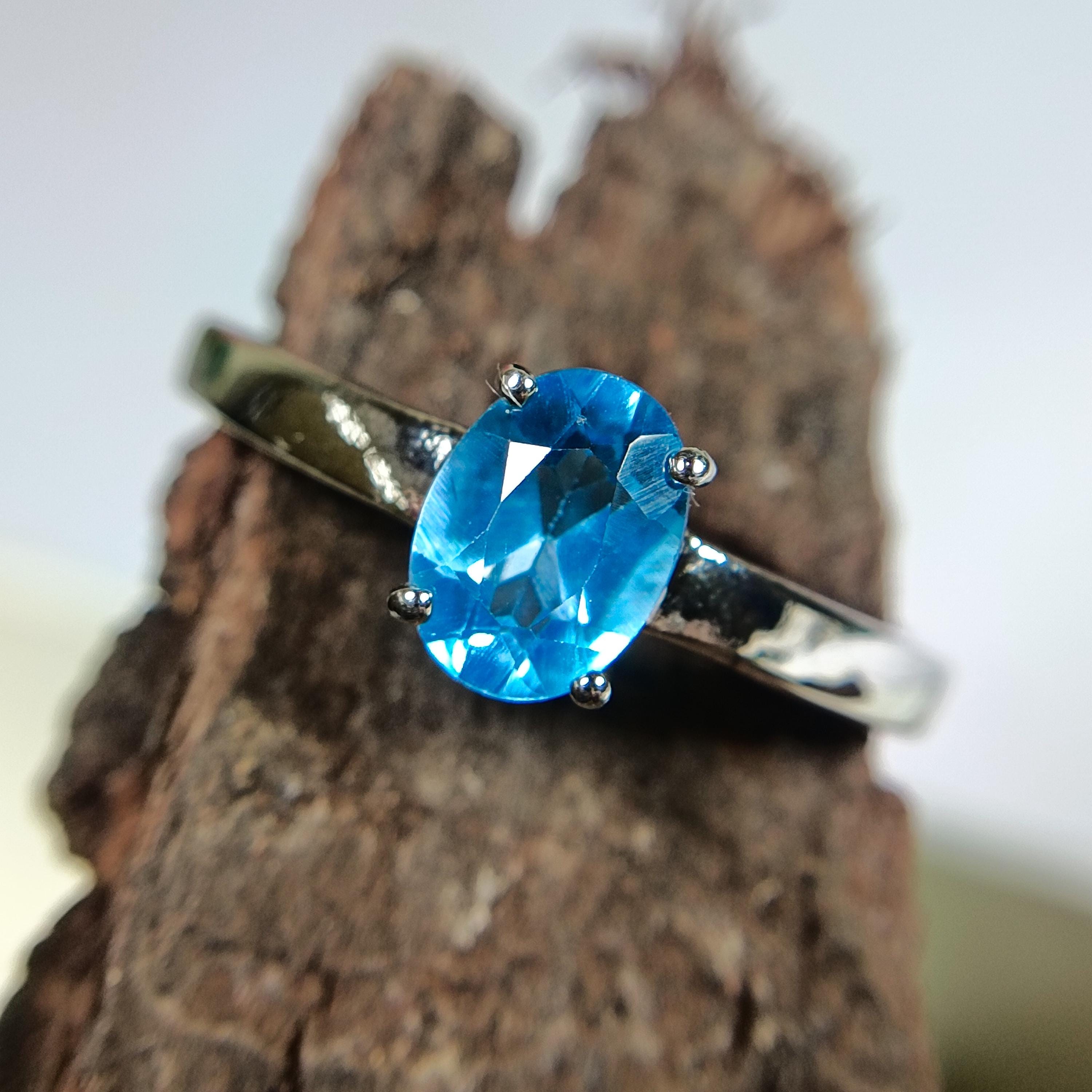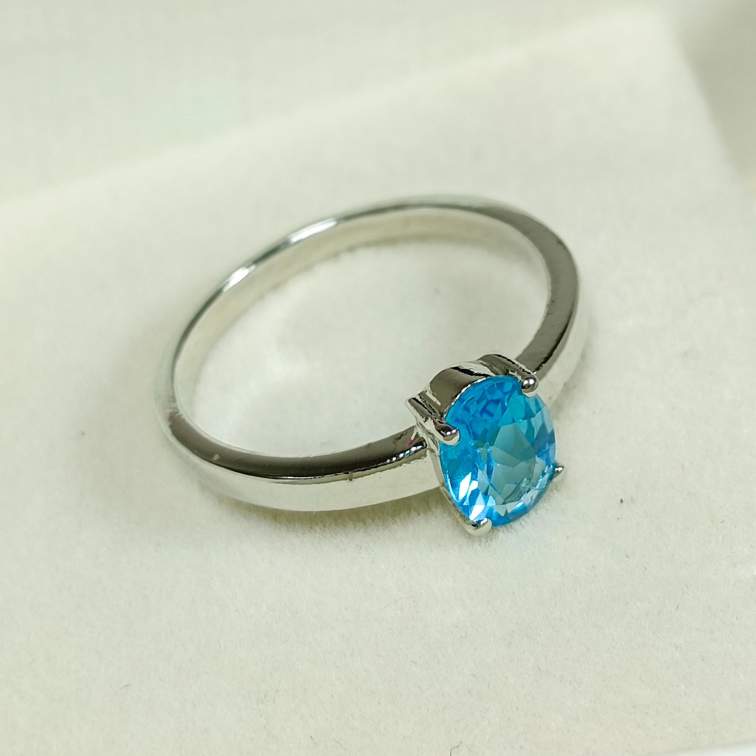 GEMSTONES ON RING - NATURAL BLUE TOPAZ
