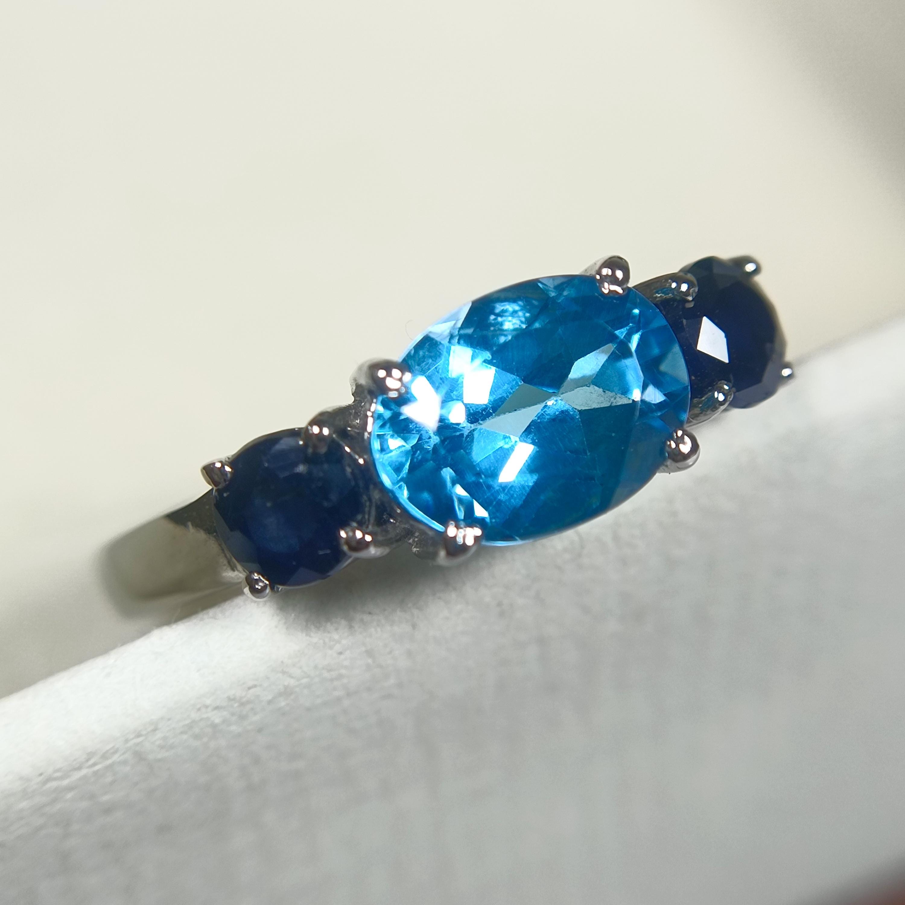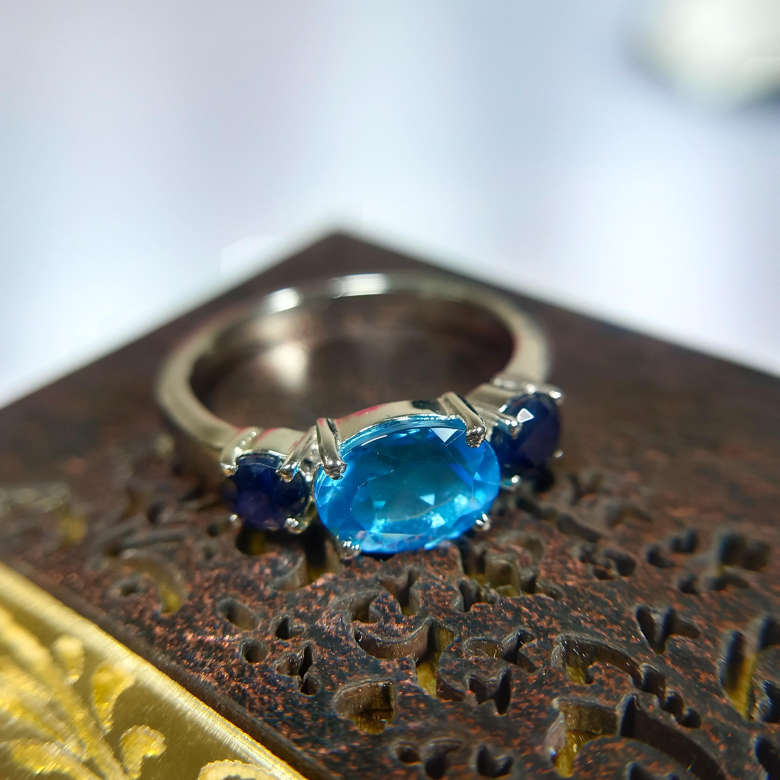 GEMSTONES ON RING - NATURAL BLUE TOPAZ