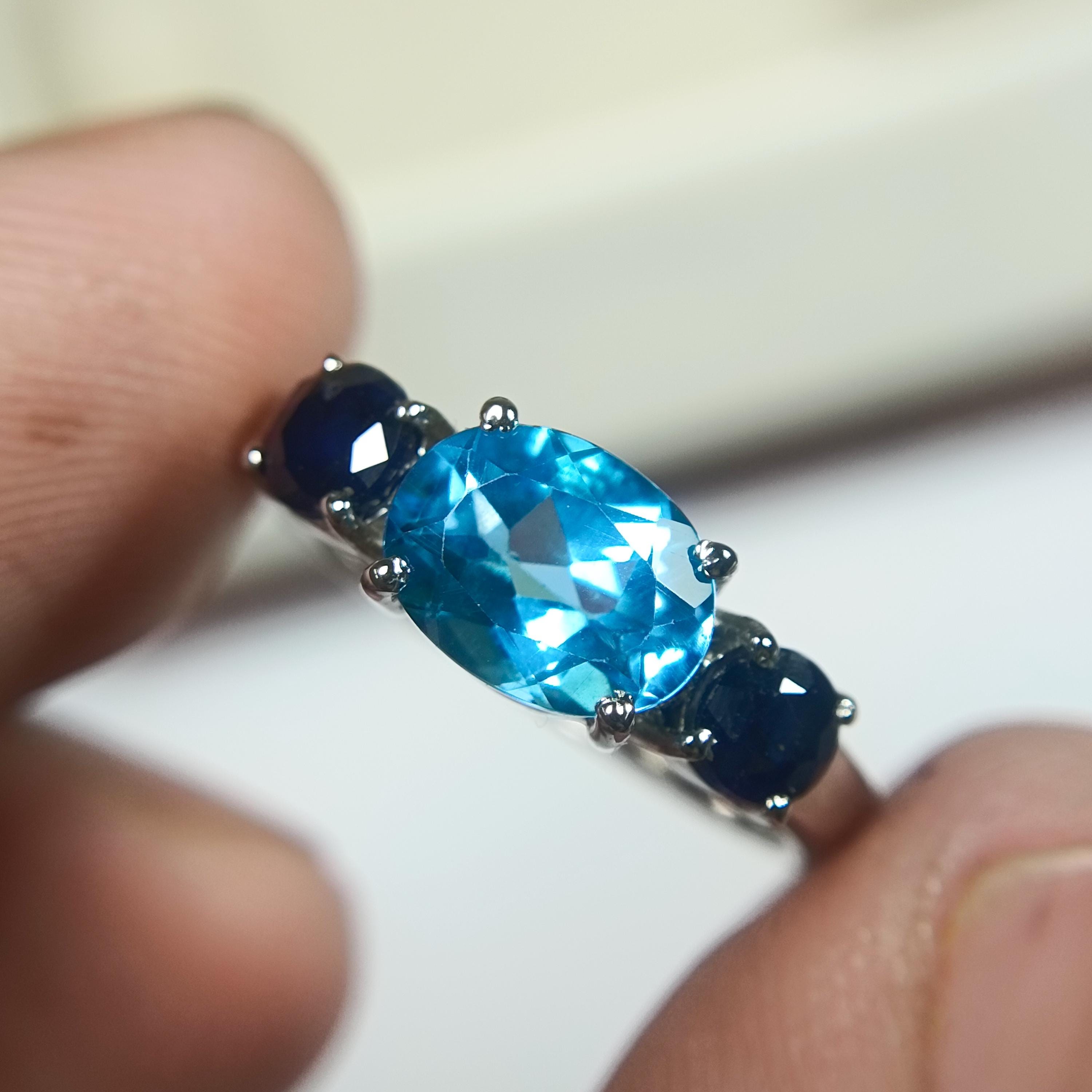 NATURAL BLUE TOPAZ RING WITH STERLING SILVER