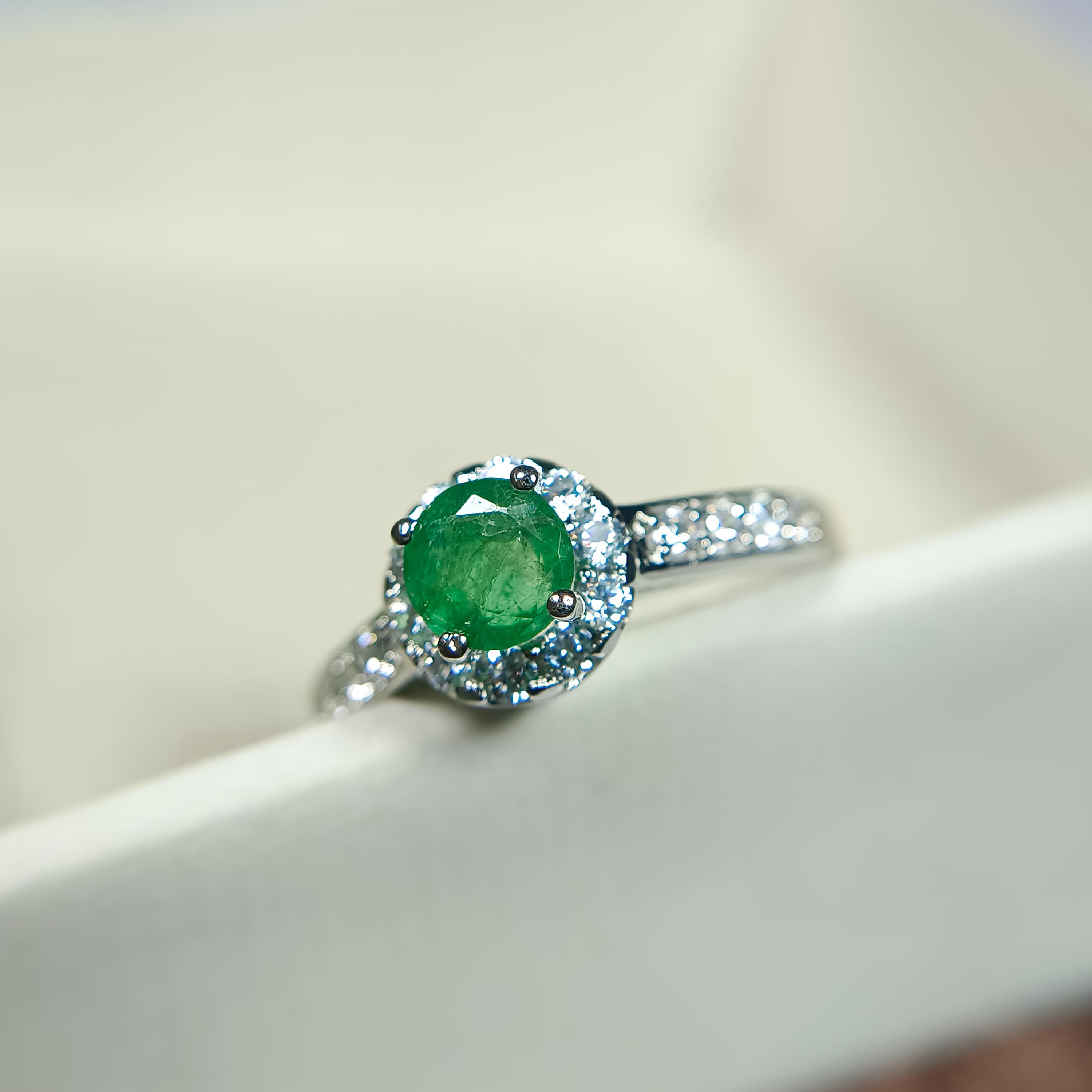 GEMSTONES ON RING - NATURAL GREEN ZAMBIAN EMERALD