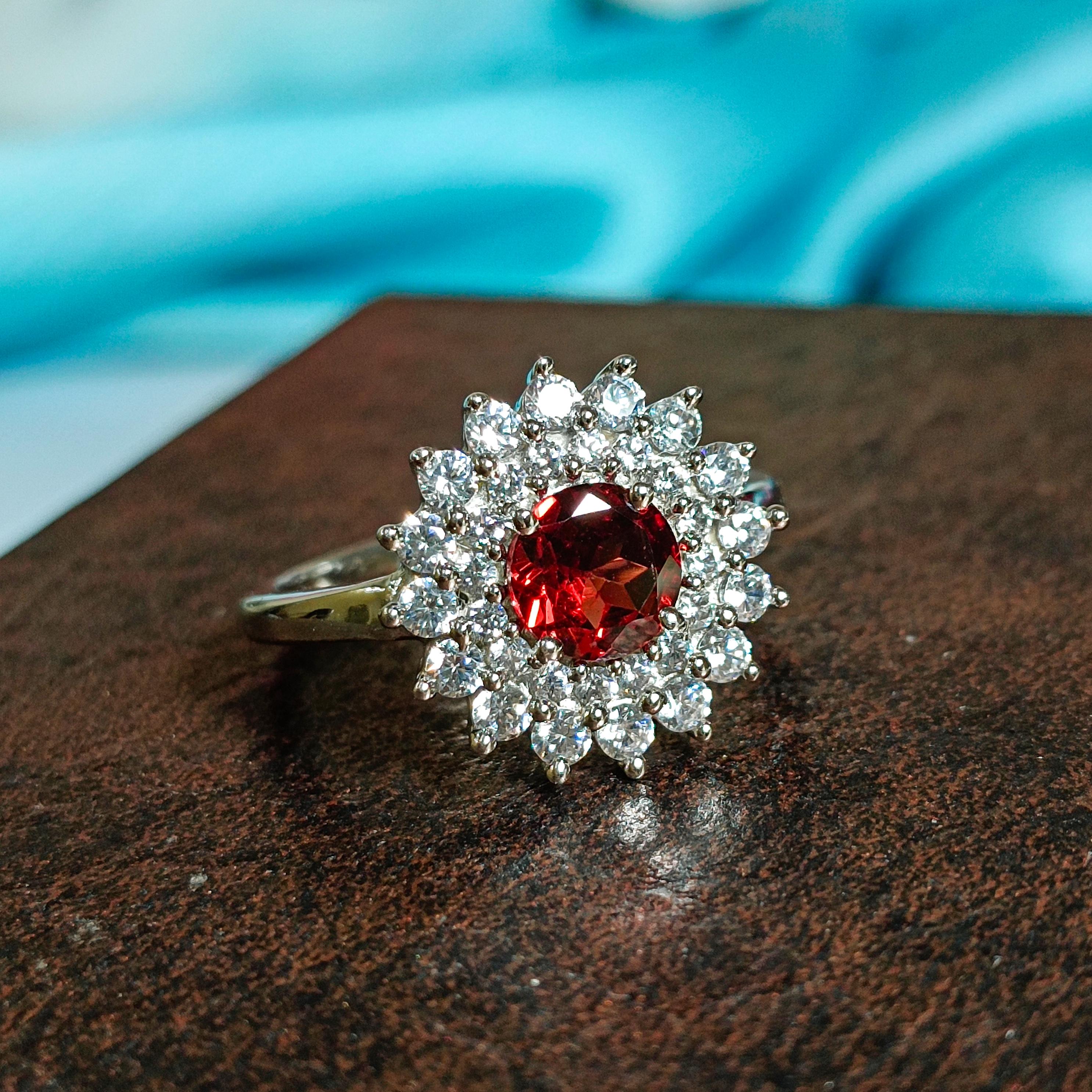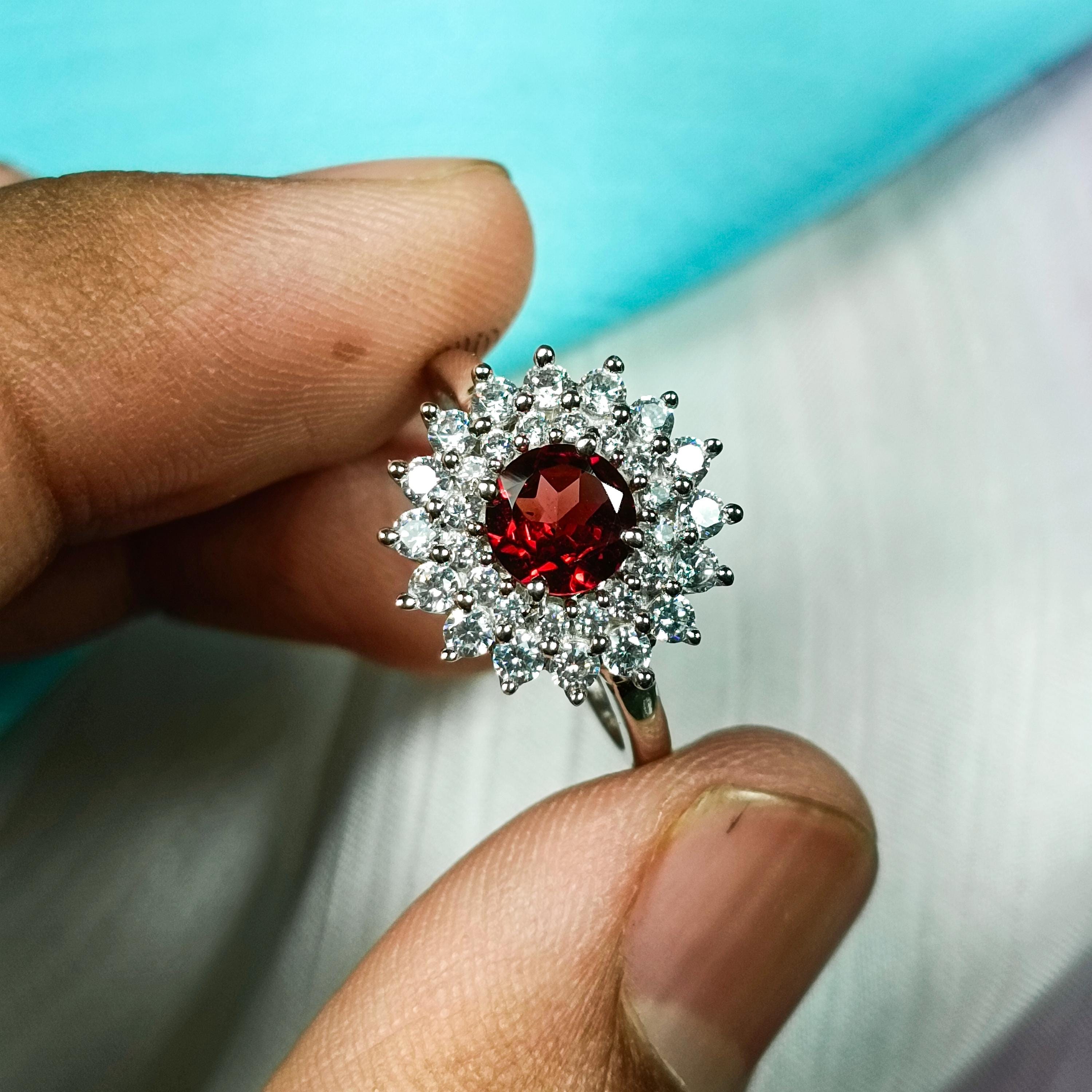 NATURAL RED GARNET EMERALD RING WITH STERLING SILVER