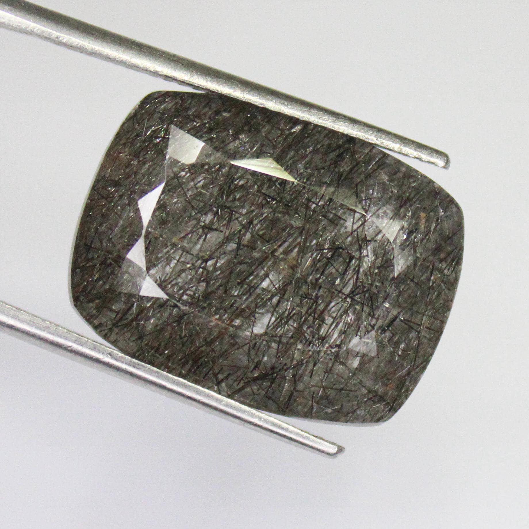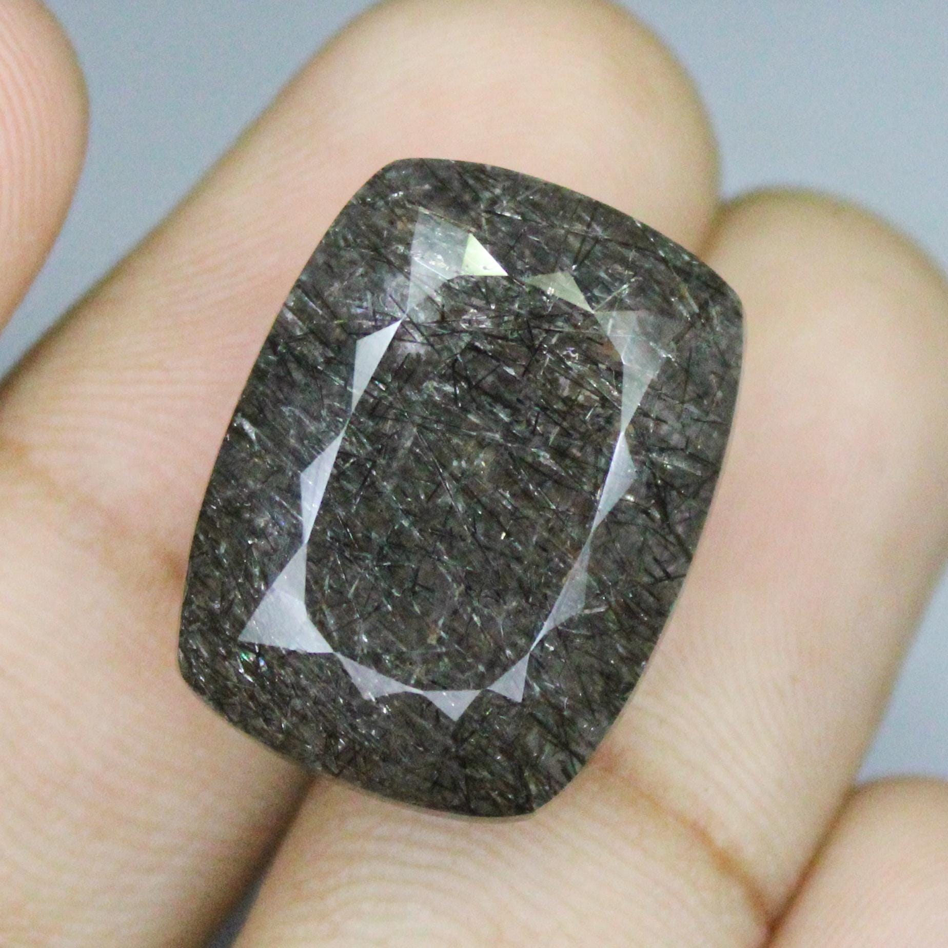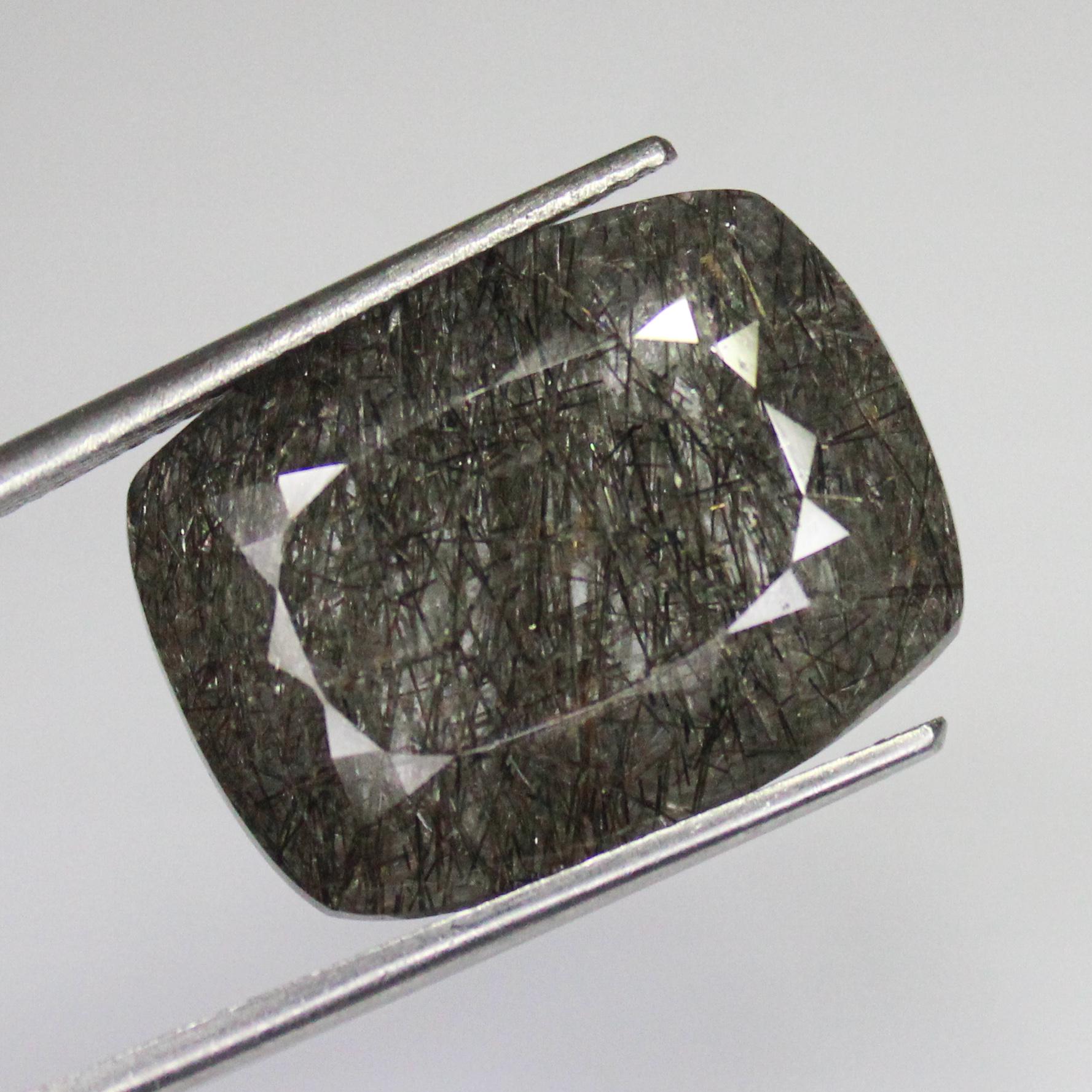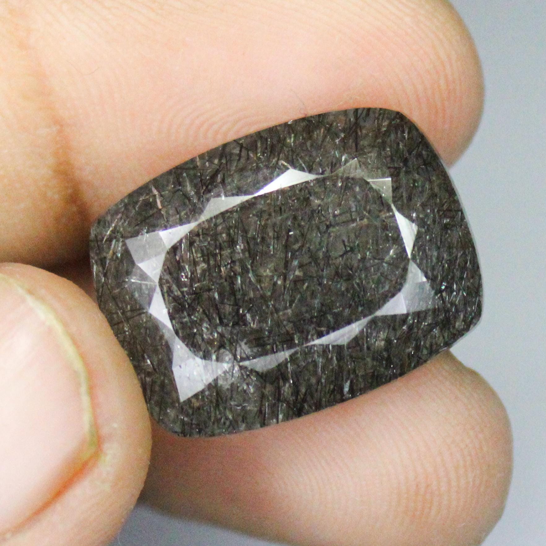 GEMSTONE - NATURAL FACETED BLACK RUTILE QUARTZ
