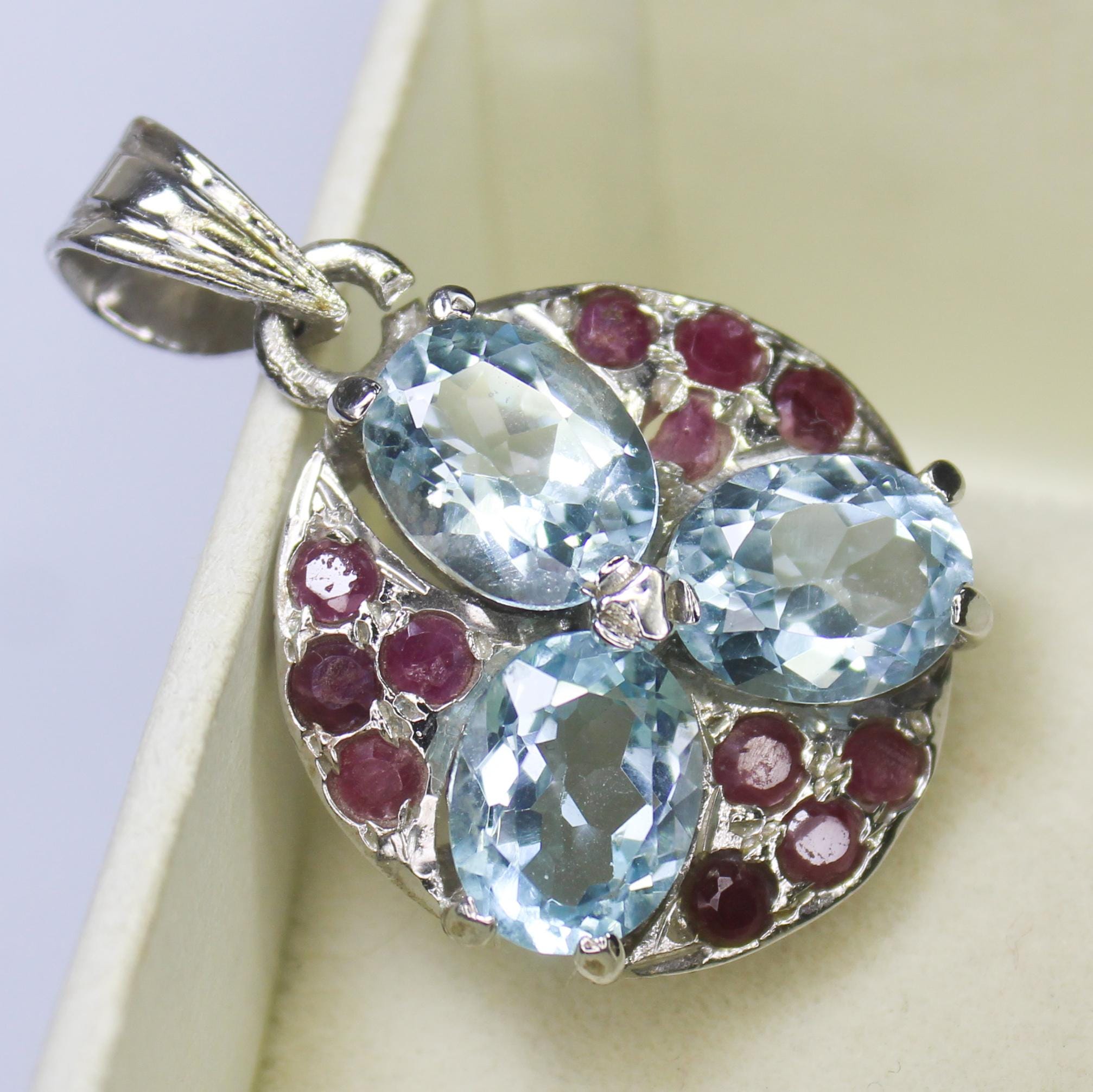 NATURAL SWISS BLUE TOPAZ PENDANT WITH STERLING SILVER