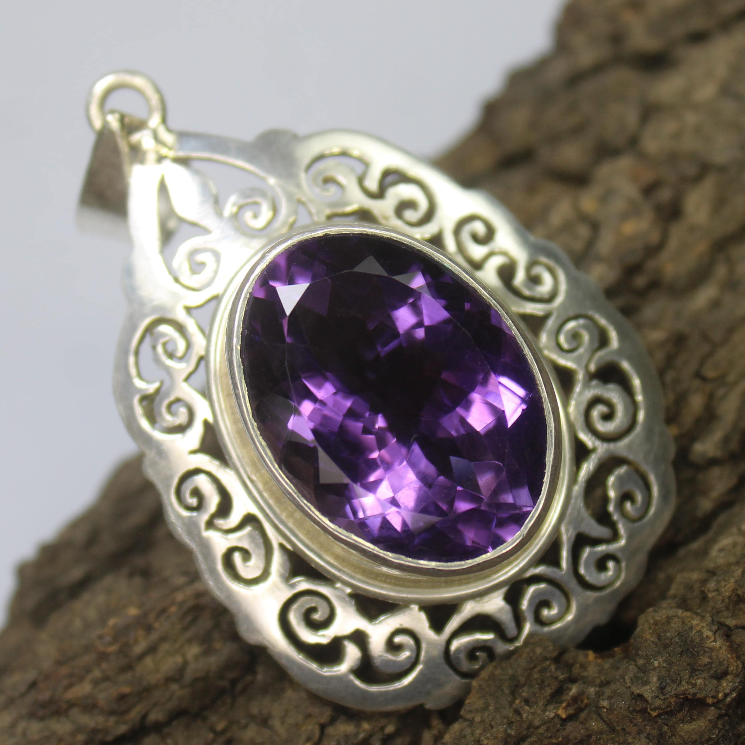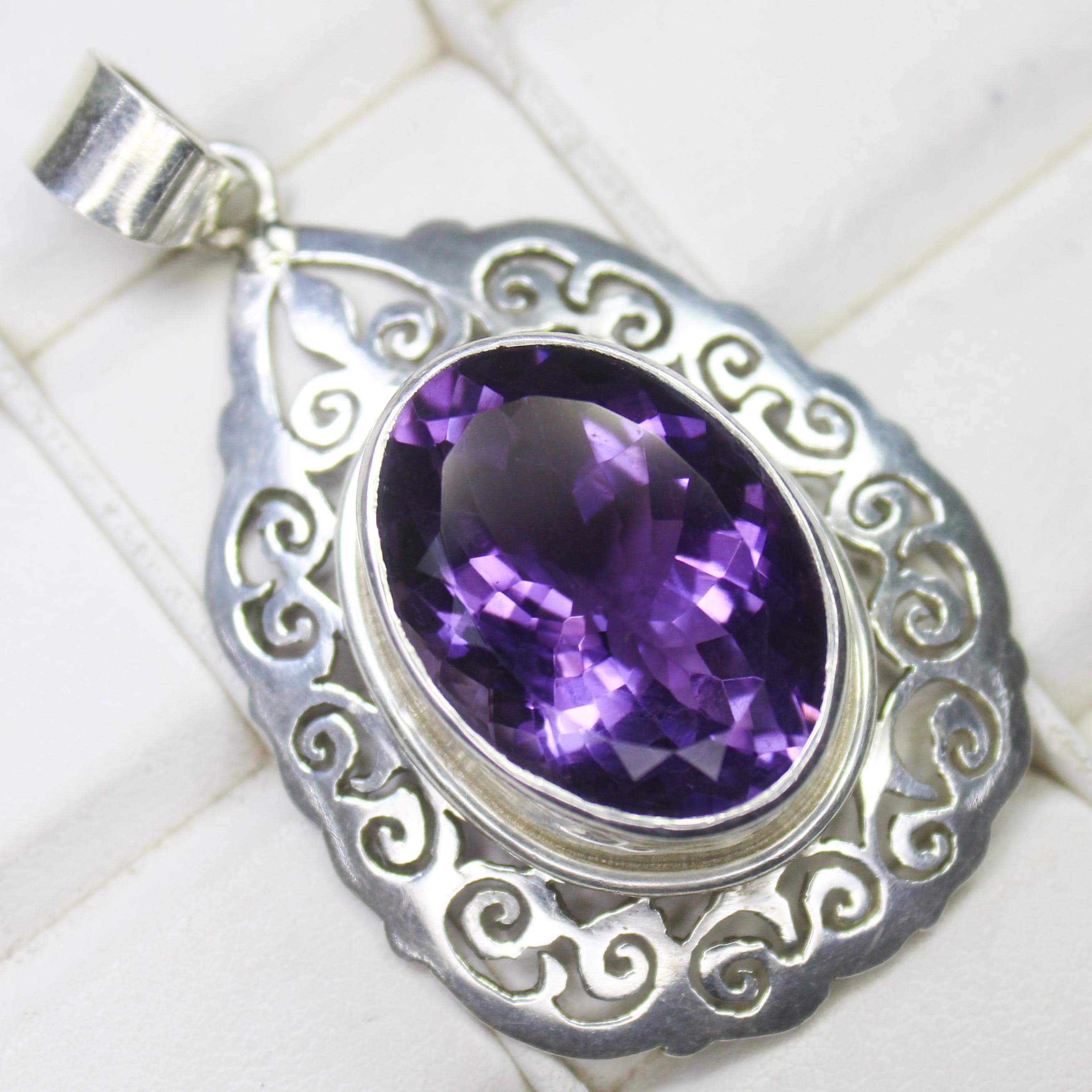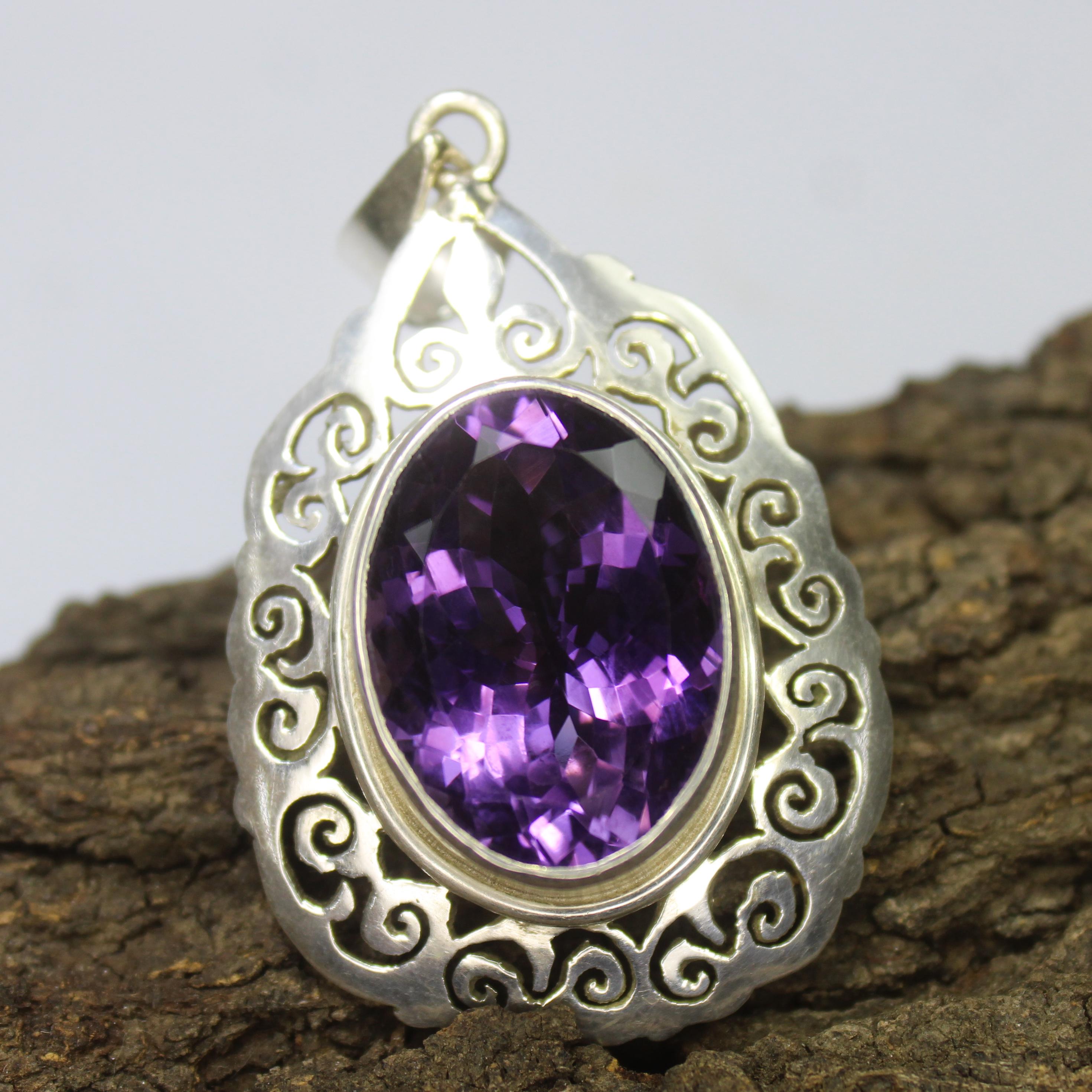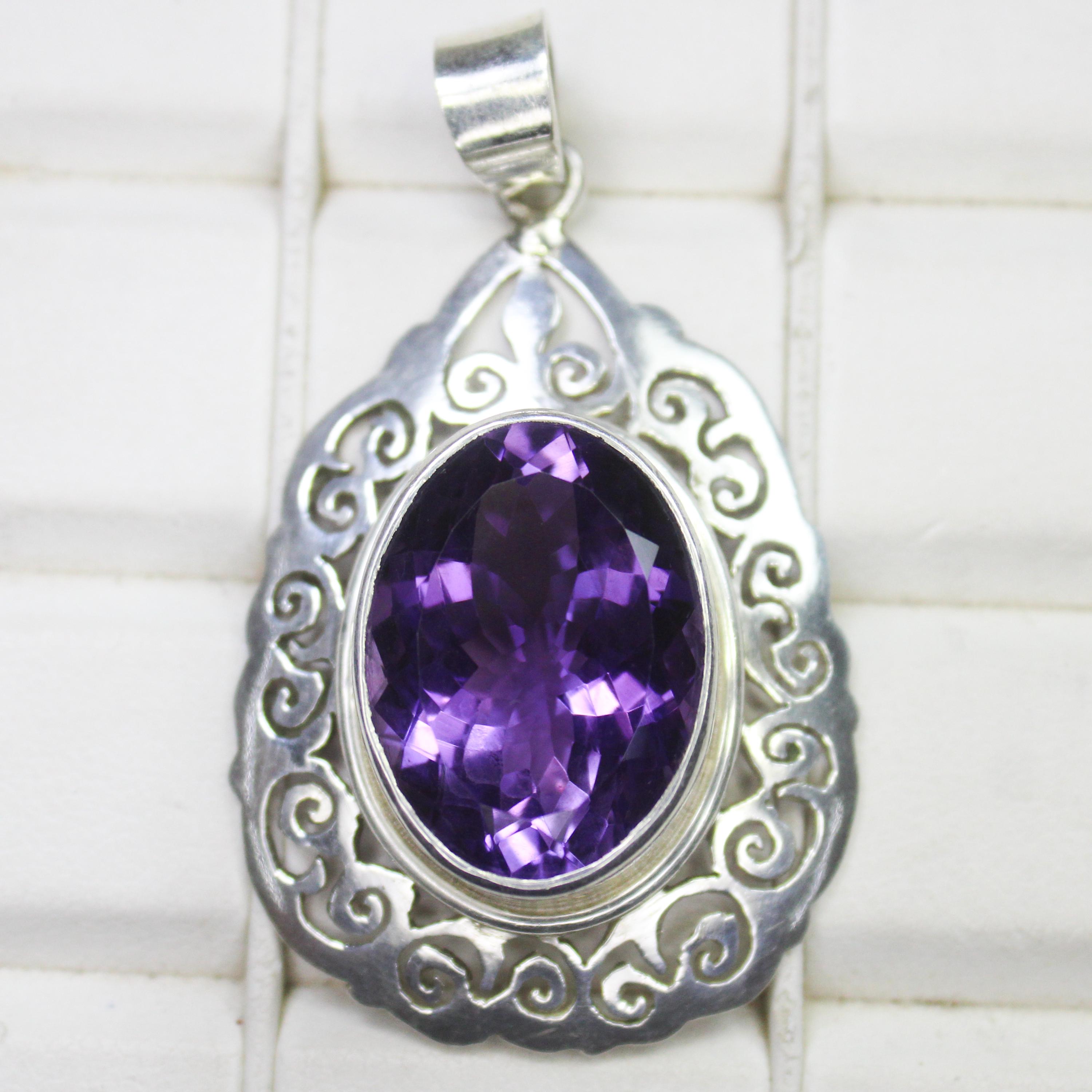 NATURAL PURPLE AMETHYST PENDANT WITH STERLING SILVER
