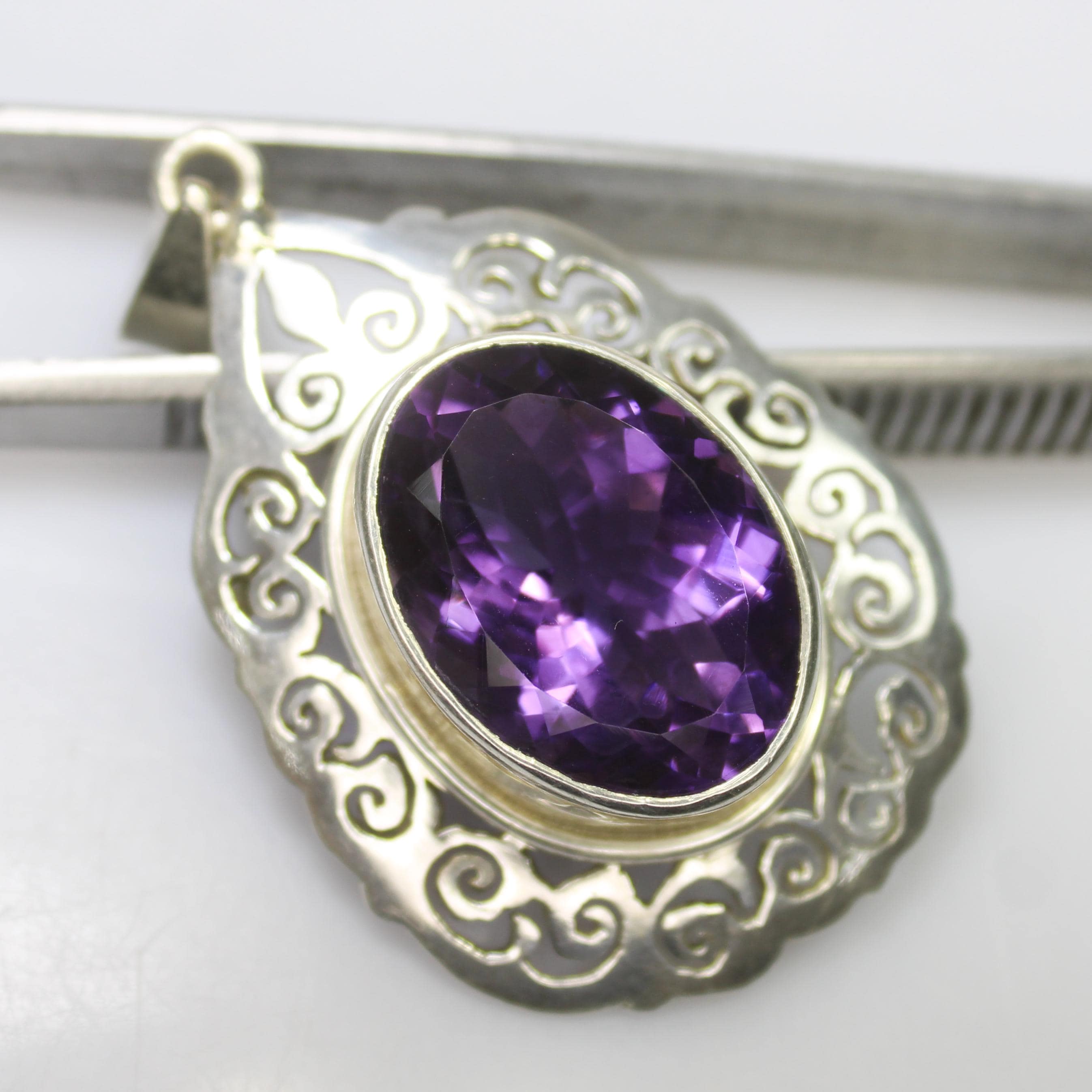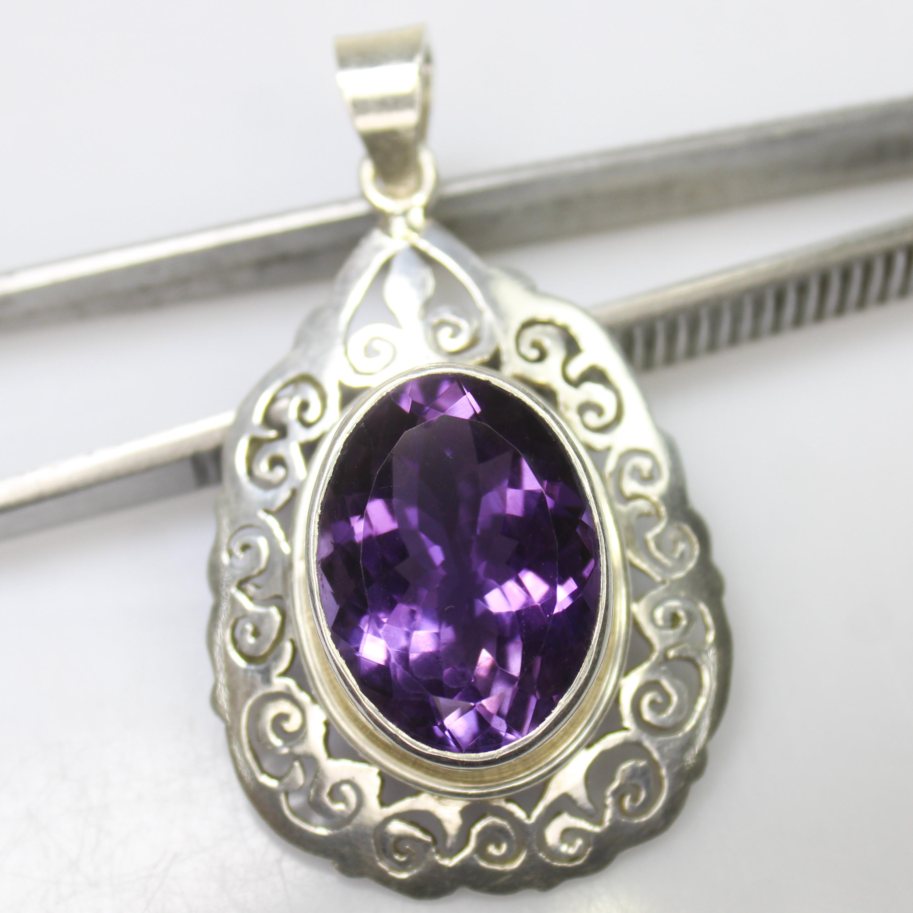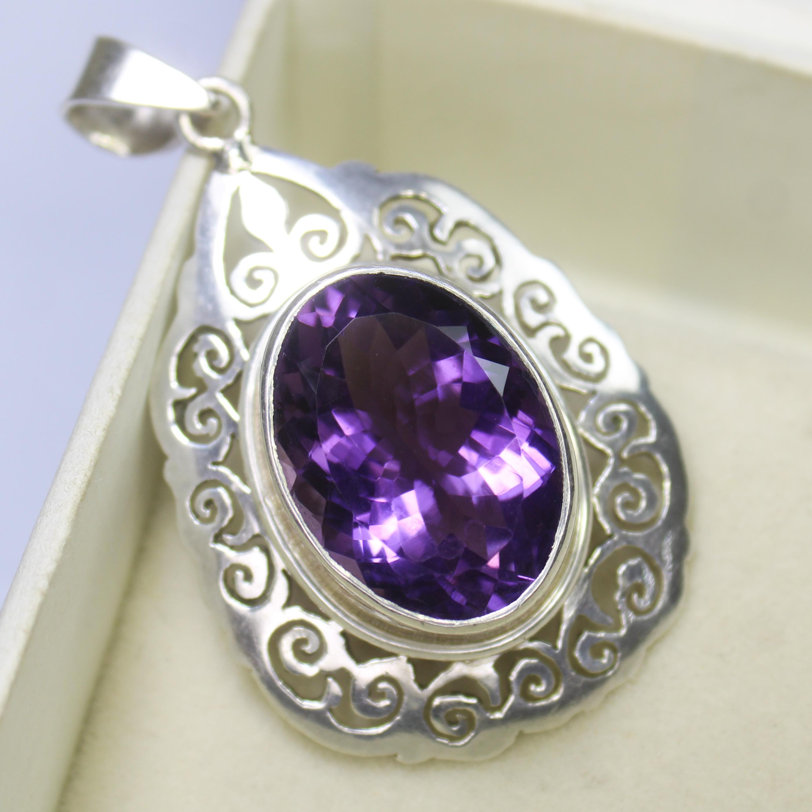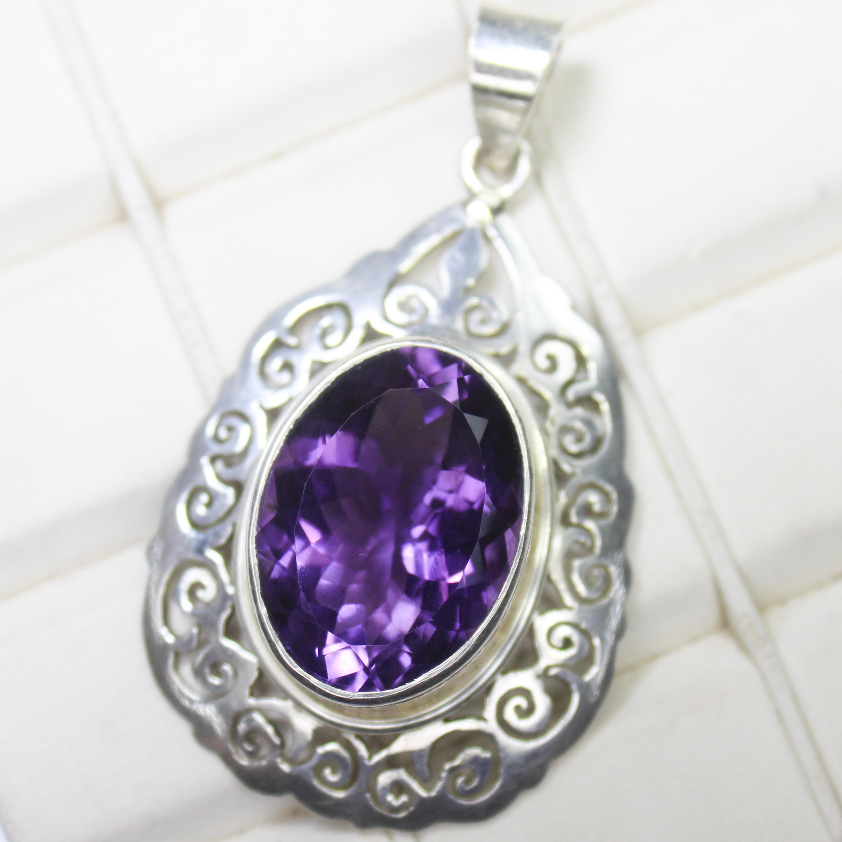 NATURAL PURPLE AMETHYST PENDANT WITH STERLING SILVER