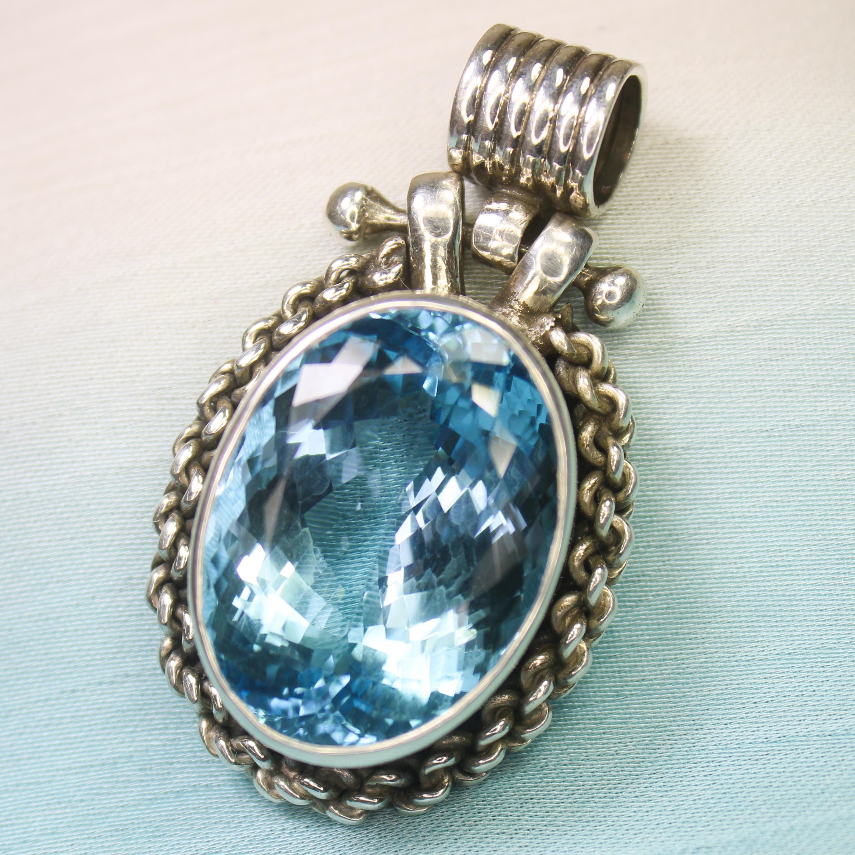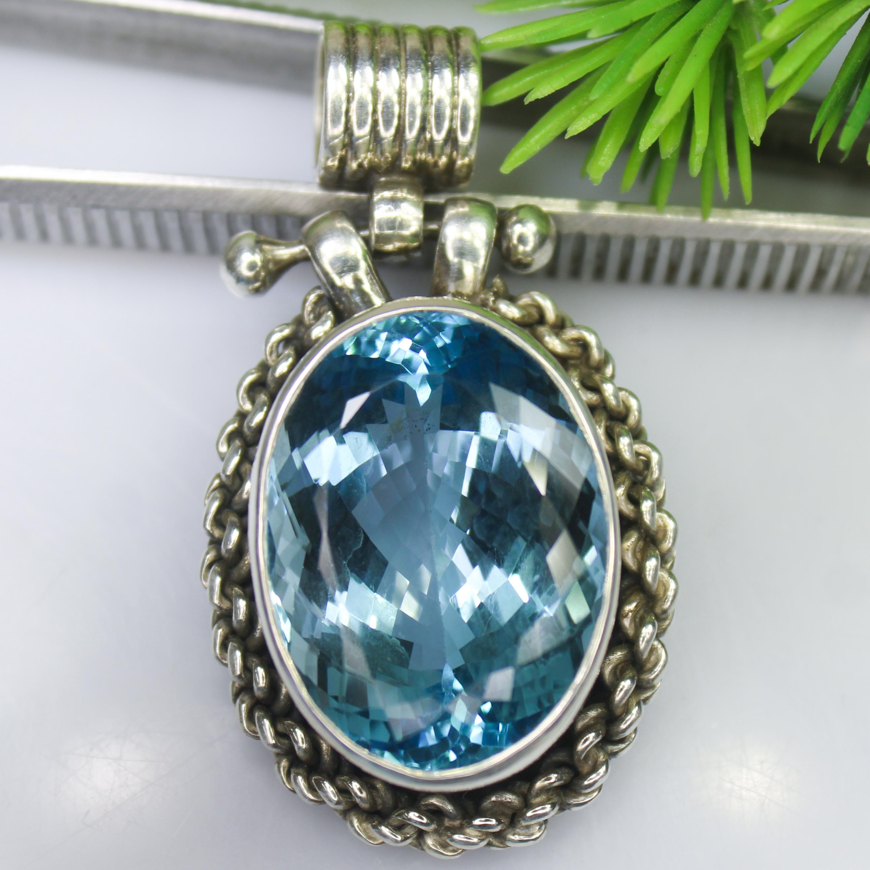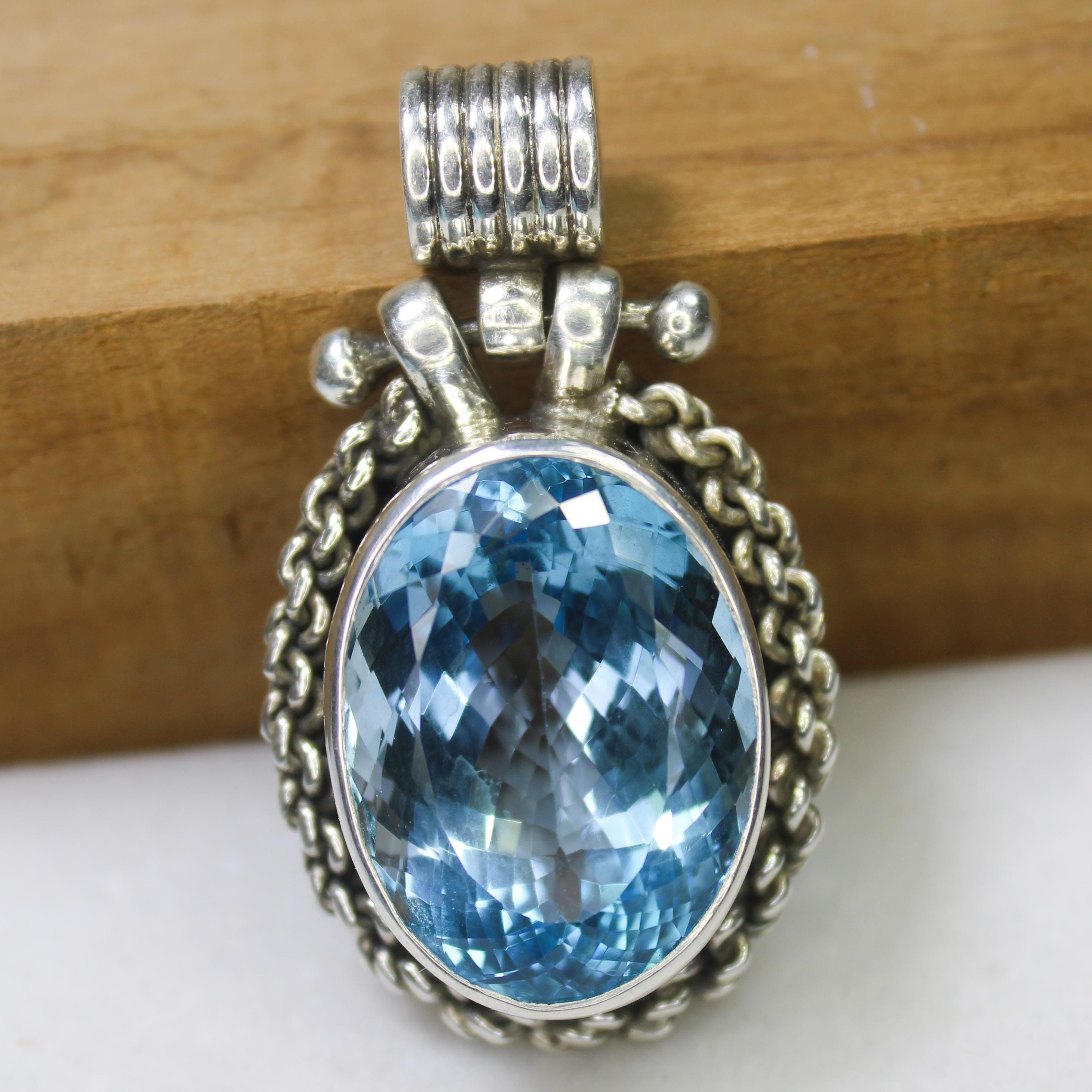 NATURAL SWISS BLUE TOPAZ PENDANT WITH STERLING SILVER