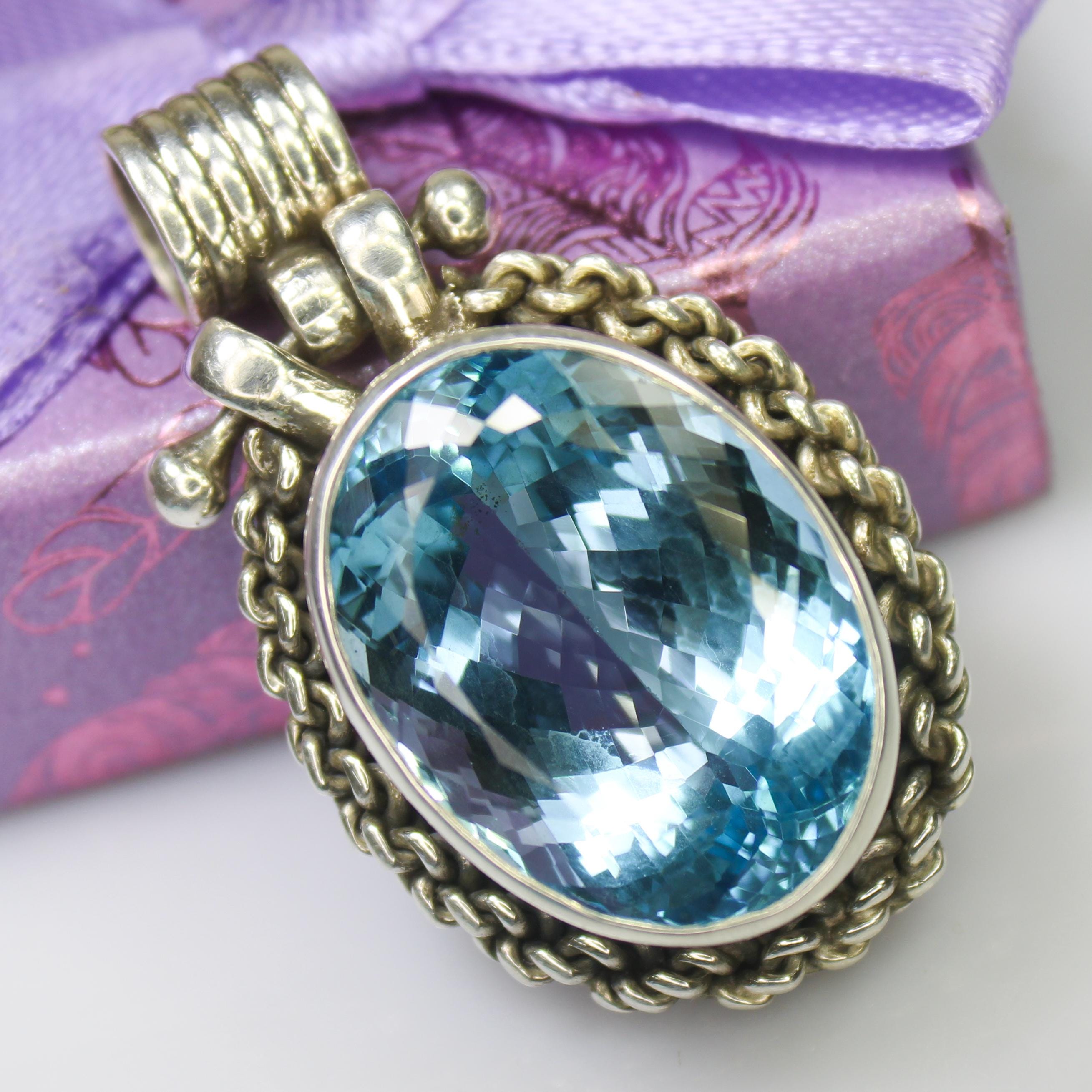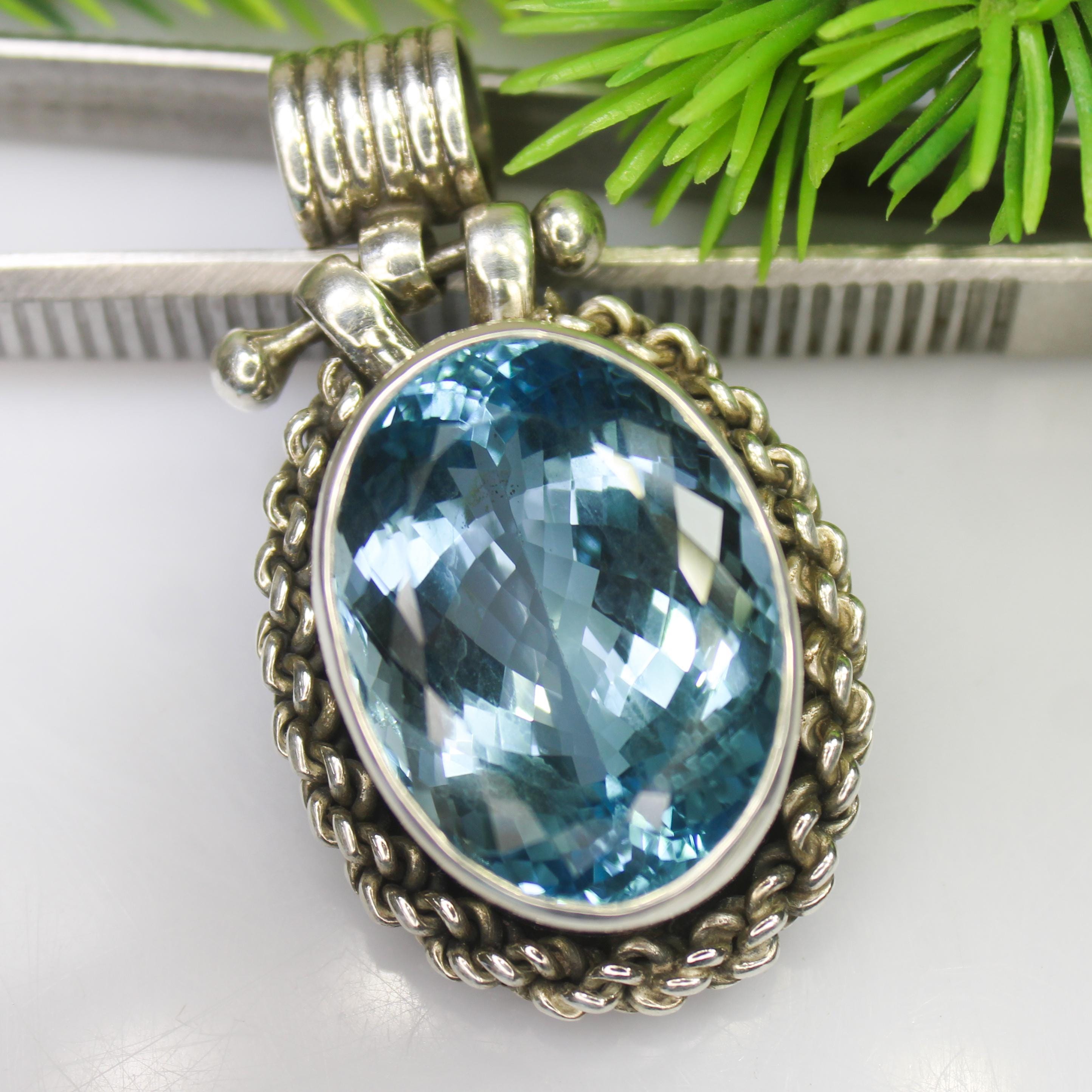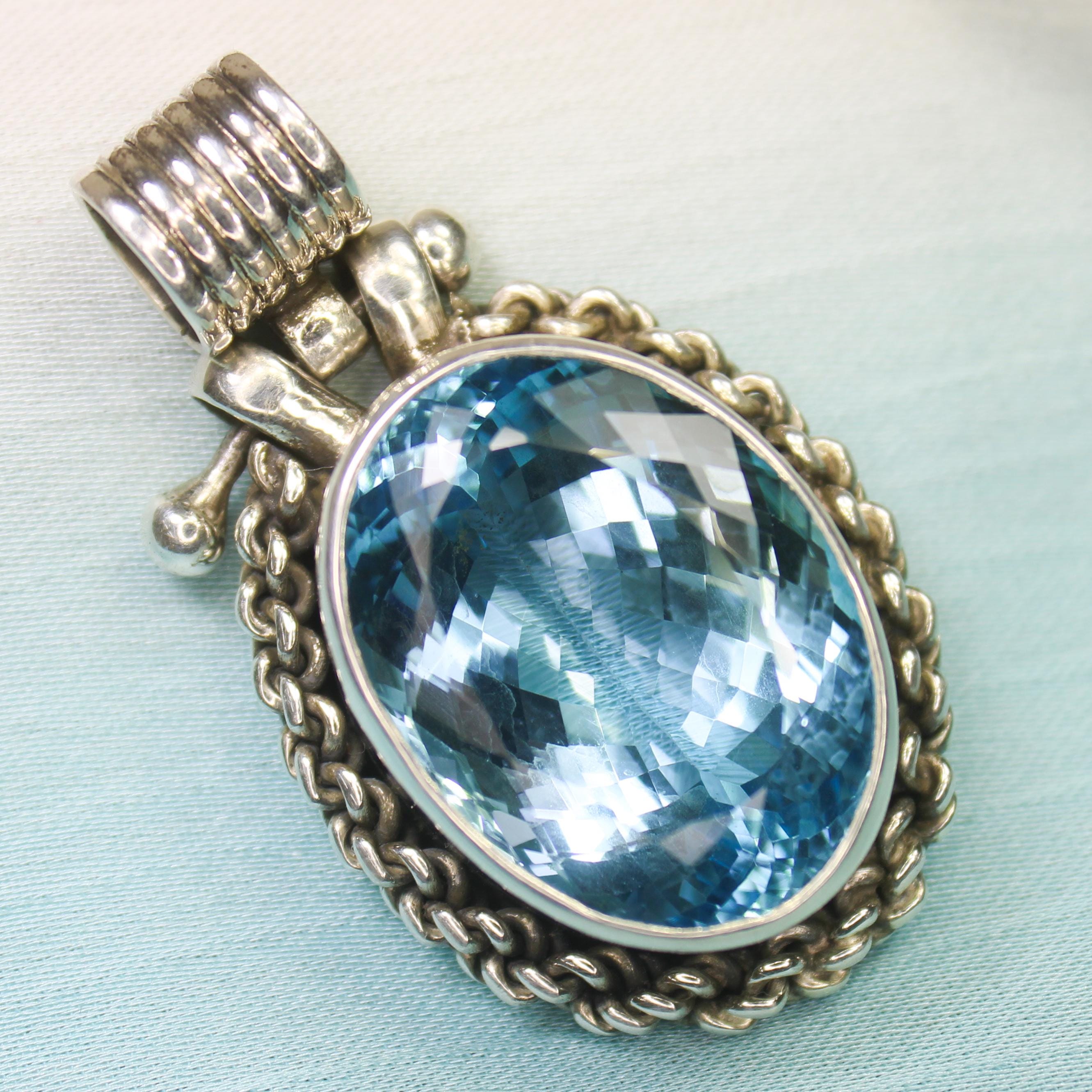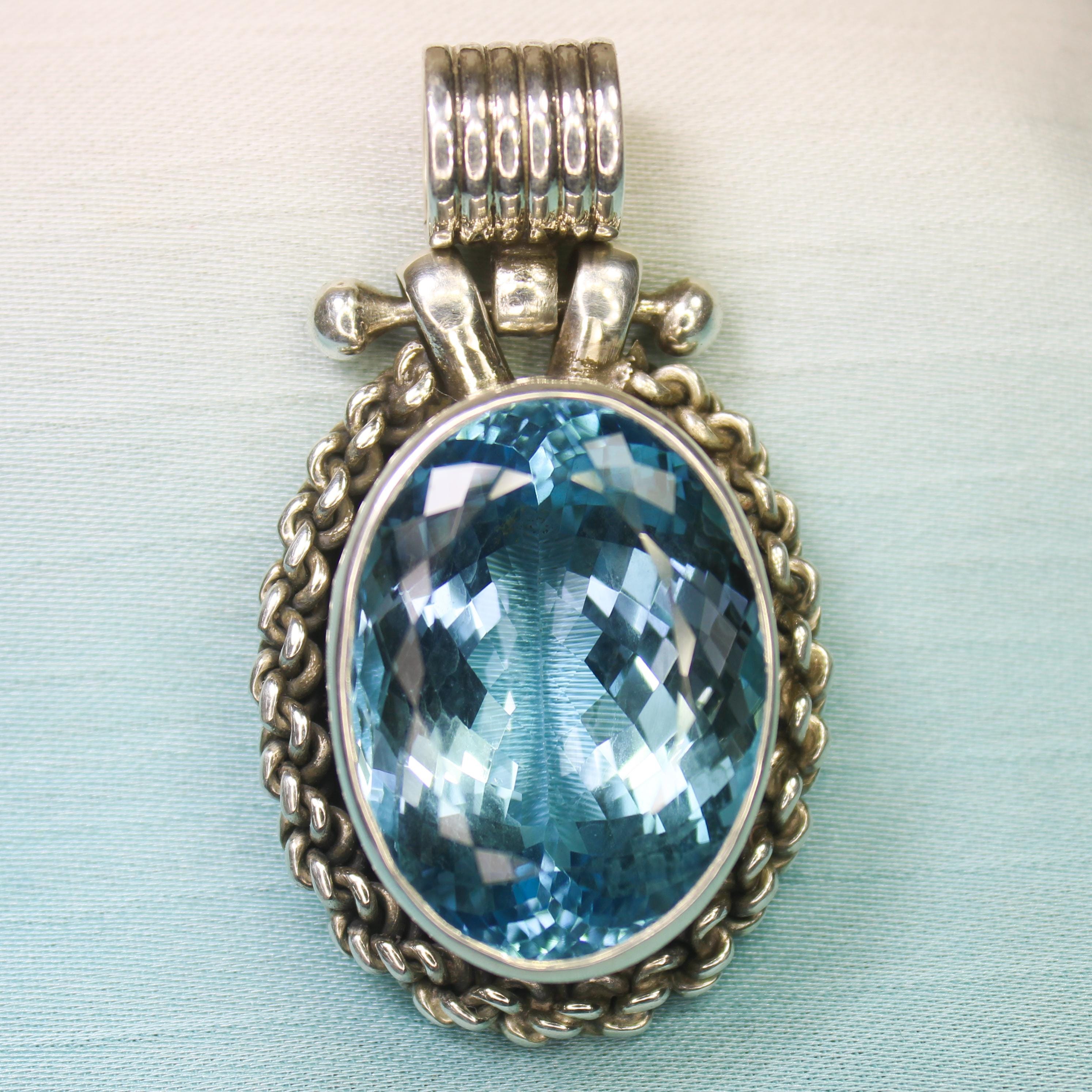 NATURAL SWISS BLUE TOPAZ PENDANT WITH STERLING SILVER