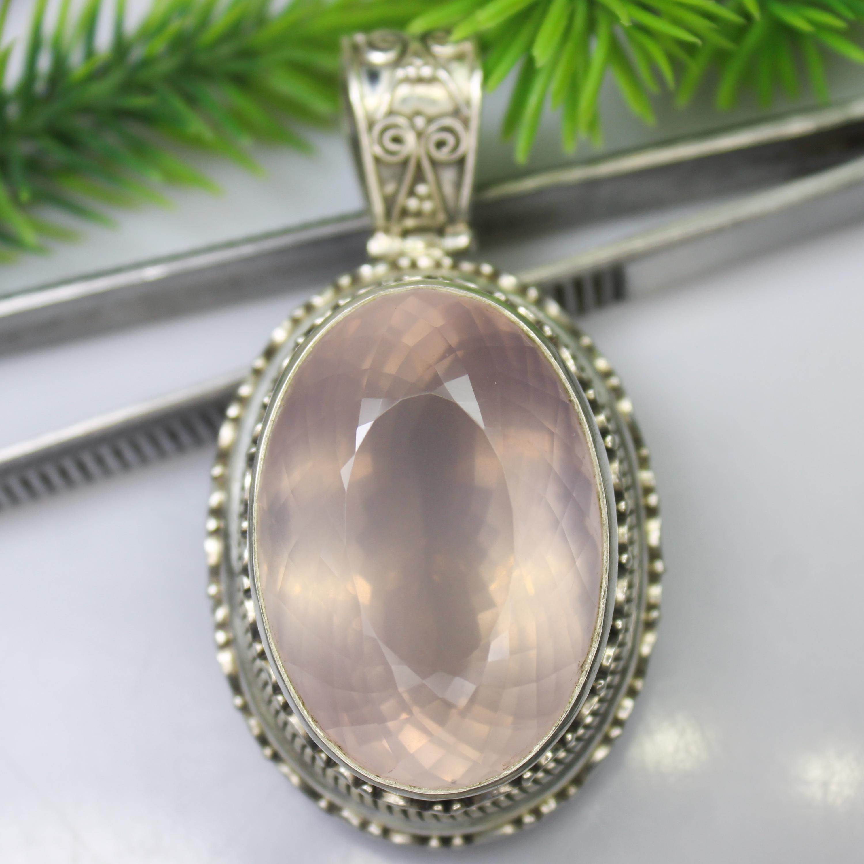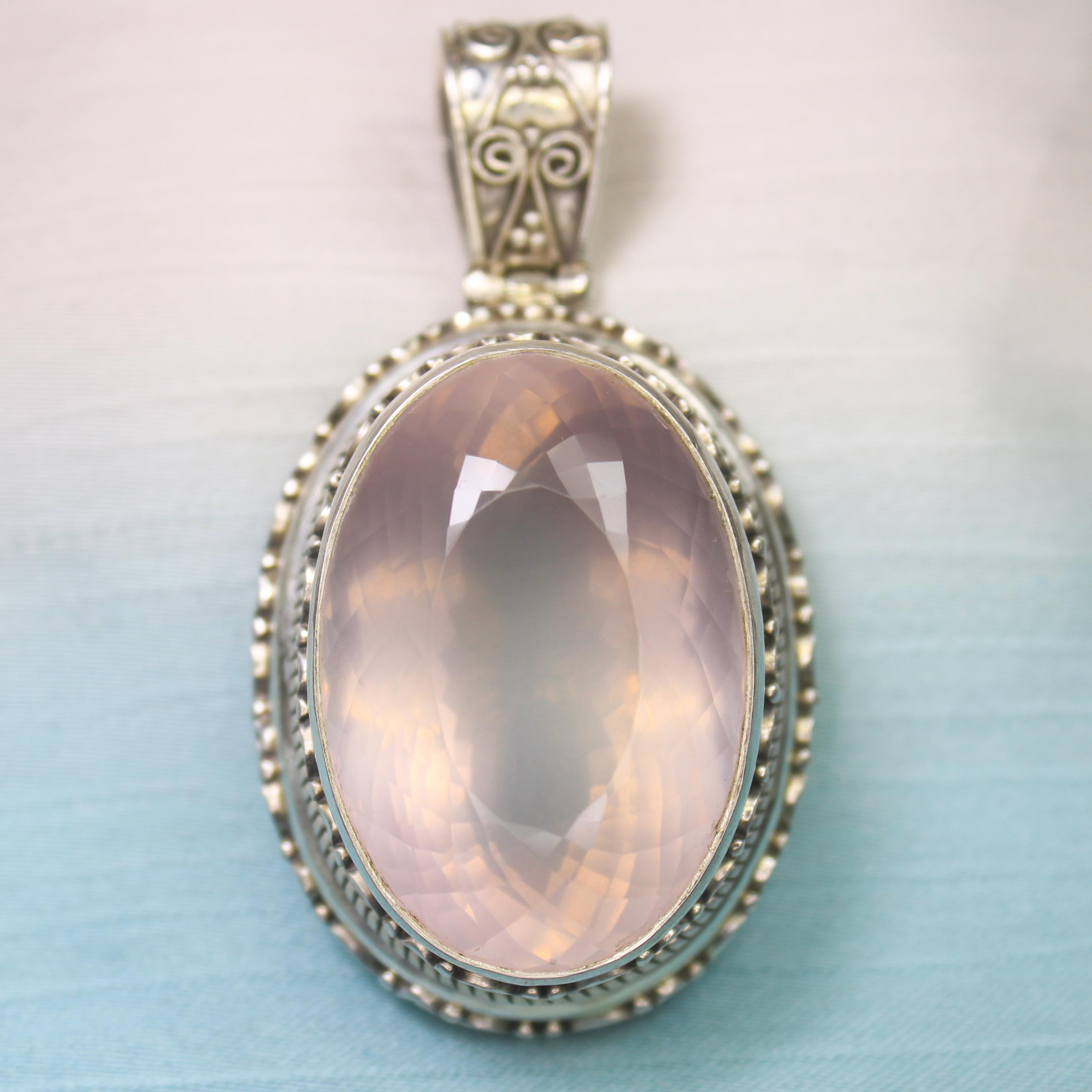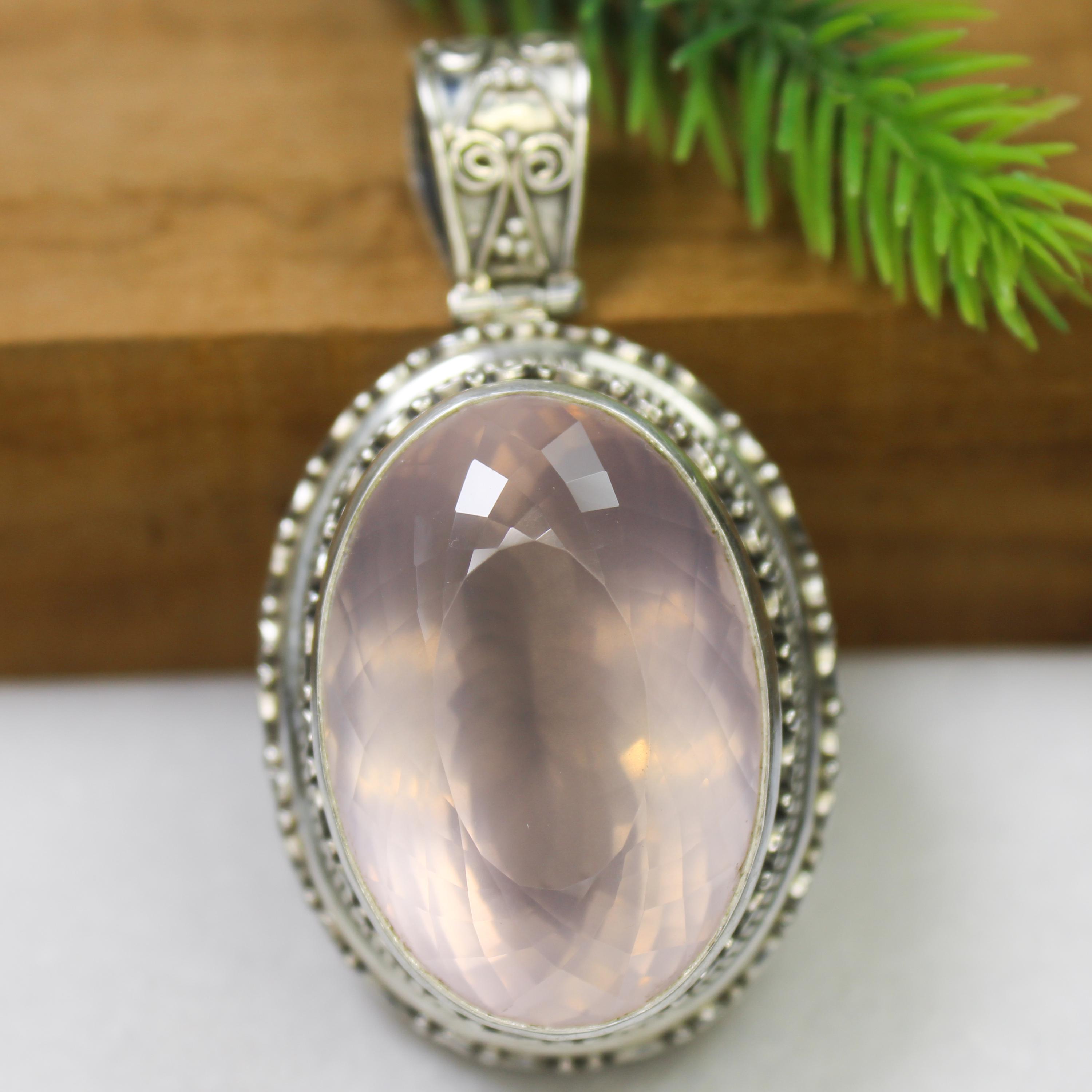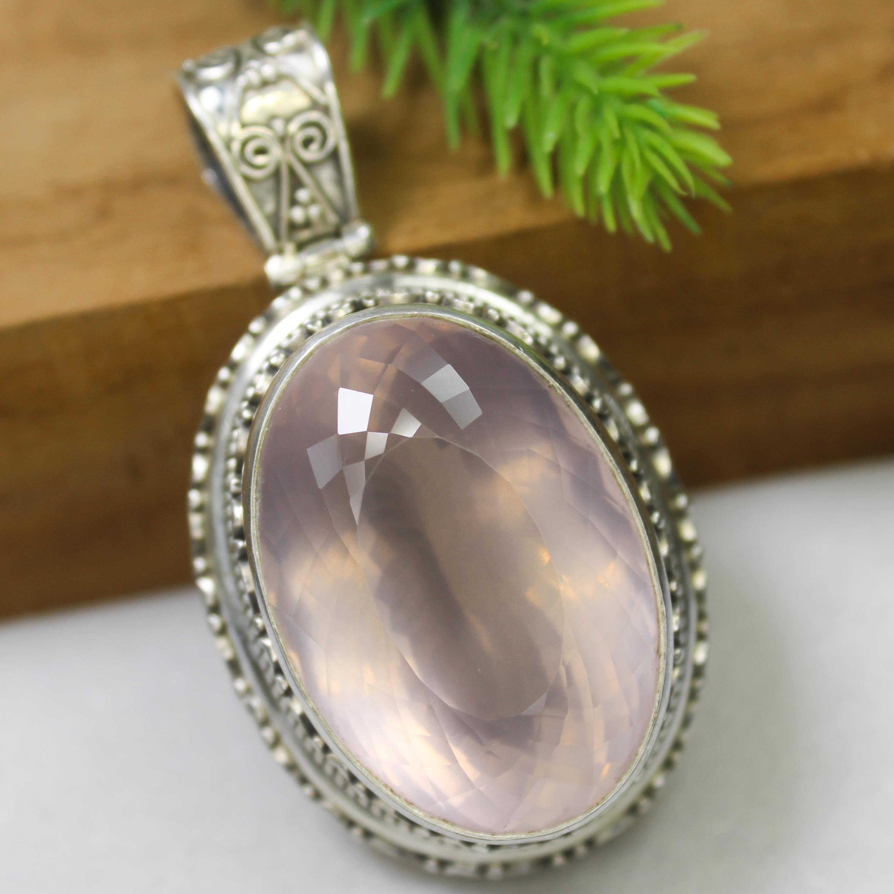 NATURAL PINK ROSE QUARTZ PENDANT WITH STERLING SILVER