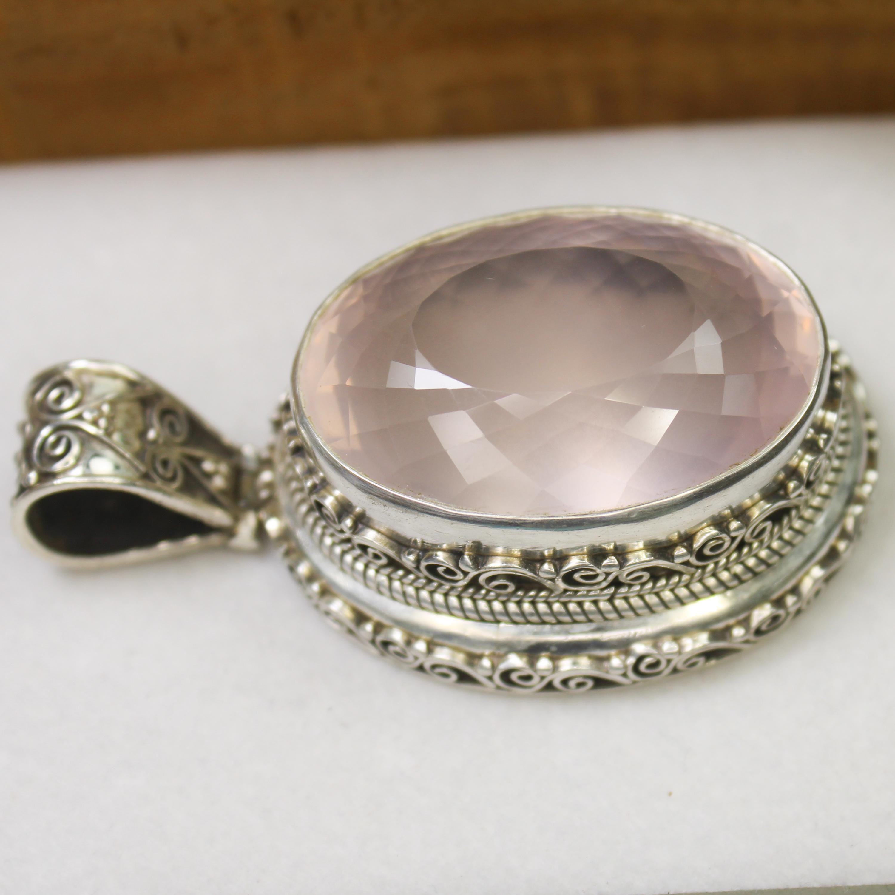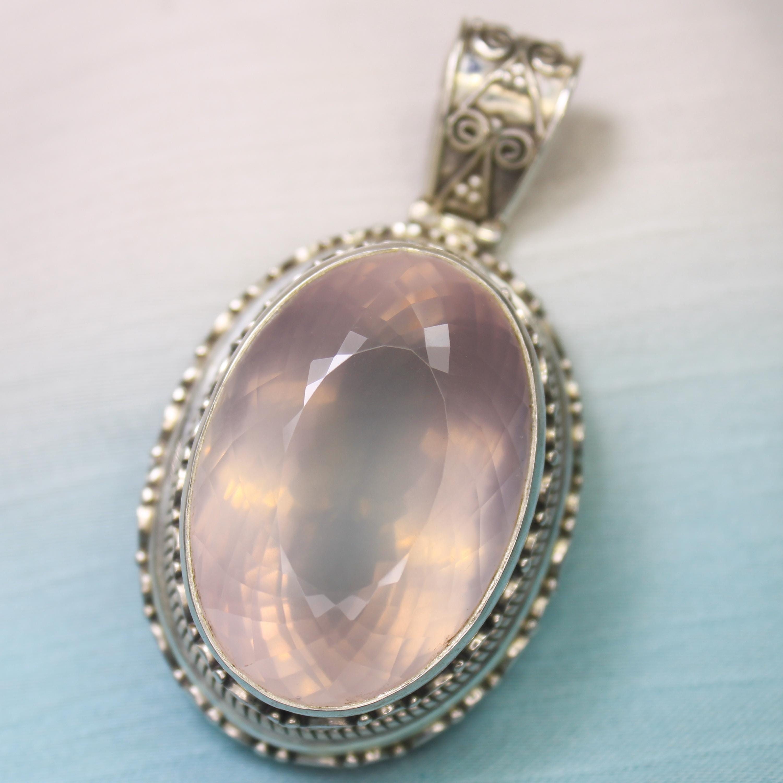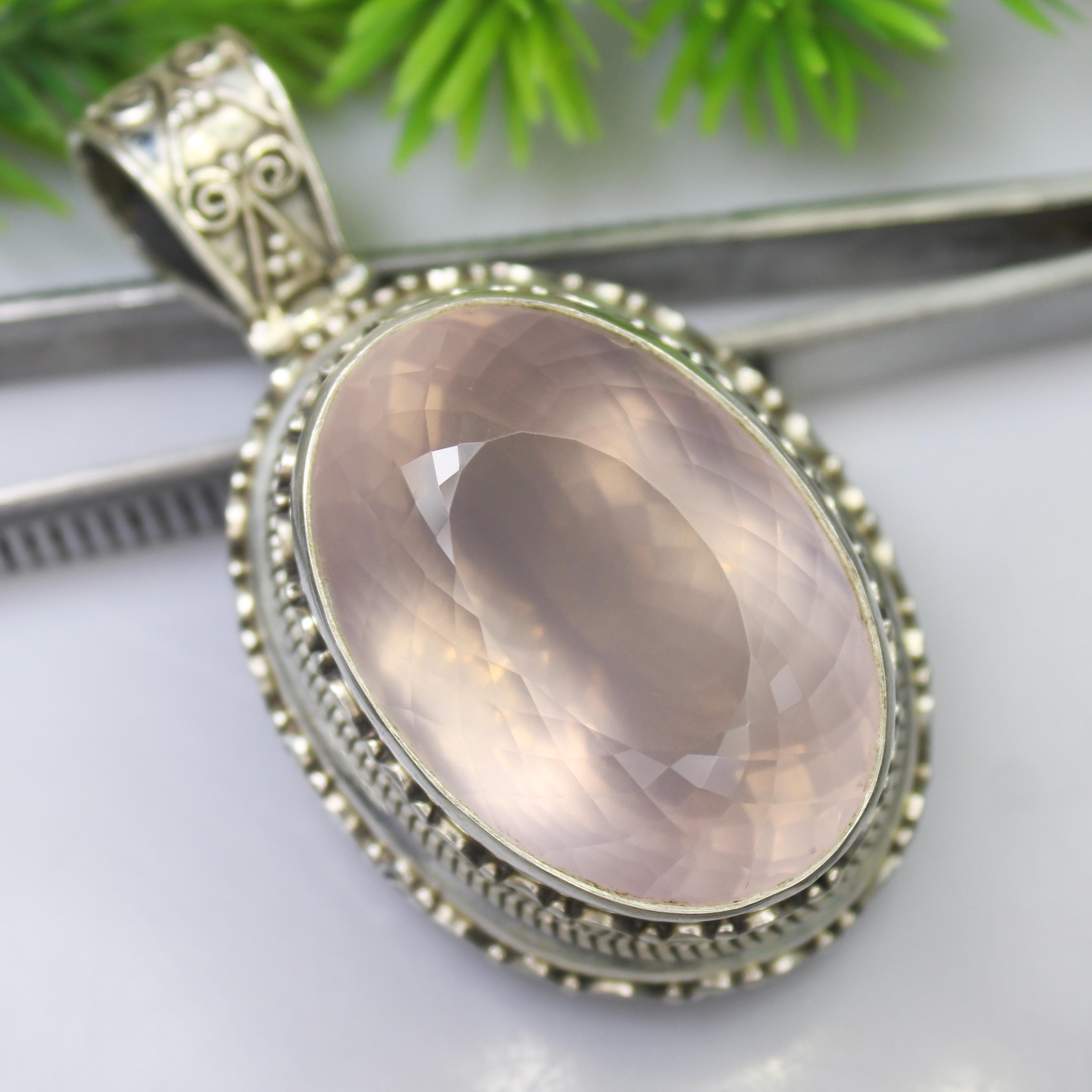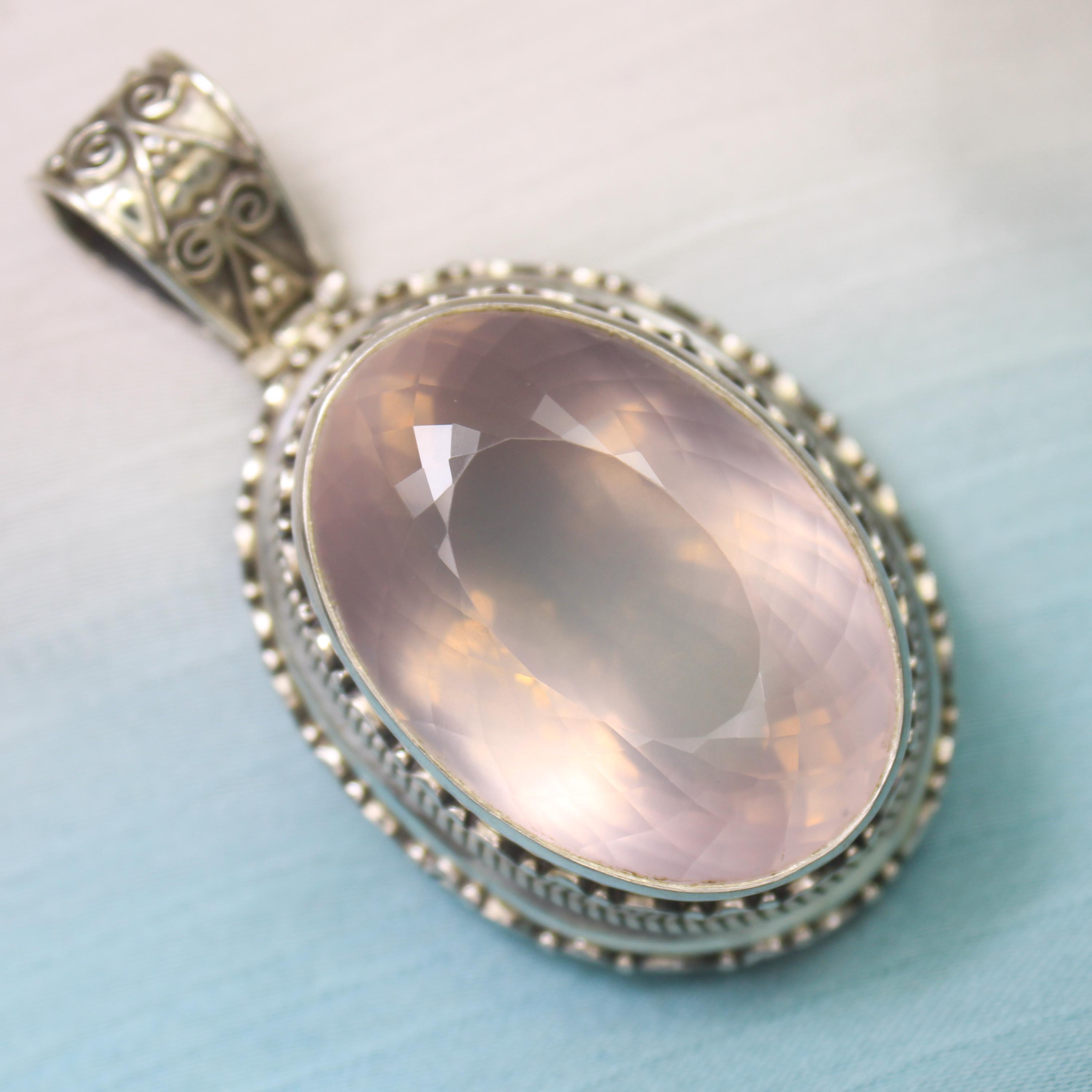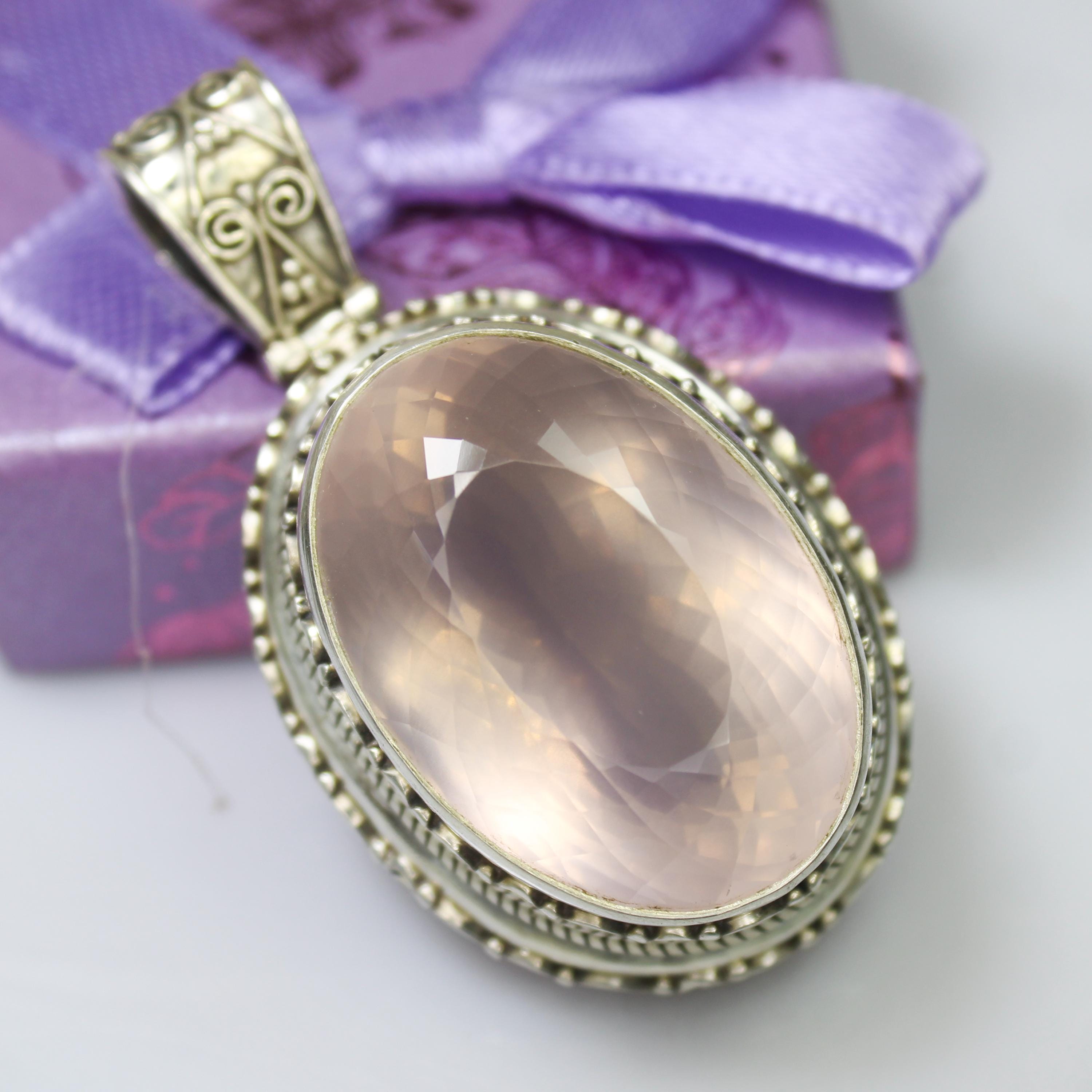NATURAL PINK ROSE QUARTZ PENDANT WITH STERLING SILVER