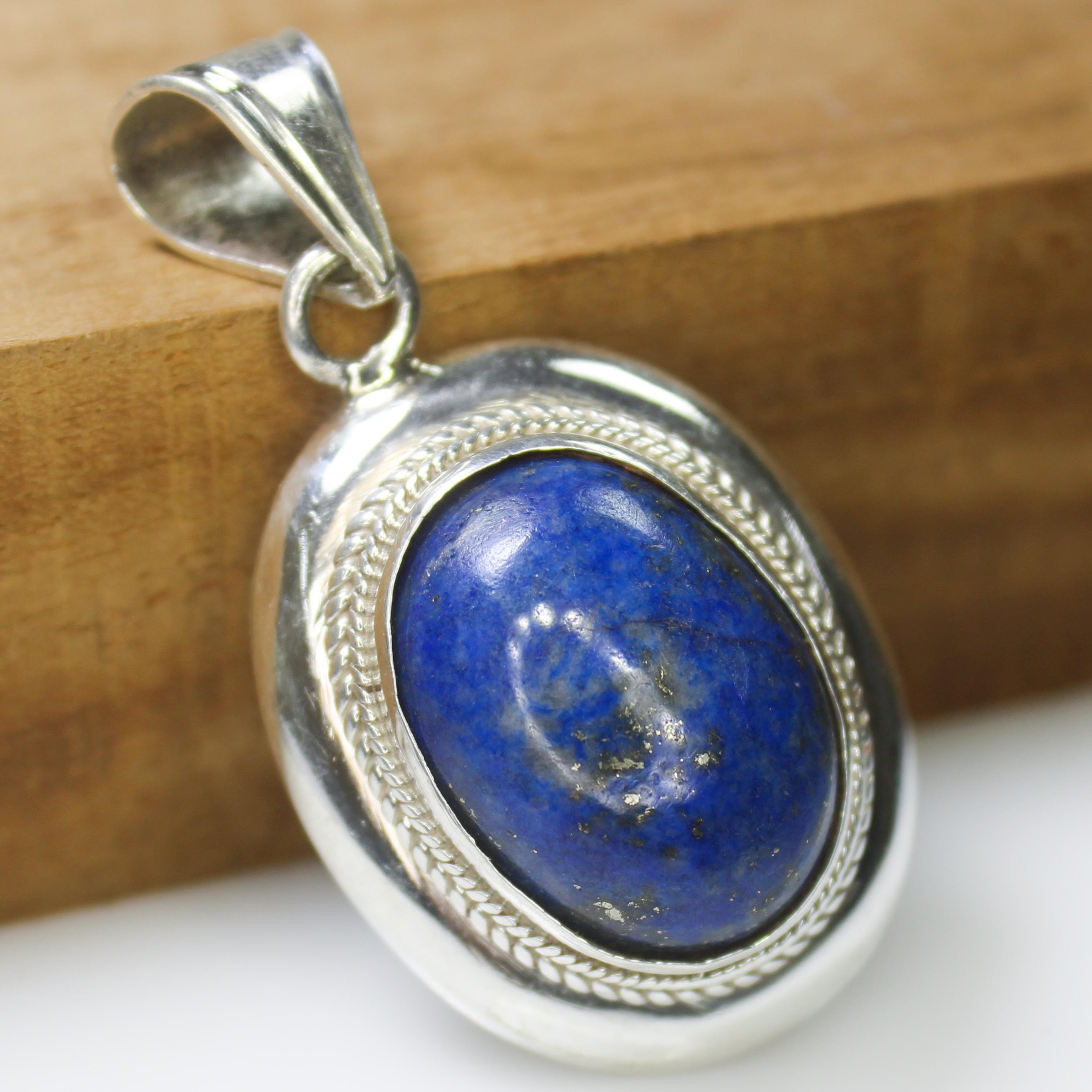 NATURAL BLUE LAPIS PENDANT WITH STERLING SILVER