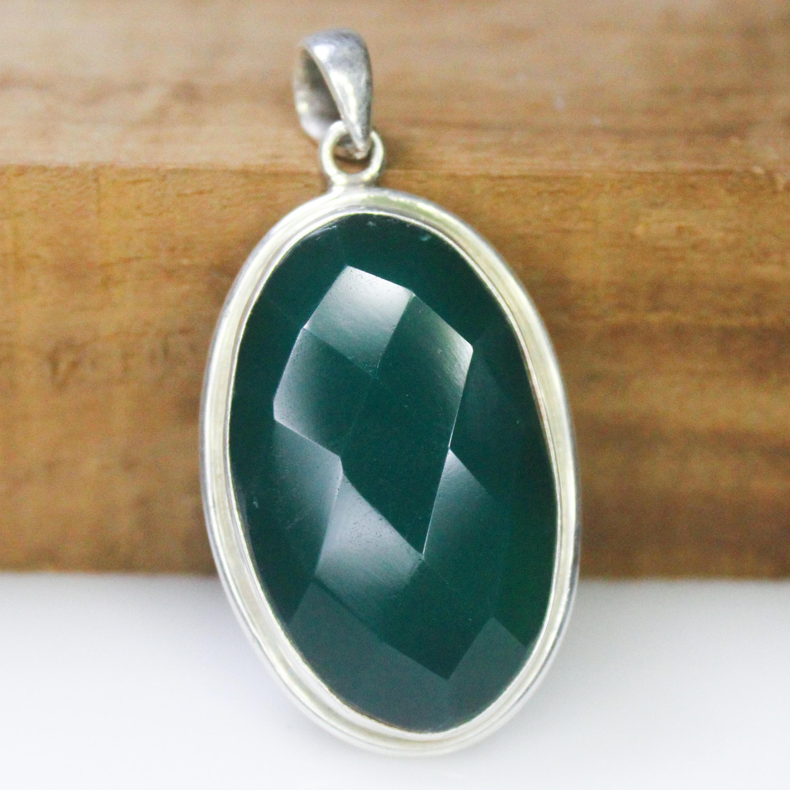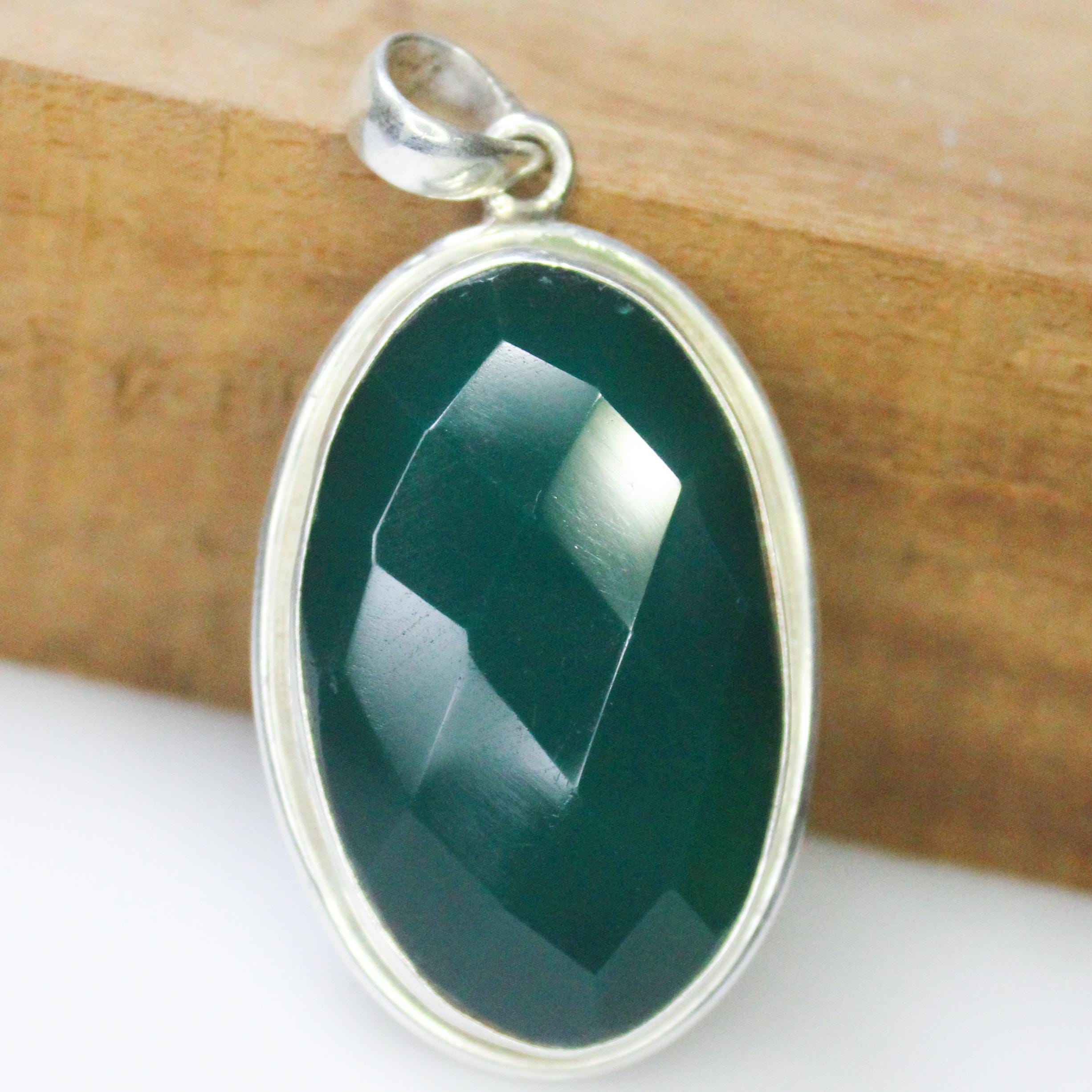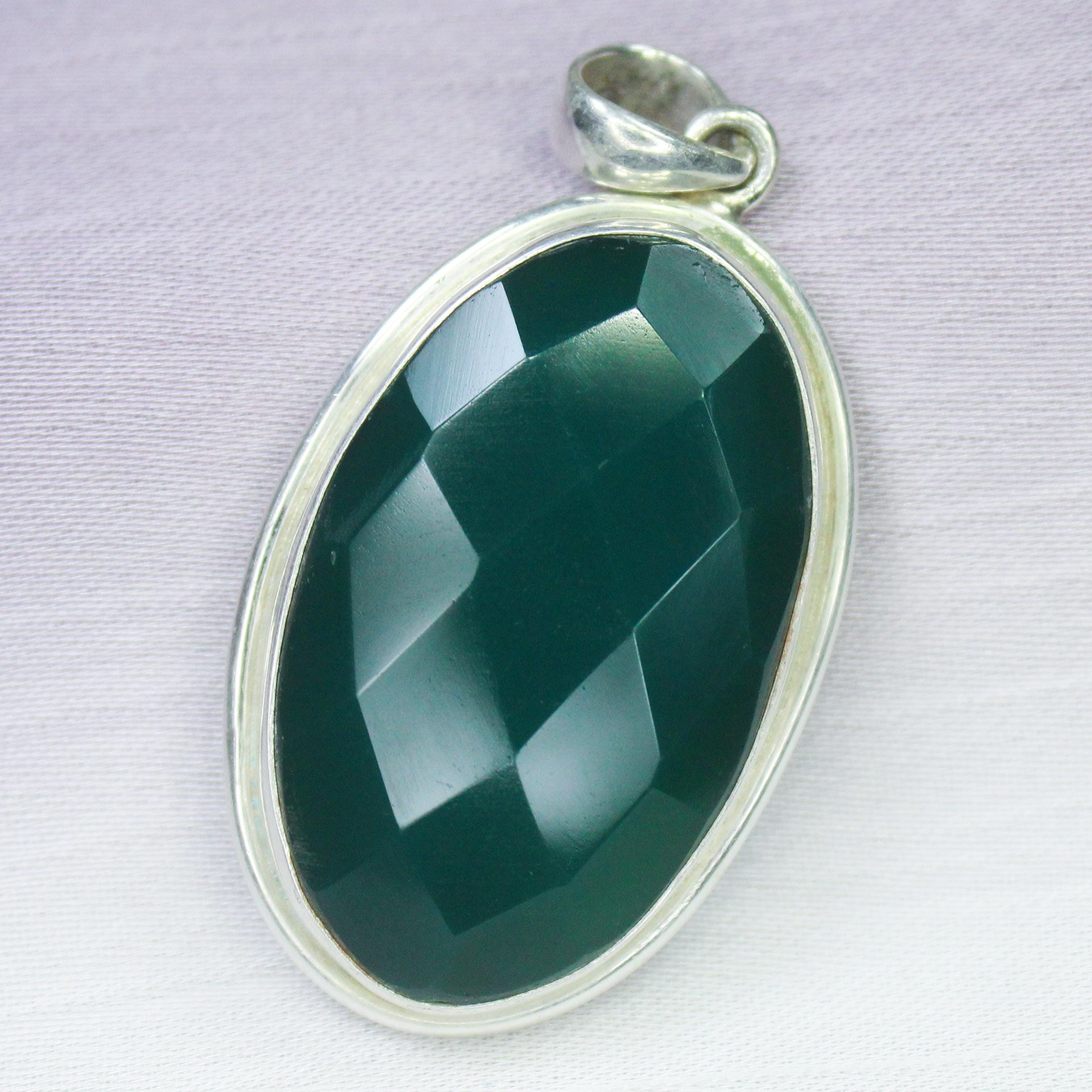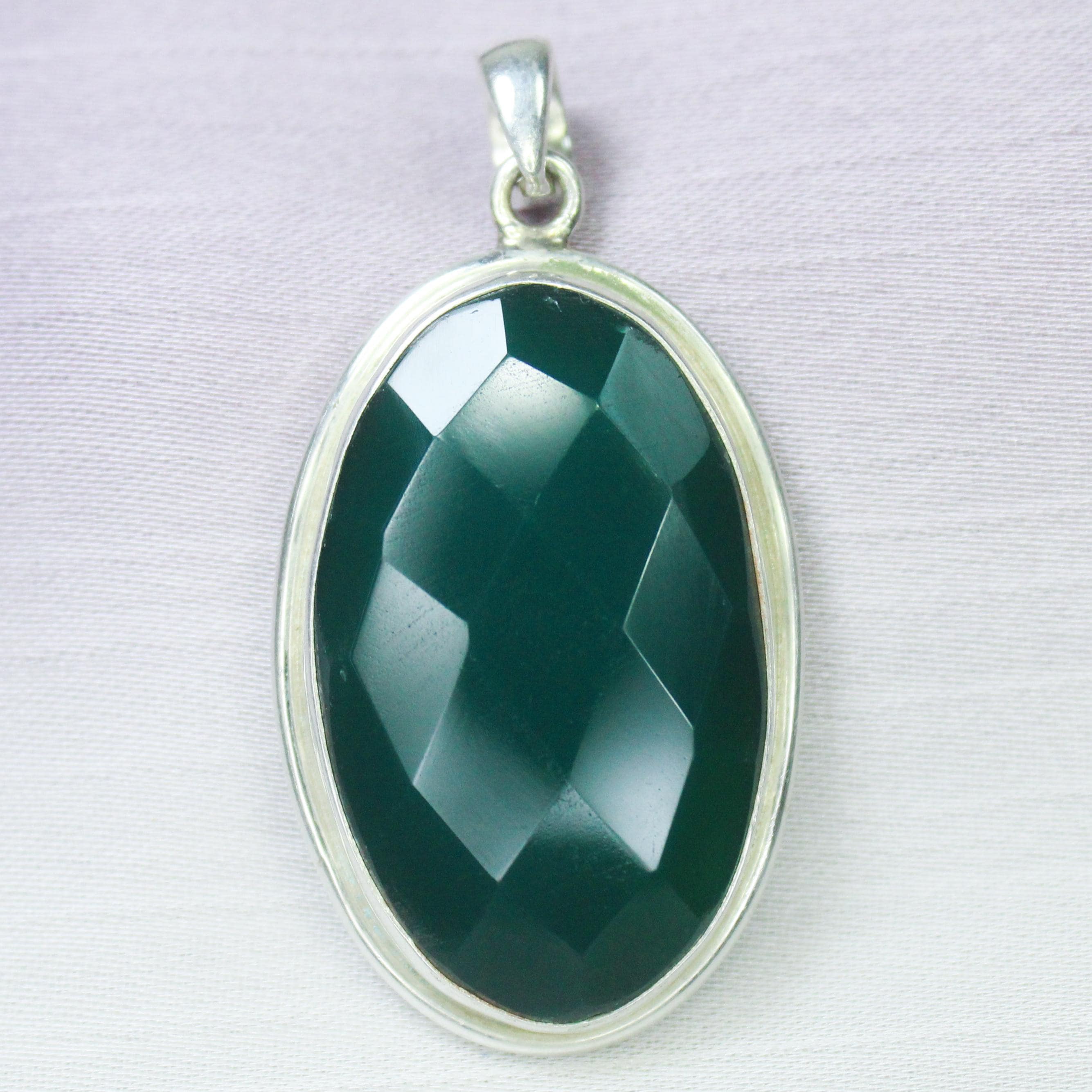 NATURAL GREEN ONYX PENDANT WITH STERLING SILVER