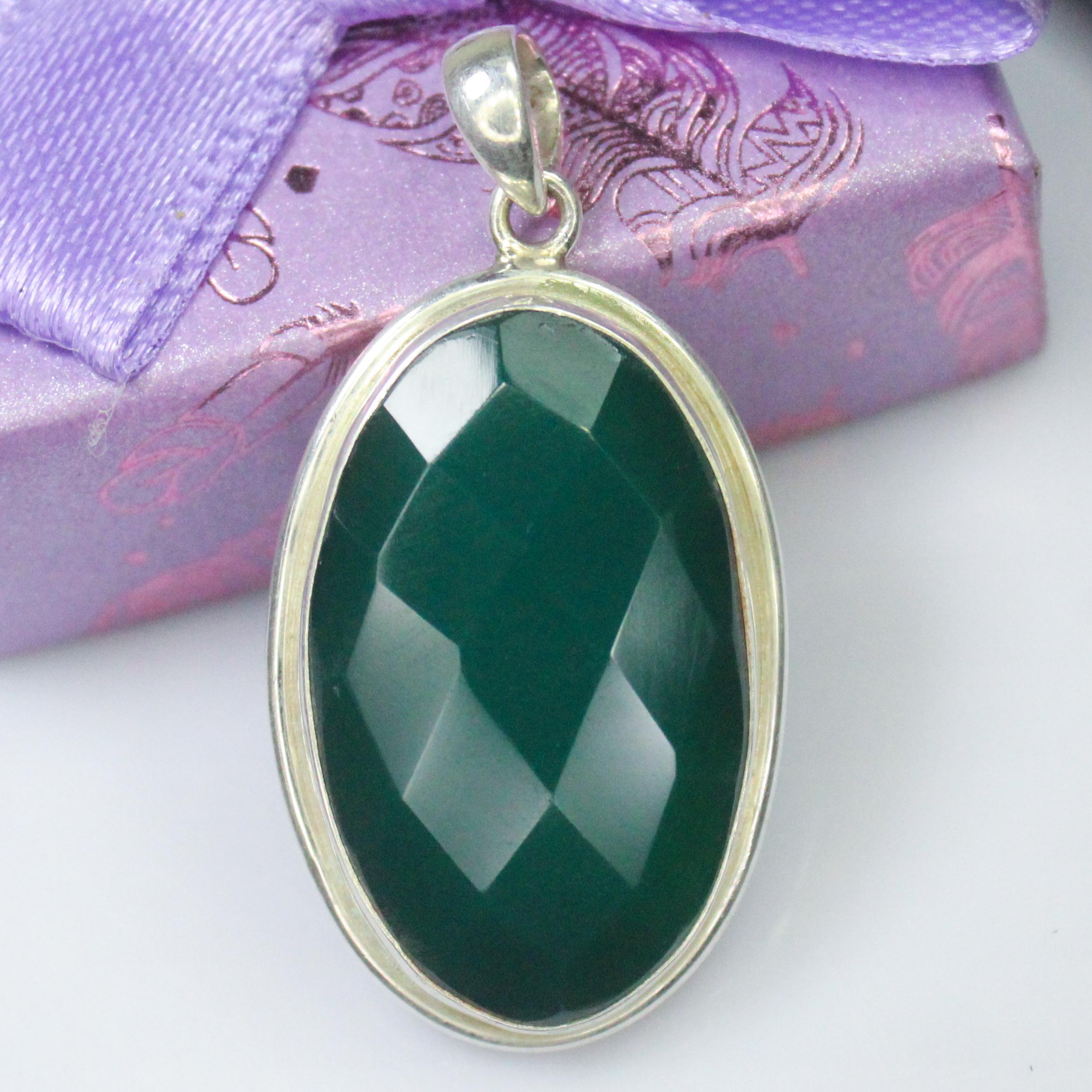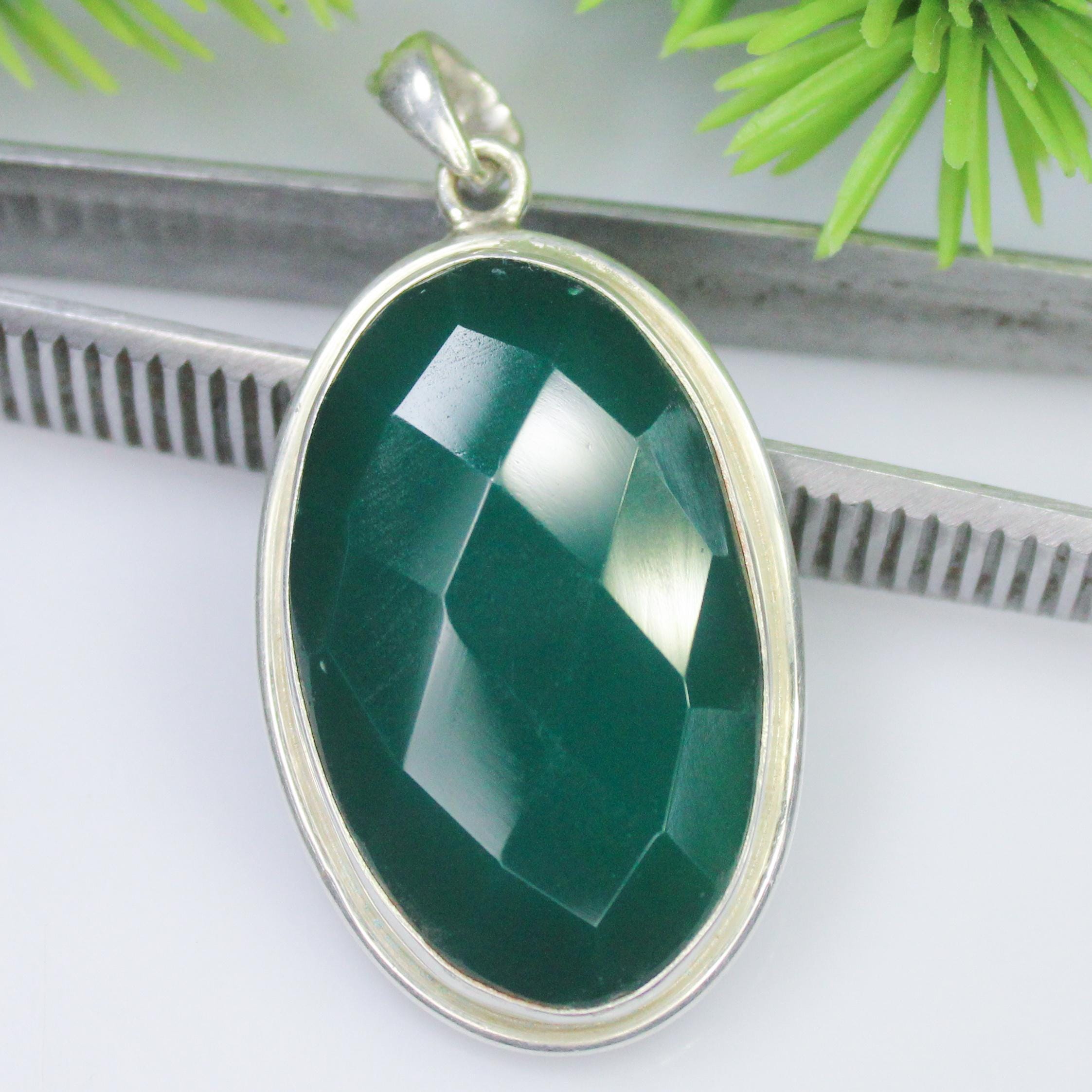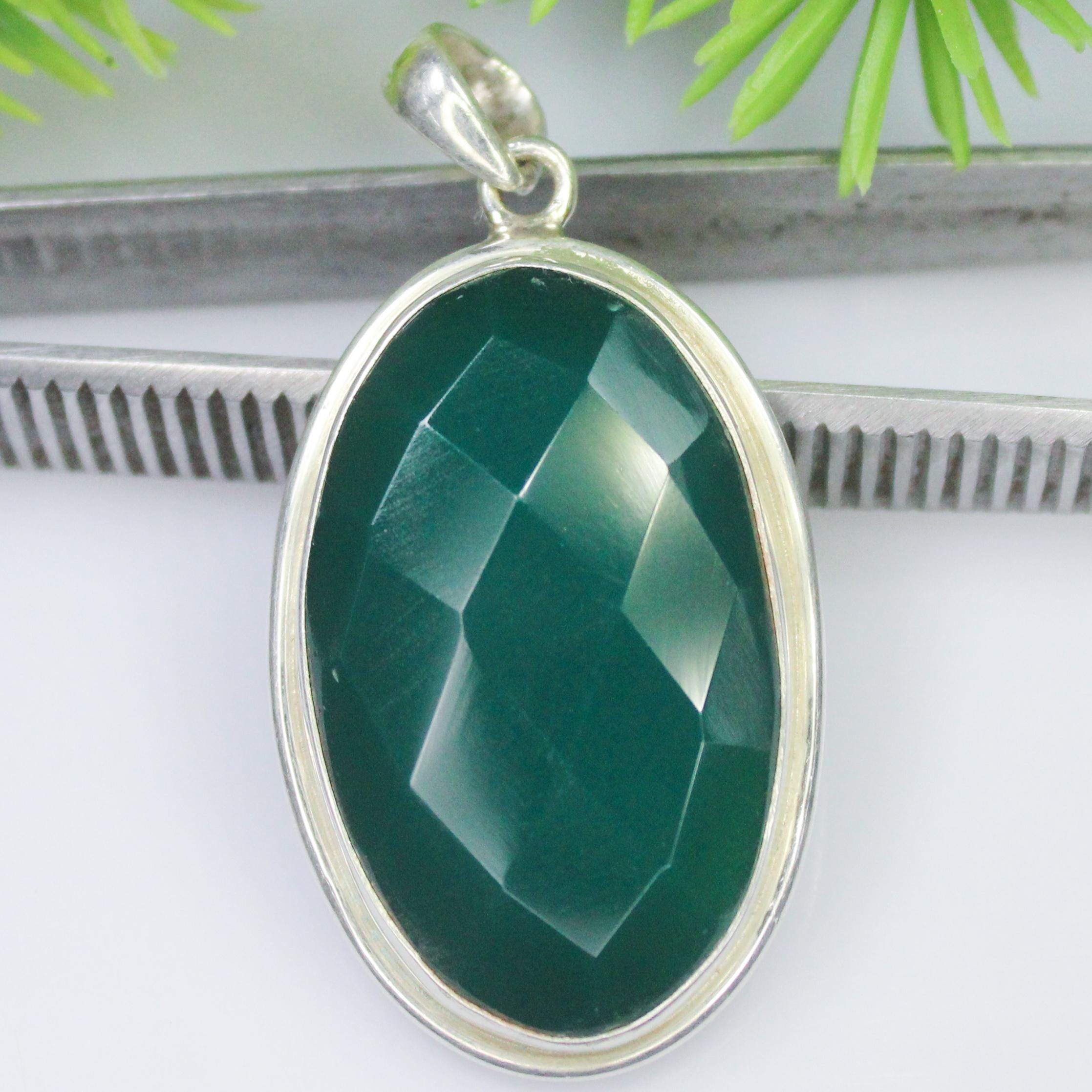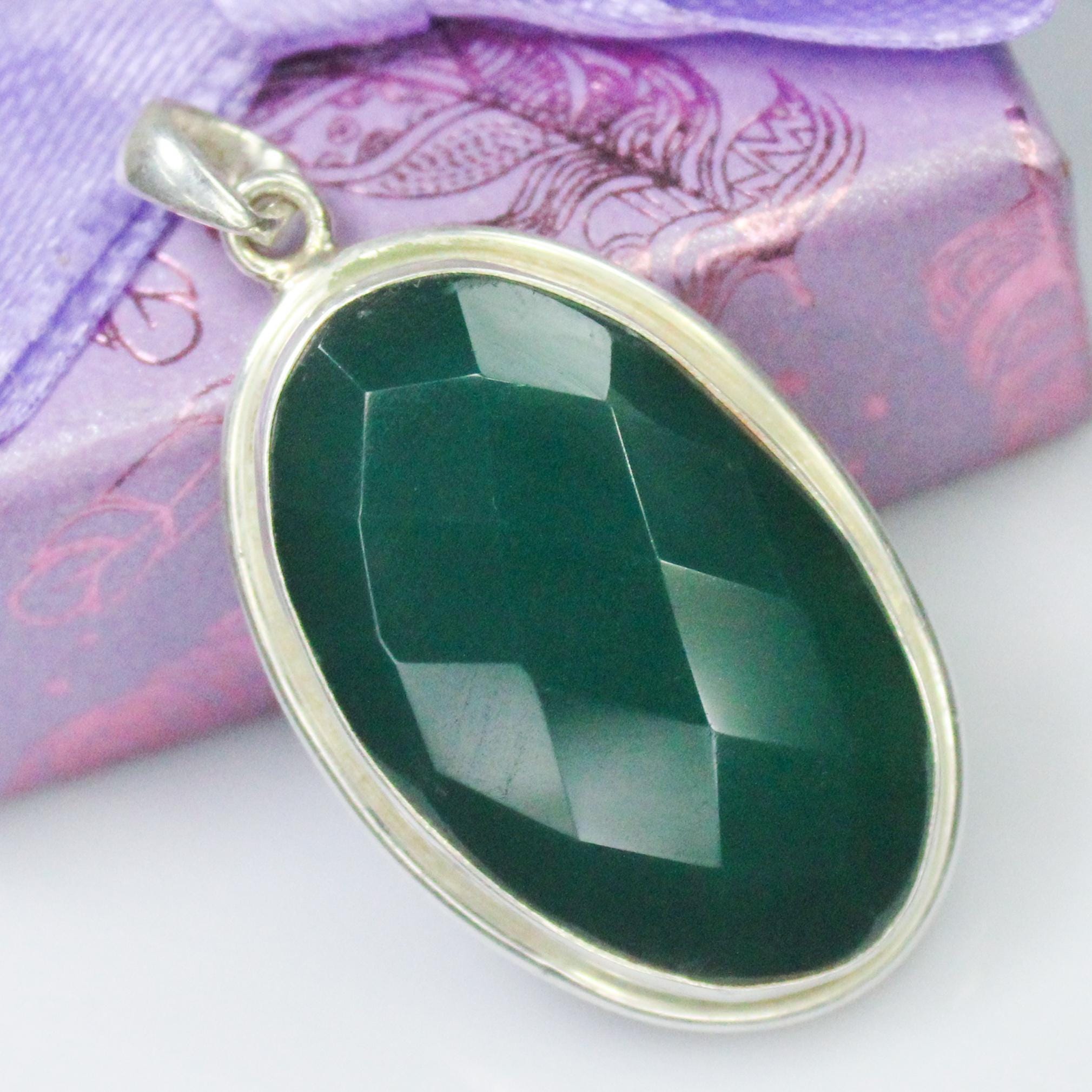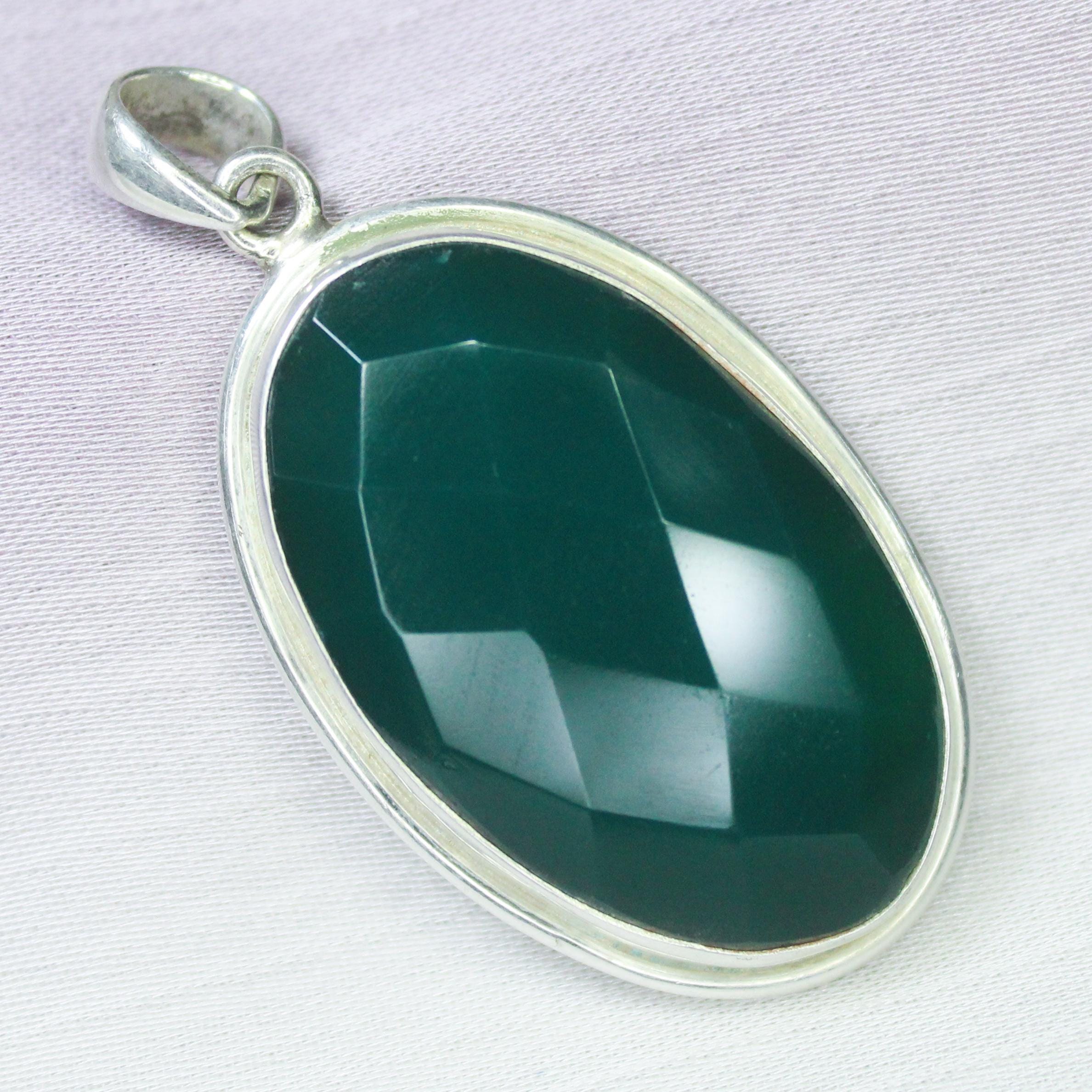 NATURAL GREEN ONYX PENDANT WITH STERLING SILVER