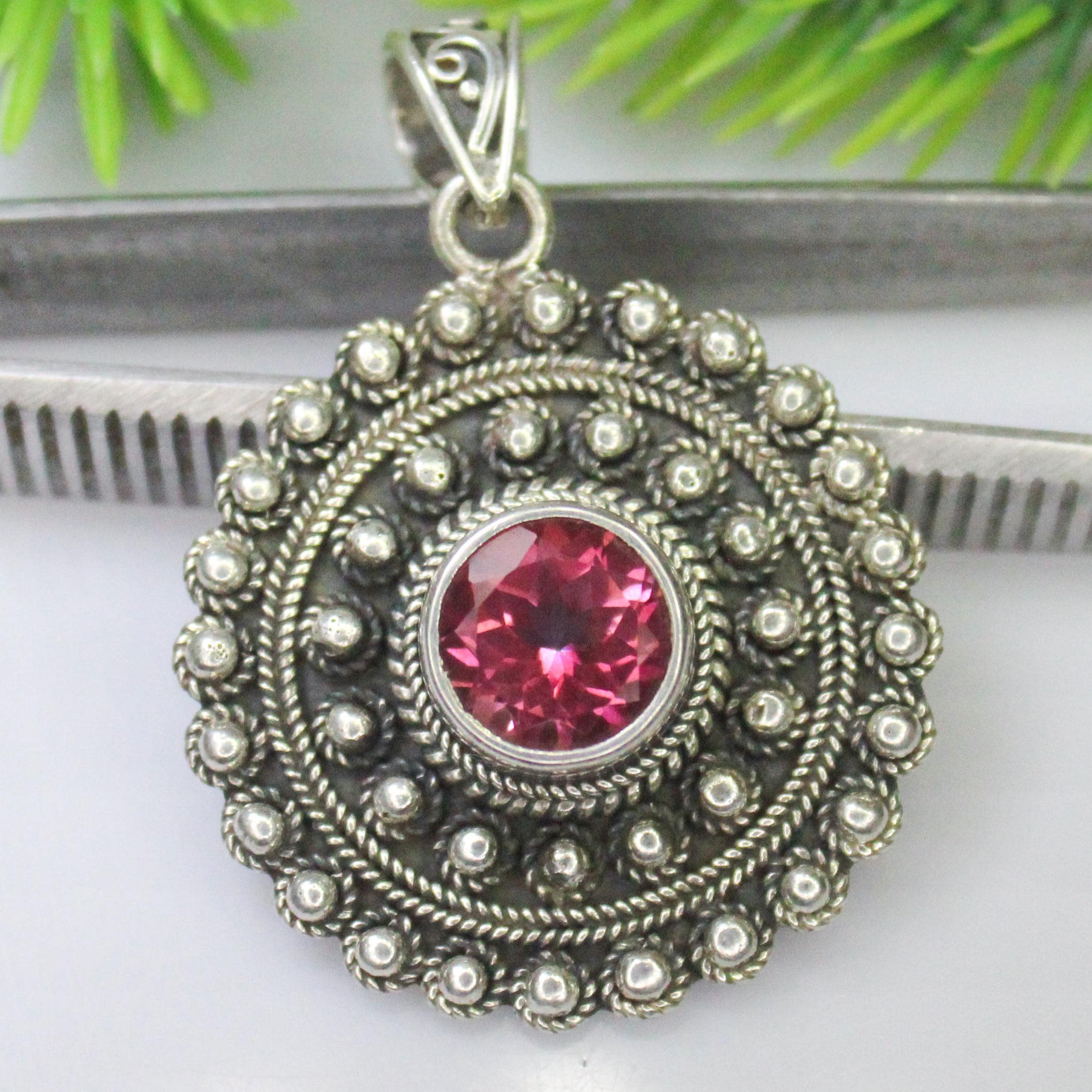 GEMSTONES ON PENDANT- PINK TOPAZ